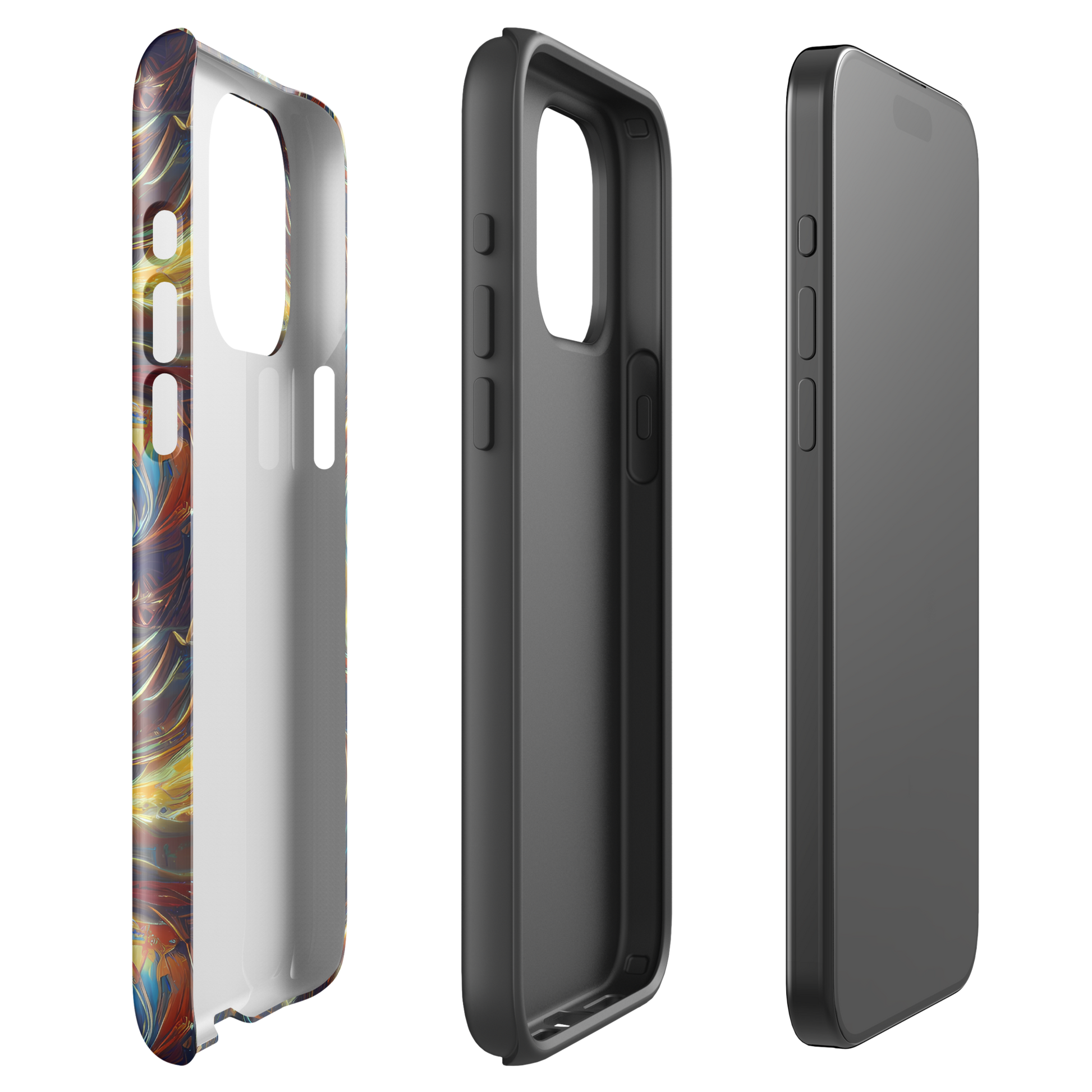 Style meets security with our AI-designed dual-layer phone case! Embrace the mesmerizing allure of deep cosmic blues, fiery oranges, and shimmering golds that swirl together in a dynamic interplay of light and shadow. This captivating design evokes wonder and mysticism, making it the perfect accessory for bold, imaginative personalities. Ideal for avant-garde events, music festivals, or art exhibitions, this pattern is a must-have for the fall and winter seasons.