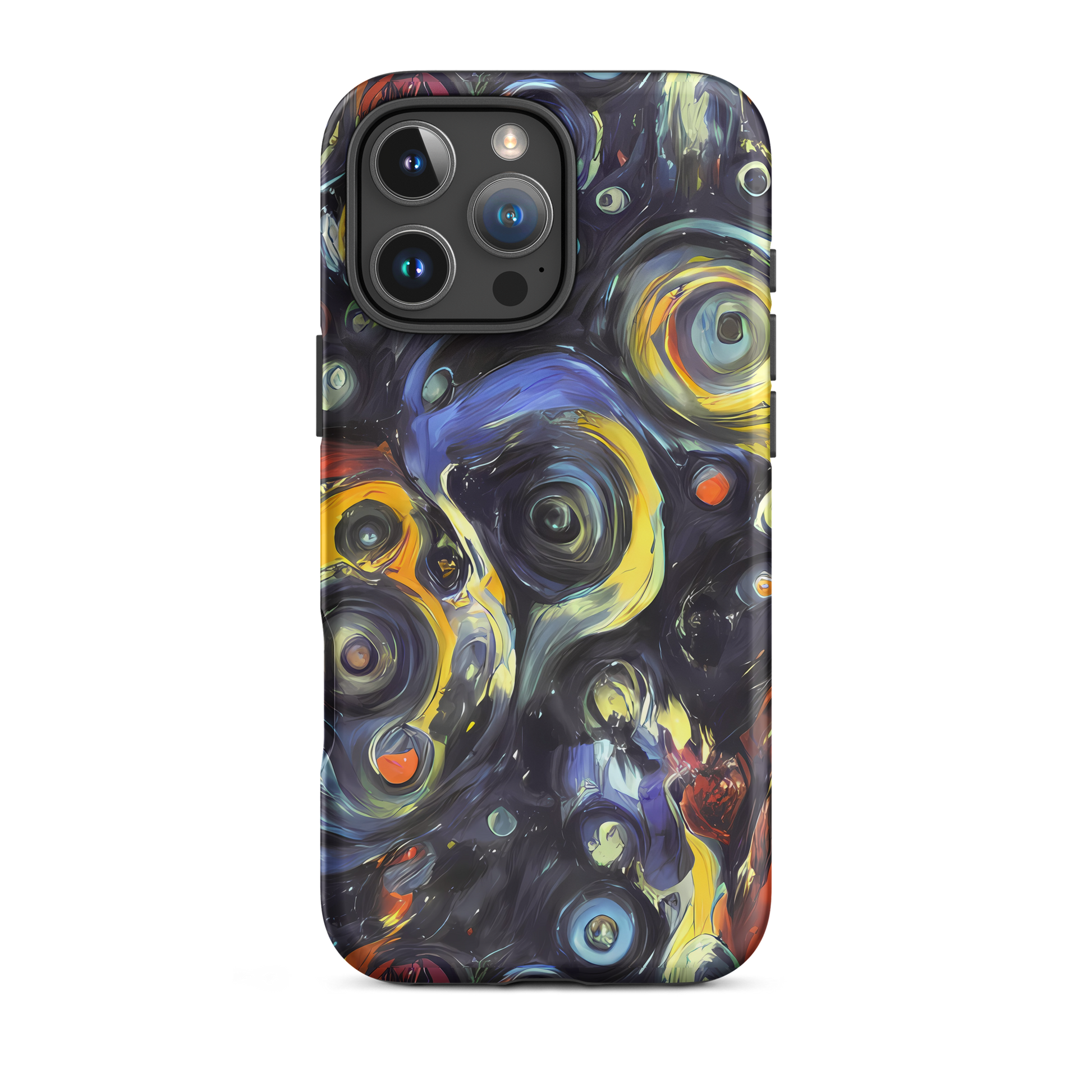 Elevate your phone's protection with the Tough Case for iPhone®, featuring the exclusive "Corinthian Swirl" pattern. This captivating design blends swirling shapes in vivid blues, yellows, and fiery oranges, inspired by the expressive artistry of Lovis Corinth. The dynamic composition of abstract forms and energetic textures captures movement and creativity, making it a perfect accessory for bold individuals who love to make a statement. Crafted with a dual-layered construction, the impact-resistant polycarbonate outer shell and TPU inner lining ensure your device stays safe and stylish through every season.