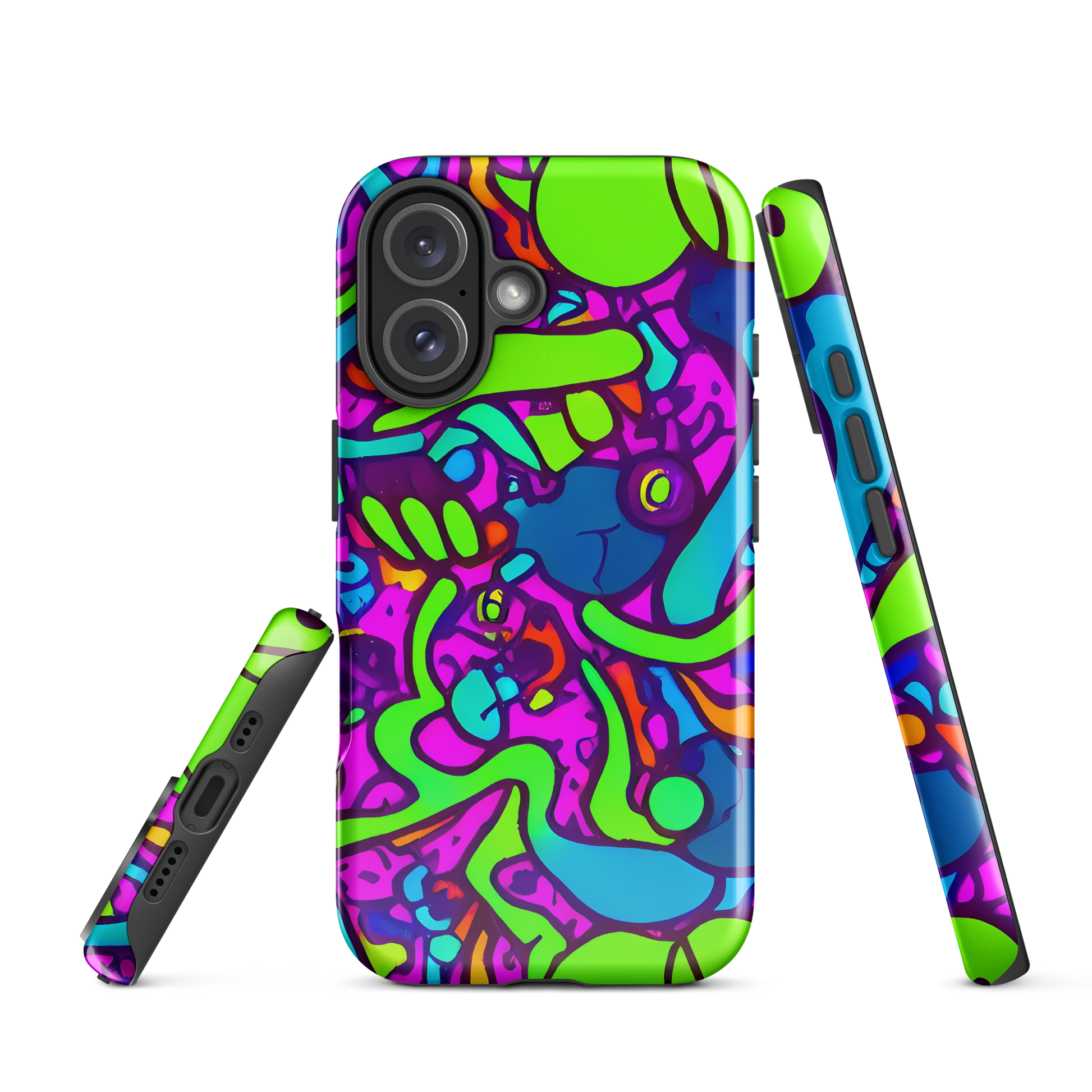 Make a bold statement with the "Funky Vortex" Tough Case for iPhone®! This eye-catching case showcases a vibrant swirl of neon lime green, electric blue, and hot pink, dancing in an abstract pattern that exudes playful chaos and creativity. Perfect for those who embrace color and movement, this case is your ideal companion for music festivals, art galleries, and trendy urban events. Crafted with a durable, dual-layered design featuring an impact-resistant polycarbonate outer shell and a TPU inner lining, it ensures your phone stays stylishly protected all year round!
