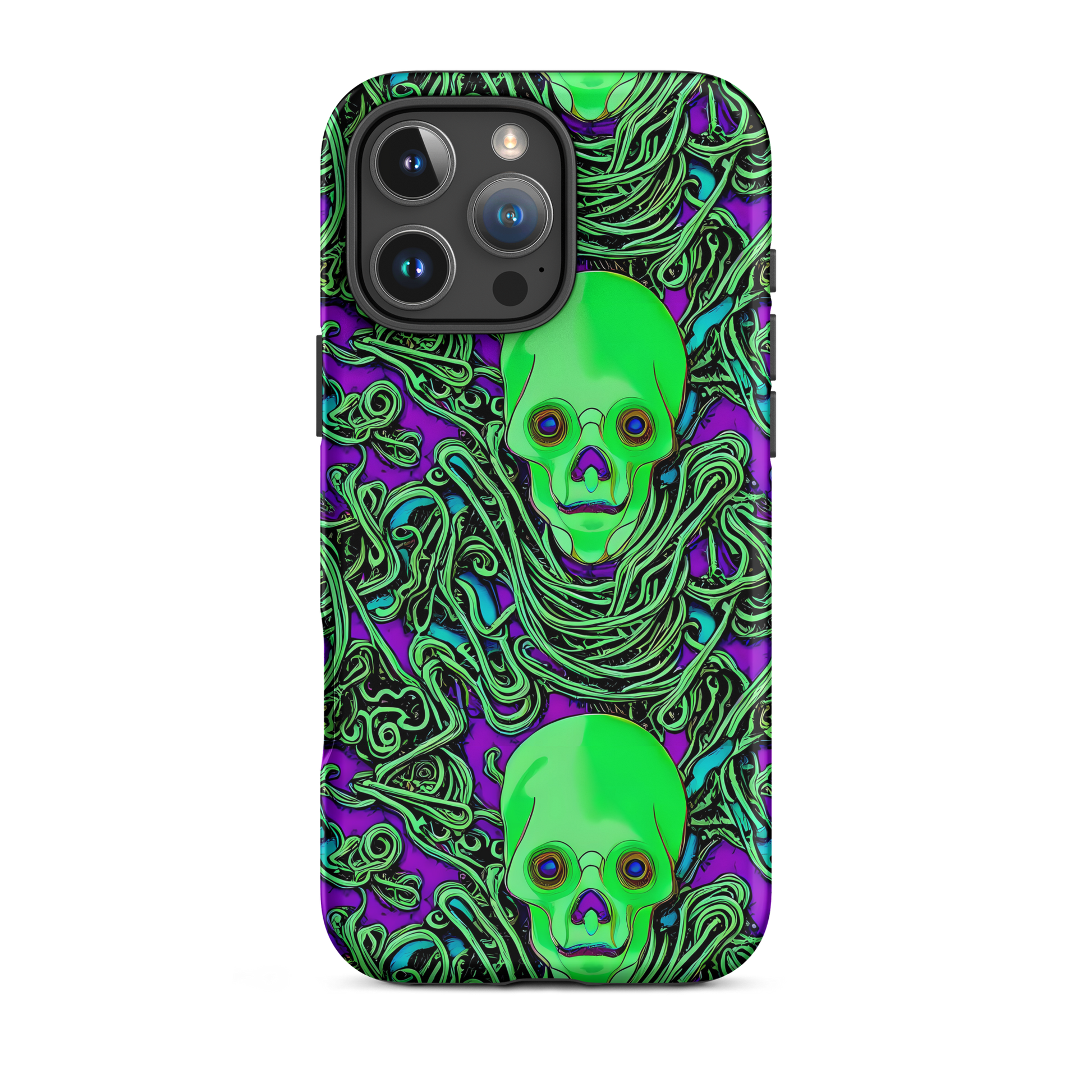 "Ghostly Labyrinth" is a mesmerizing tapestry of neon greens and purples, woven into an intricate dance of swirling, maze-like patterns, punctuated by a hauntingly abstract skull motif. The design exudes an otherworldly, psychedelic vibe, evoking a sense of mystery and cosmic exploration. Ideal for bold personalities, this pattern is perfect for avant-garde events or futuristic festivals, especially in the vibrant seasons of spring and summer.