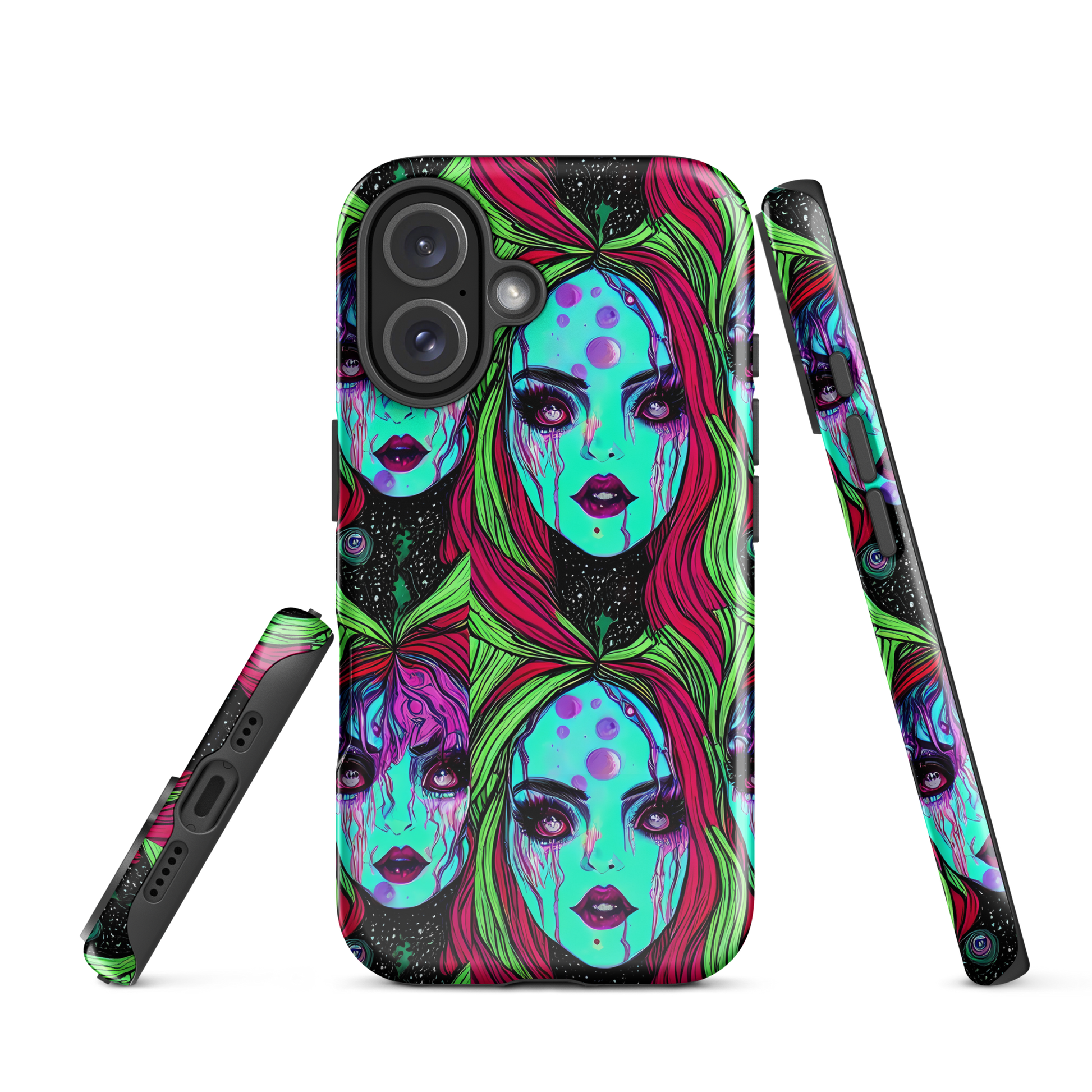 Unleash your fearless imagination with the "Luminous Nightfall" Tough Case for iPhone®. This avant-garde masterpiece combines vibrant turquoise, magenta, and neon green with cosmic black and ethereal purple, creating a surreal tapestry of mystery and bold self-expression. Perfect for nightlife in vibrant urban settings, this case not only protects your phone with its durable dual-layer design but also adds an otherworldly allure to your style, especially in the cooler seasons. Elevate your phone's fashion game and let your adventurous spirit shine through!