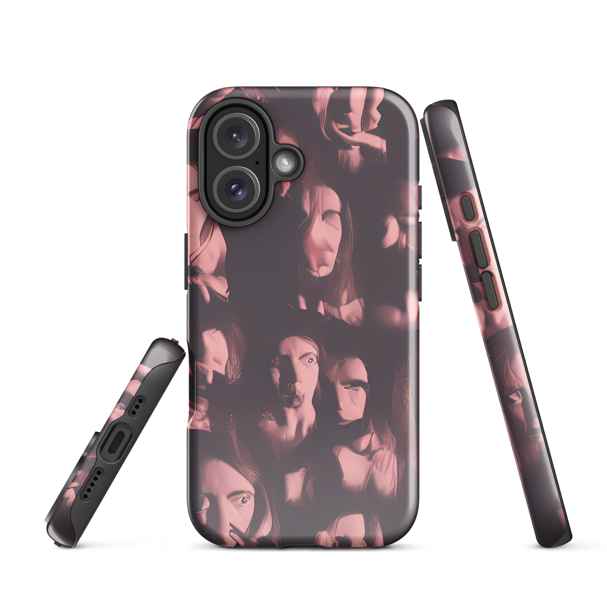 Elevate your phone's style with the "Portrait Whispers" Tough Case for iPhone®, where art meets protection. This dual-layered case features an exclusive pattern of enigmatic faces in muted rose and shadowy plum hues, creating a dreamlike mosaic that captivates and inspires. Perfect for the introspective soul, this case not only safeguards your device but also complements your sophisticated style, making it an ideal accessory for gallery openings or elegant evening events. Experience unparalleled protection with a polycarbonate outer shell and TPU inner lining, ensuring your phone remains fashionable and secure throughout the seasons.