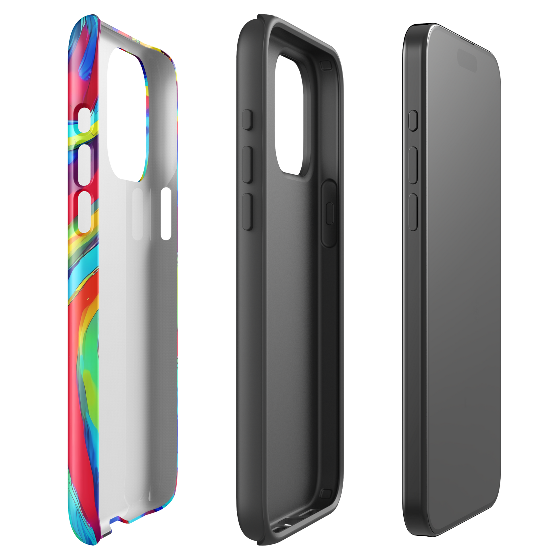 Elevate your style and safeguard your phone with our Tough Case for iPhone®, featuring a dynamic pattern of bold, swirling shapes in electric blues, fiery reds, and sunny yellows. This design captures the essence of abstract expressionism, perfect for making a statement at art gallery openings, summer festivals, or creative gatherings. Crafted for those with an adventurous and artistic personality, this case not only adds a burst of color and emotion to your look but also provides top-notch protection.