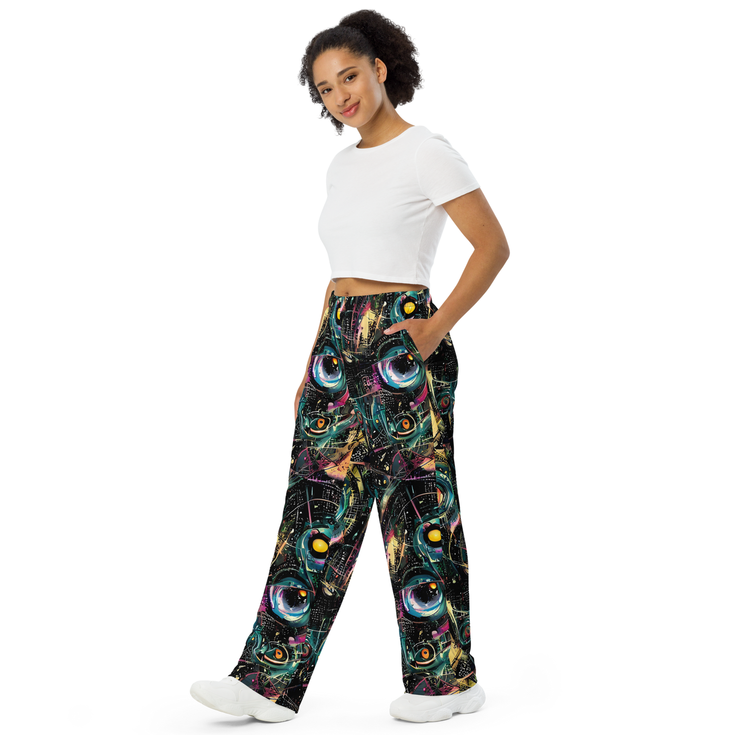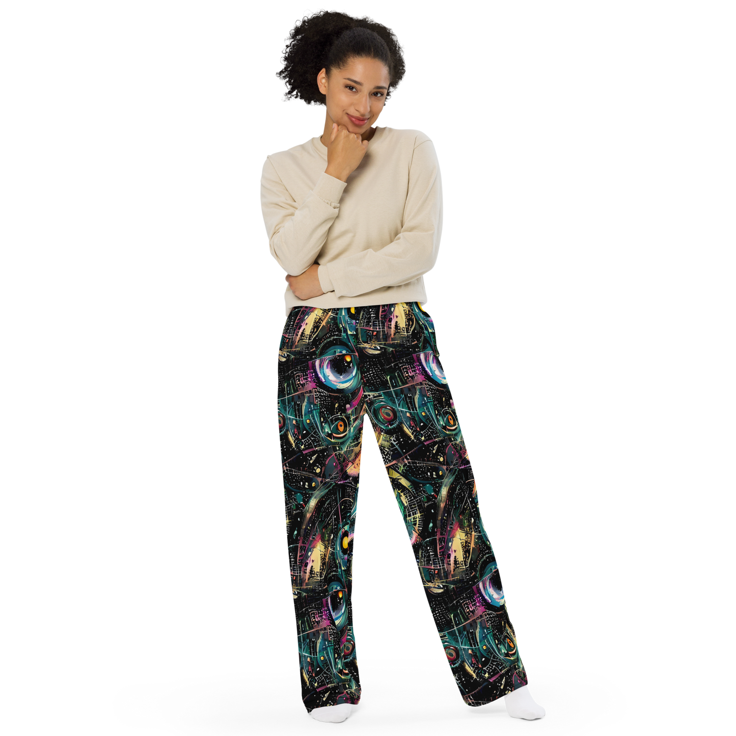 Transform your wardrobe with our AI-Designed Wide-Leg Pants, featuring a vibrant fusion of abstract shapes, intricate textures, and dynamic colors like electric blues, vivid yellows, and deep blacks. This cosmic-inspired design evokes a sense of wonder and edgy sophistication, making it perfect for music festivals, art shows, or night-time events. Ideal for the creative and adventurous, these pants offer unparalleled comfort and style in one stunning package.
