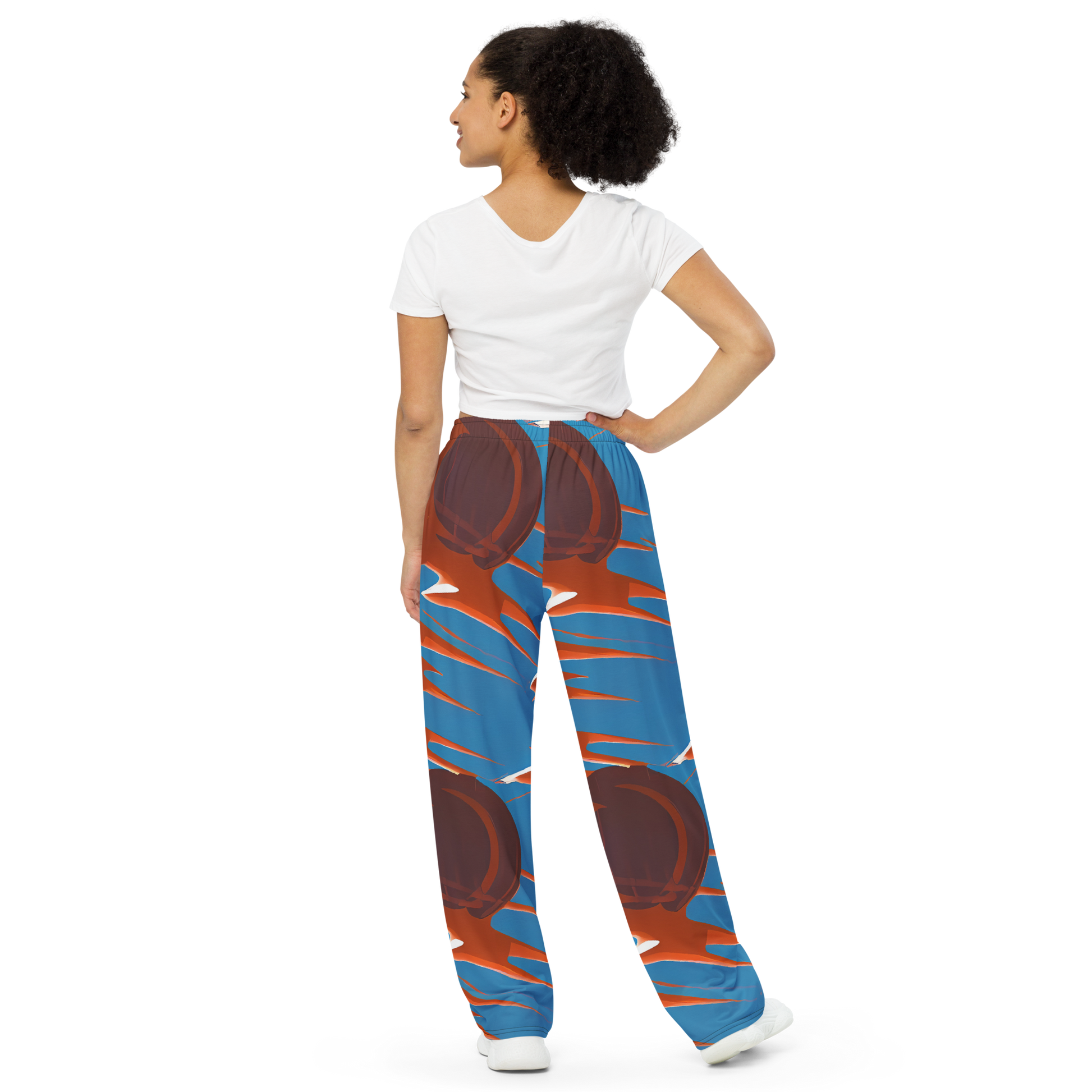 Step into a Mirage of Style with Our AI-Designed Wide-Leg Pants! Featuring a mesmerizing pattern that swirls with bold, abstract shapes in deep orange, sky blue, and crisp white, these pants capture the essence of a psychedelic desert mirage. Perfect for summer festivals or avant-garde art events, they blend art and fashion seamlessly. Experience unmatched comfort and a flexible fit, all while showcasing a unique, hand-crafted design that speaks to your adventurous spirit.