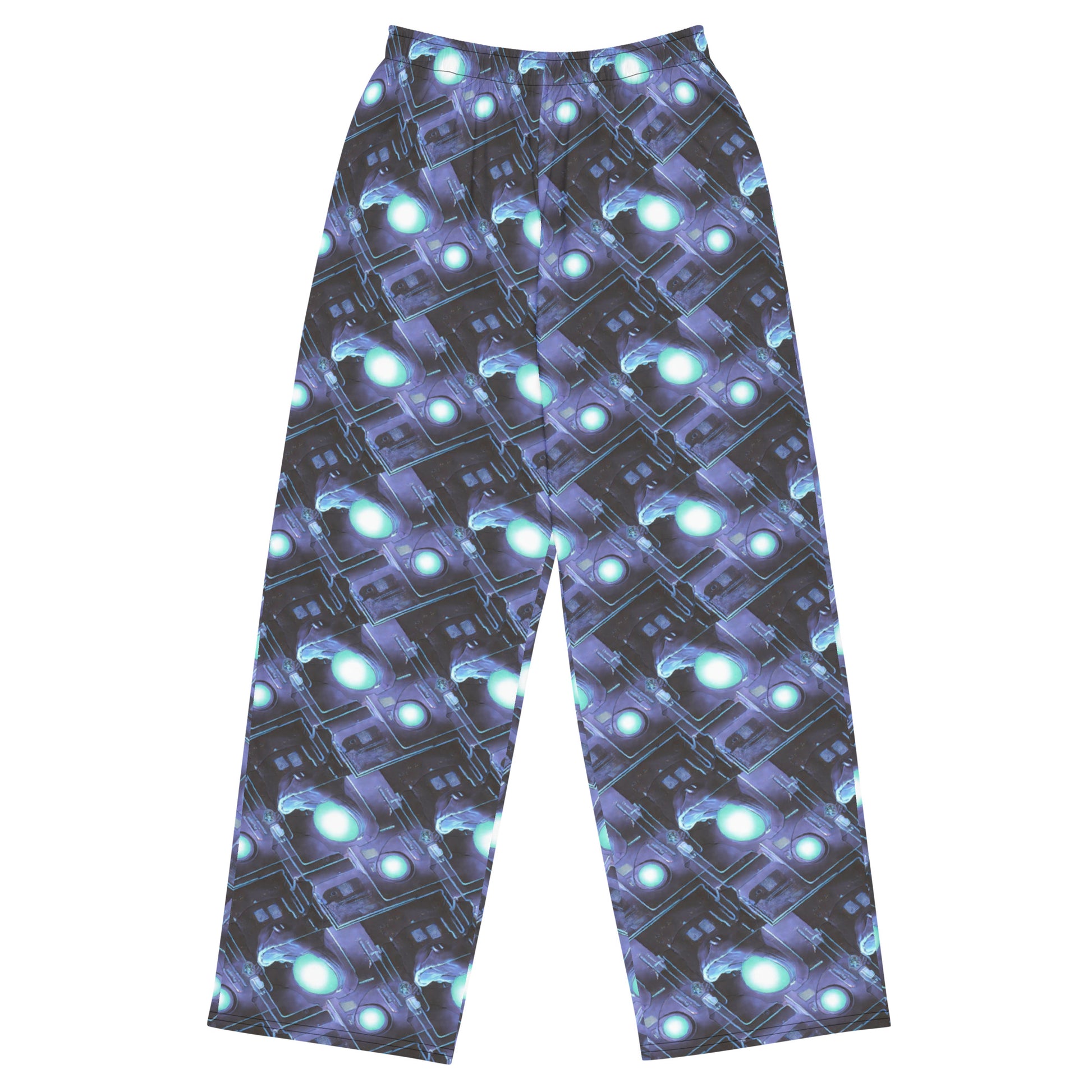 Step into the cosmos of style with our "Galactic Circuit" Wide-Leg Pants! Featuring a striking pattern of deep purples and electric blues, these pants are a wearable masterpiece that captures the essence of a futuristic universe. The glowing turquoise orbs and intricate circuit-like designs embody a bold, innovative spirit, making them perfect for avant-garde events or tech-inspired gatherings. Experience unparalleled comfort akin to your favorite sweatpants, while exuding an air of sophistication that will turn heads wherever you go!