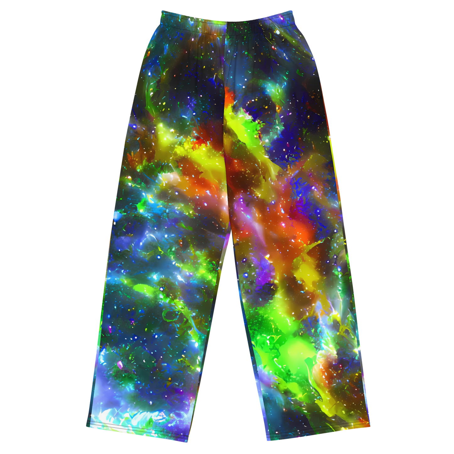 Step into a cosmic realm of style with our AI-Designed Wide-Leg Pants featuring the stunning "Neer Nebula" pattern! Bursting with iridescent hues of emerald green, sapphire blue, and fiery orange against a backdrop of deep space black, these pants are a wearable masterpiece that captures the essence of a vibrant galaxy. Perfect for creative events or casual outings, they offer pajama-level comfort without compromising on chic elegance. Elevate your wardrobe with this unique blend of art and fashion!