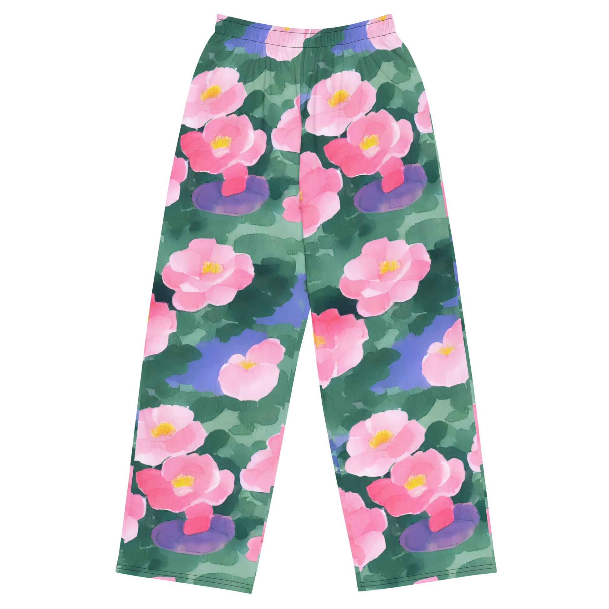 Embrace the beauty of nature and artistry in your everyday style. Order your custom "Pink Blossom Serenade" Wide-Leg Pants today!