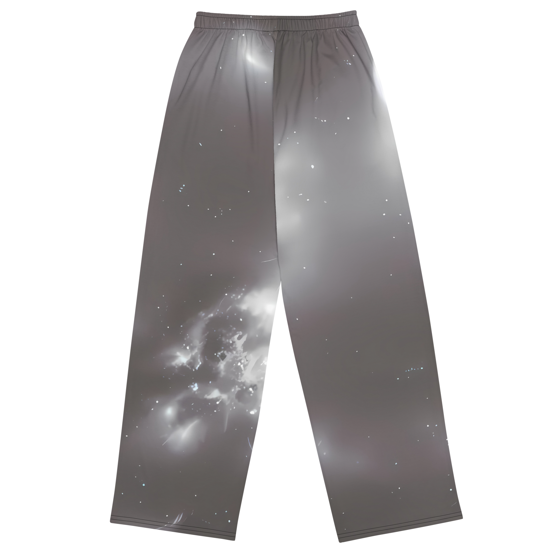 Elevate your wardrobe with our AI-Designed Wide-Leg Pants, featuring an exquisite pattern that swirls with ethereal shades of silver and gray, reminiscent of a cosmic cloud dusted with twinkling star-like accents. These pants are not just a fashion statement but a wearable piece of art, perfect for those who appreciate sophistication and a dreamy, introspective mood.