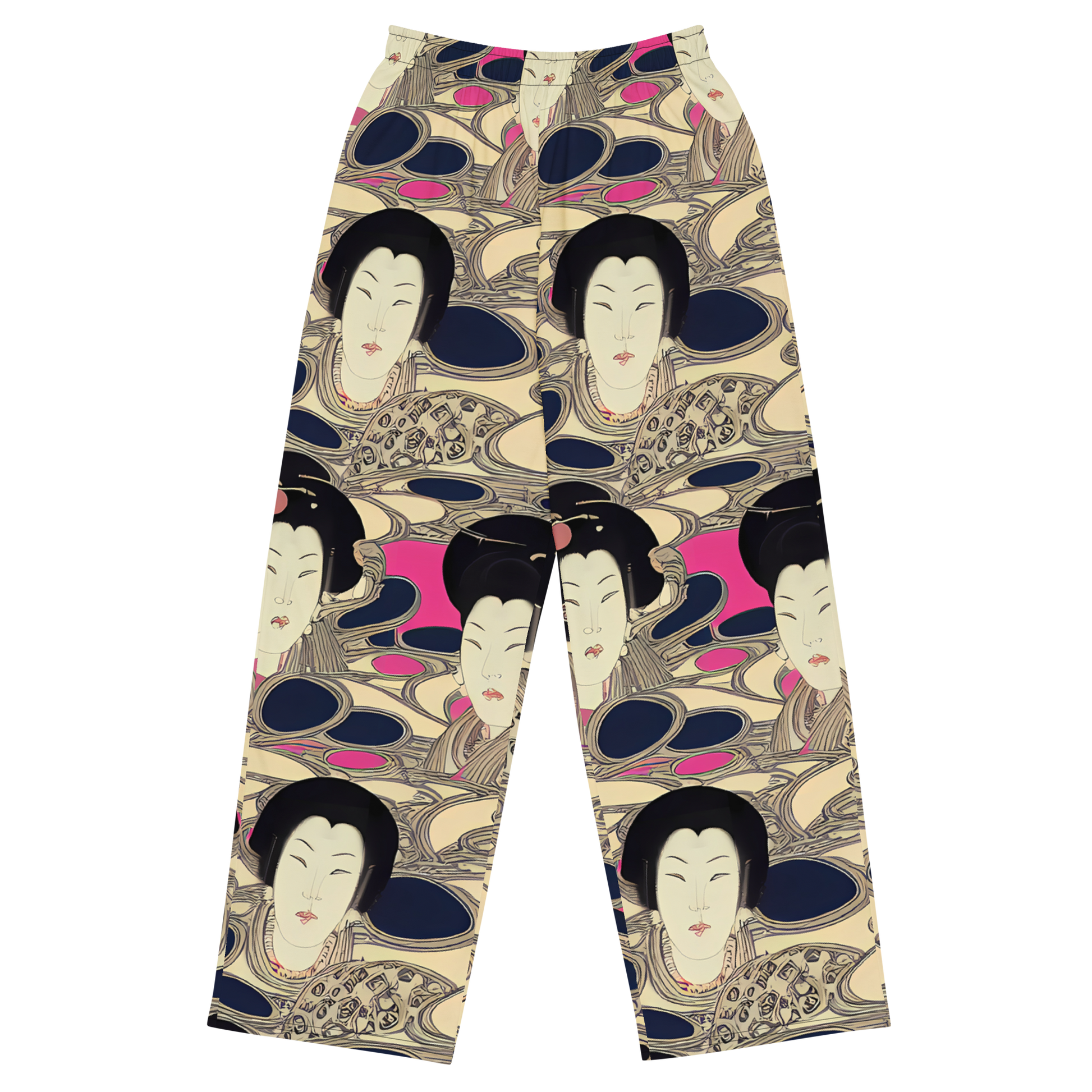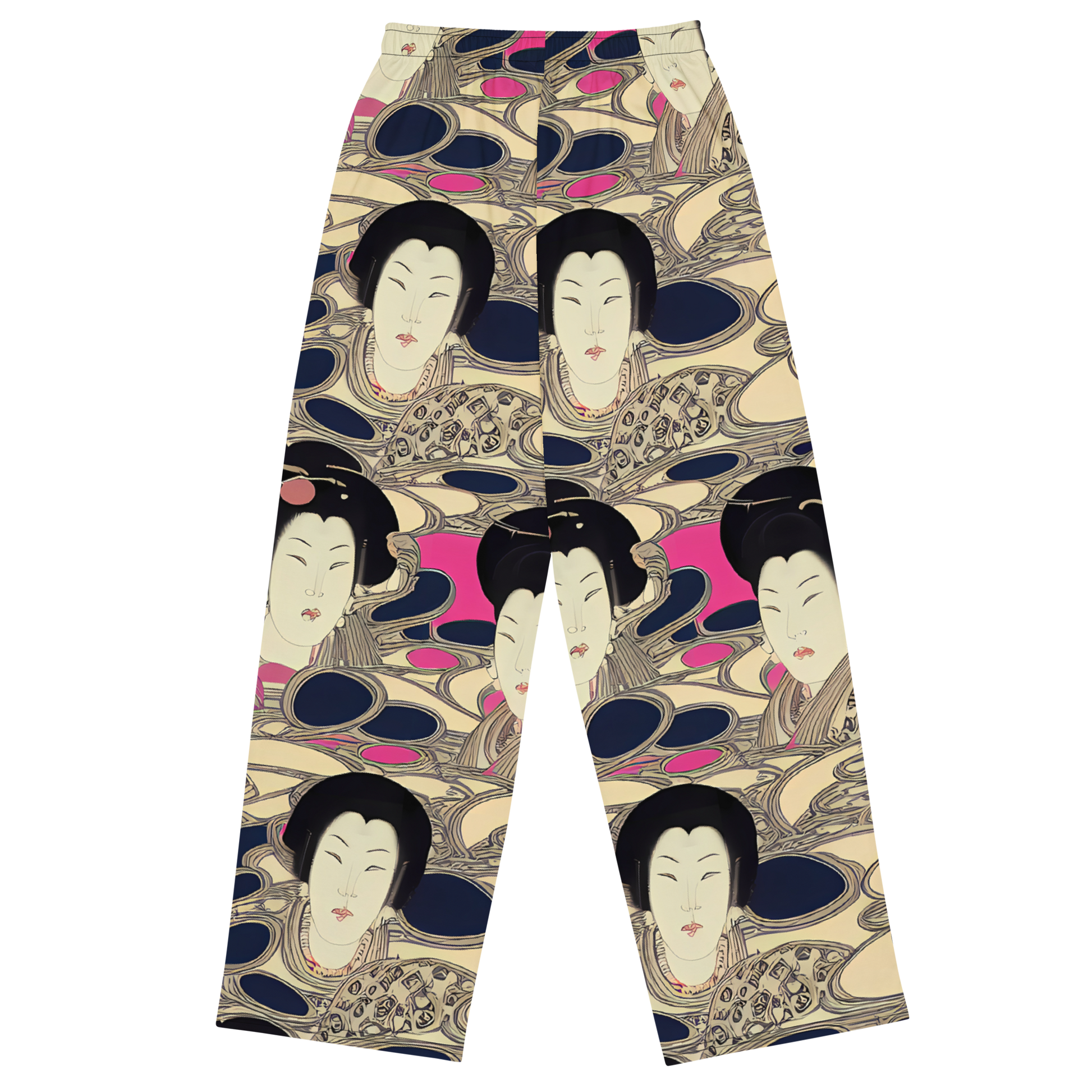 Step into a realm of artistic expression with our AI-Designed Wide-Leg Pants, featuring the enchanting "Timeless Reverie" pattern. This stunning design showcases serene faces amidst swirling waves in deep navy, soft cream, and vibrant pink, evoking a sense of calm introspection and bold exploration. Perfect for gallery openings or avant-garde gatherings, these pants not only offer a unique statement but also deliver all-day comfort and style, making them an essential addition to your wardrobe.