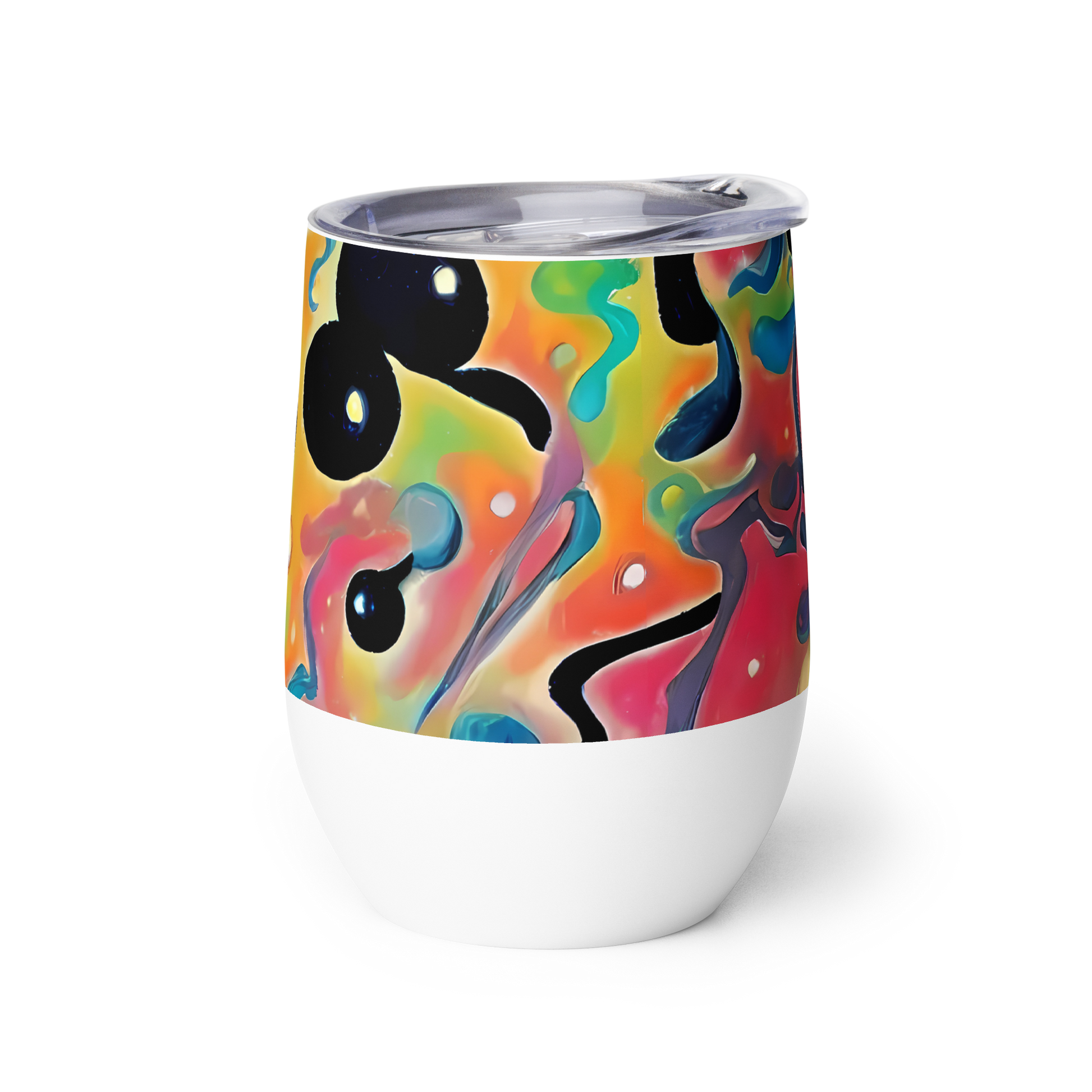 Unveil your vibrant spirit with our "Midday Mirage" Wine Tumbler, a masterpiece of swirling colors and bold black orbs, capturing the essence of a sun-drenched desert landscape. This eye-catching design blends warm and cool hues to create a dynamic, fluid pattern that's perfect for those who love to stand out at summer festivals or art gallery openings. Let your tumbler be a conversation starter, adding a splash of creativity and energy to every sip.