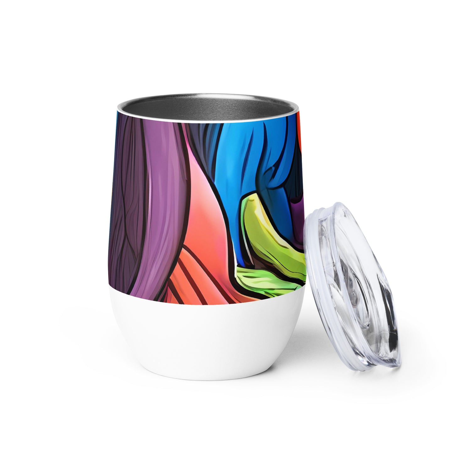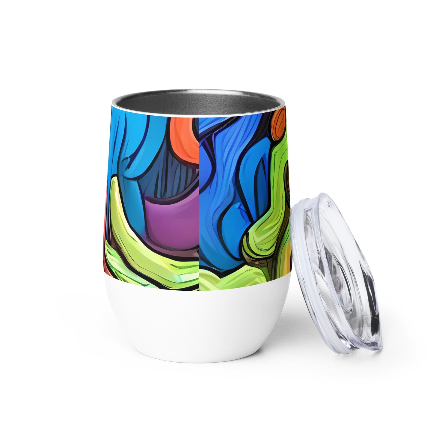 Elevate your outdoor gatherings with our stunning "Tooker's Reverie" wine tumbler, a masterpiece that captures the essence of surreal artistry. Adorned with a mesmerizing blend of fluid shapes in rich blues, oranges, purples, and greens, this tumbler not only holds your favorite wine but also serves as a statement piece that reflects your creative spirit. Designed for both elegance and functionality, it's the perfect companion for gallery openings, casual brunches, or any occasion where you want to impress.