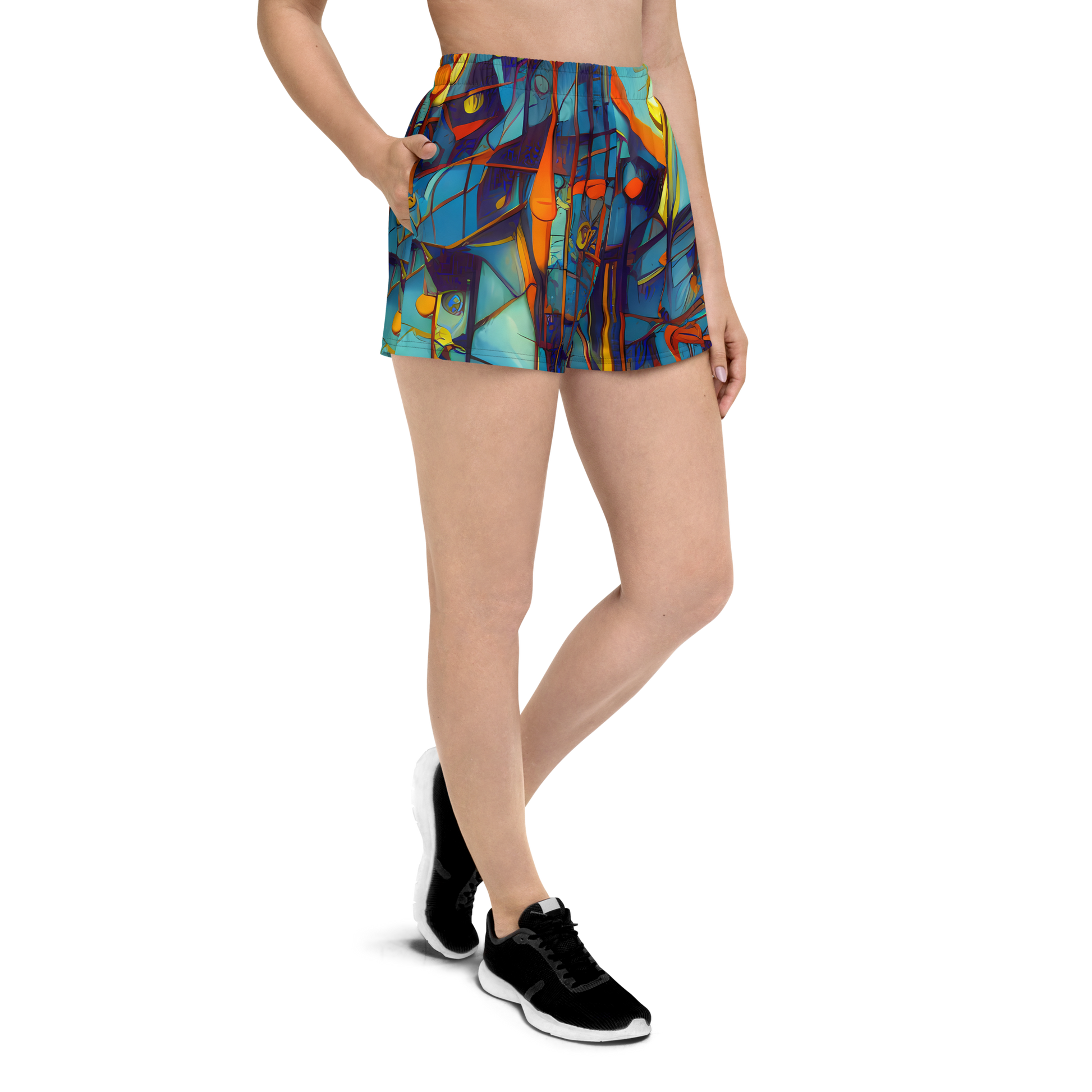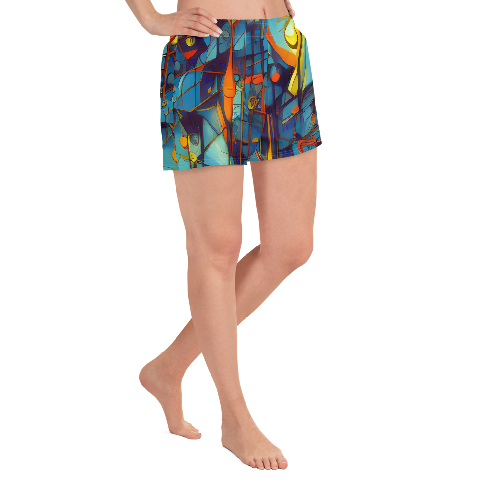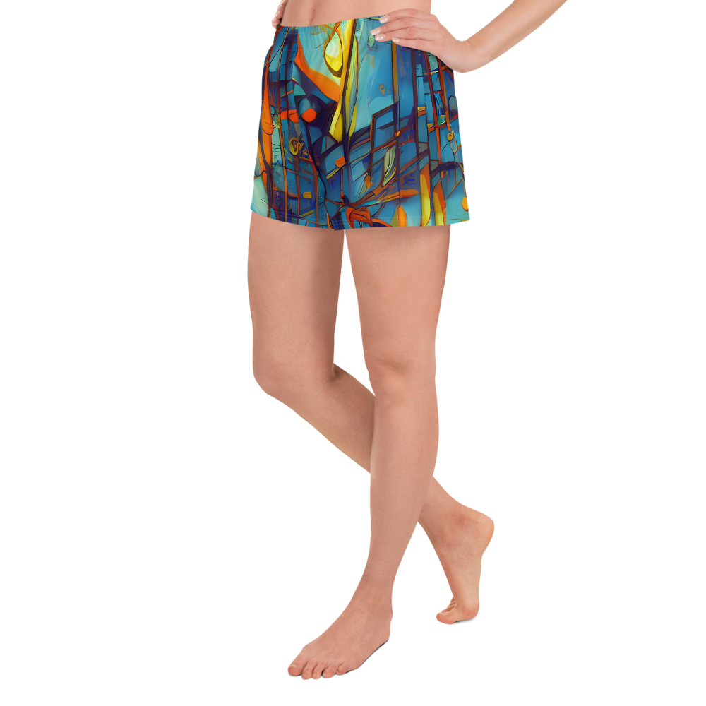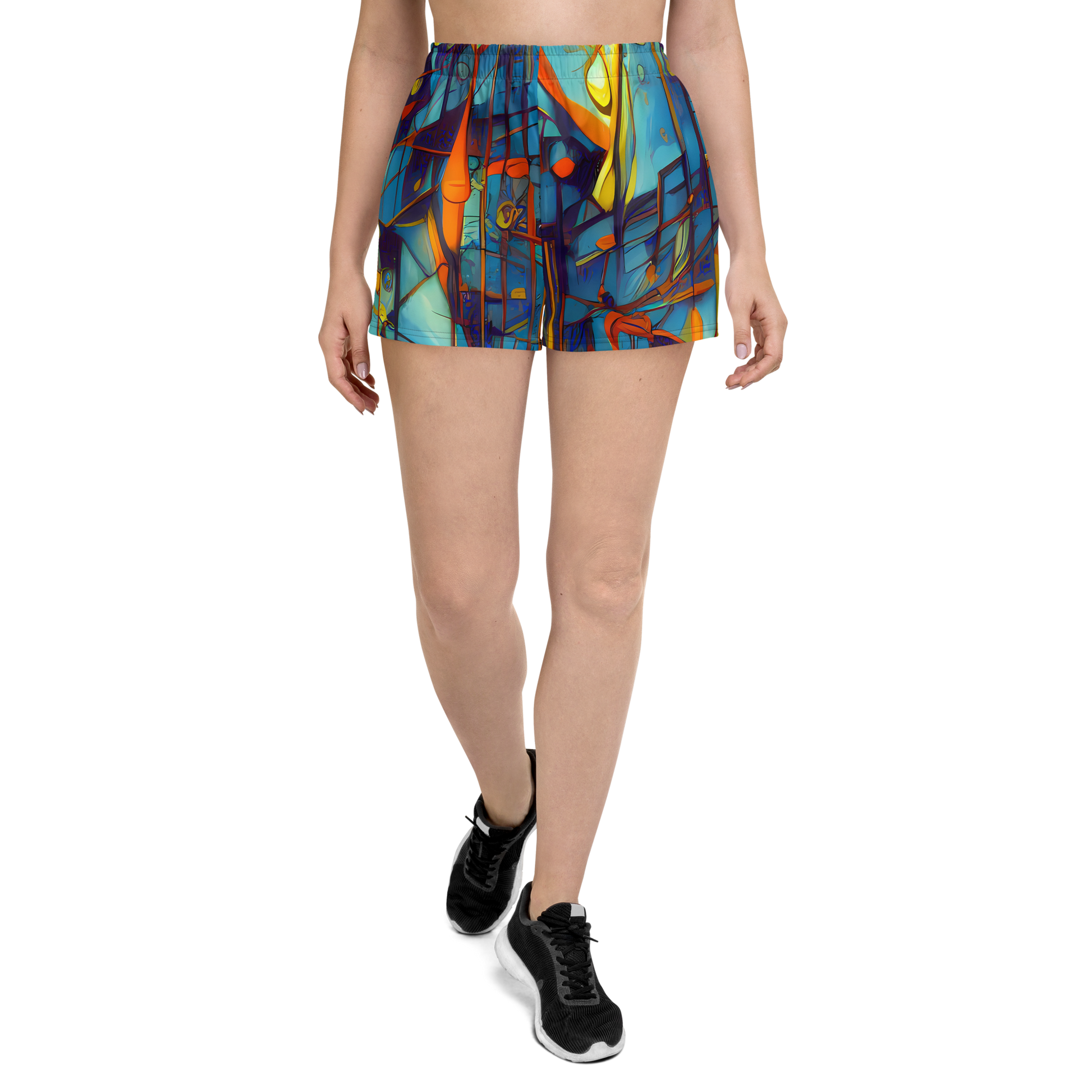 Unleash the whirlwind of creativity in your workout wardrobe with our Women's Athletic Shorts in the stunning "Abstract Eddy" pattern. These shorts are a canvas of motion, painted with swirling lines and geometric shapes in a symphony of rich blues, fiery oranges, and lively yellows, evoking the daring spirit of Ben Templesmith and Piet Mondrian. Perfect for those who command attention and live boldly, these shorts are a wearable piece of art that'll turn heads at every corner.