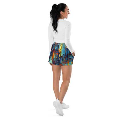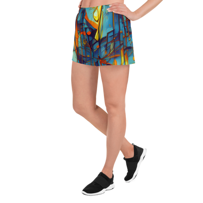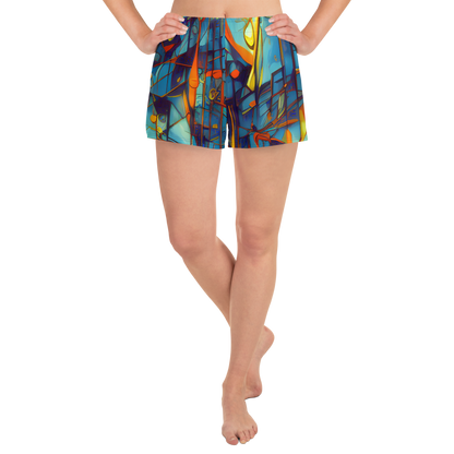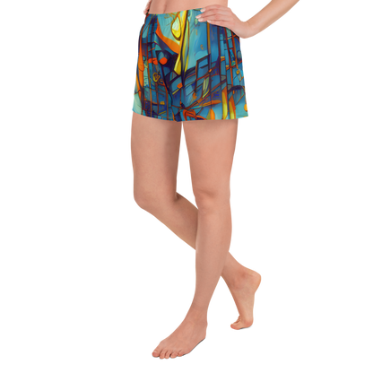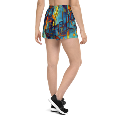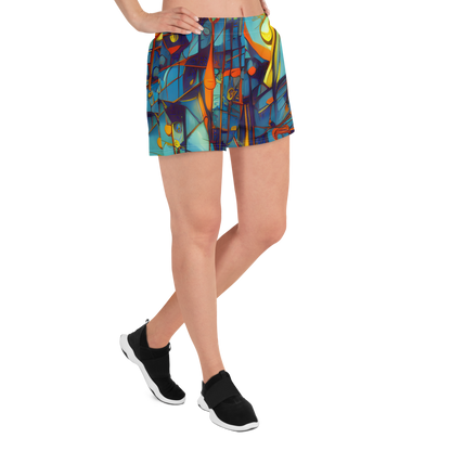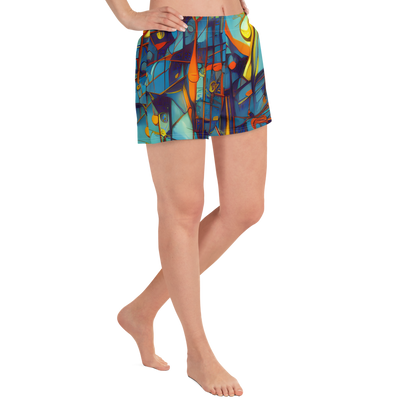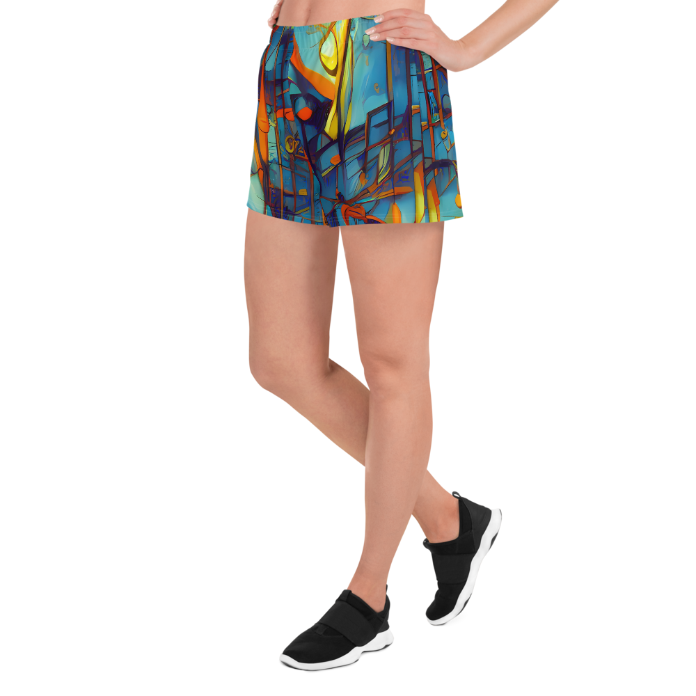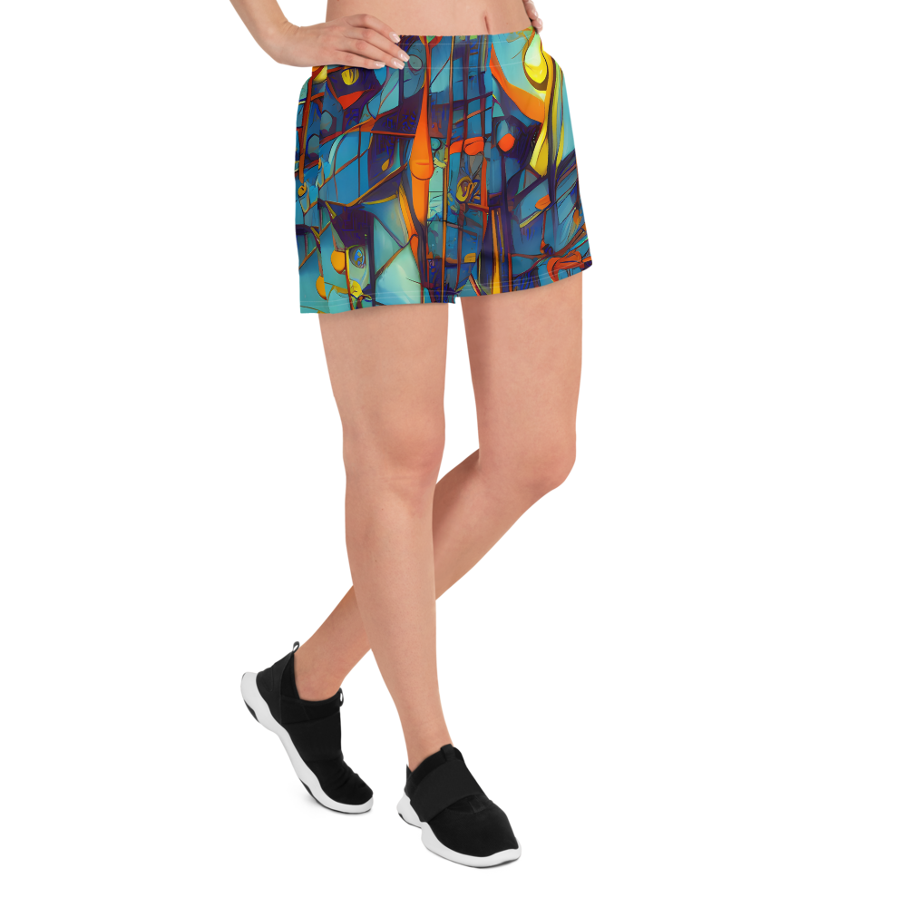 Unleash the whirlwind of creativity in your workout wardrobe with our Women's Athletic Shorts in the stunning "Abstract Eddy" pattern. These shorts are a canvas of motion, painted with swirling lines and geometric shapes in a symphony of rich blues, fiery oranges, and lively yellows, evoking the daring spirit of Ben Templesmith and Piet Mondrian. Perfect for those who command attention and live boldly, these shorts are a wearable piece of art that'll turn heads at every corner.