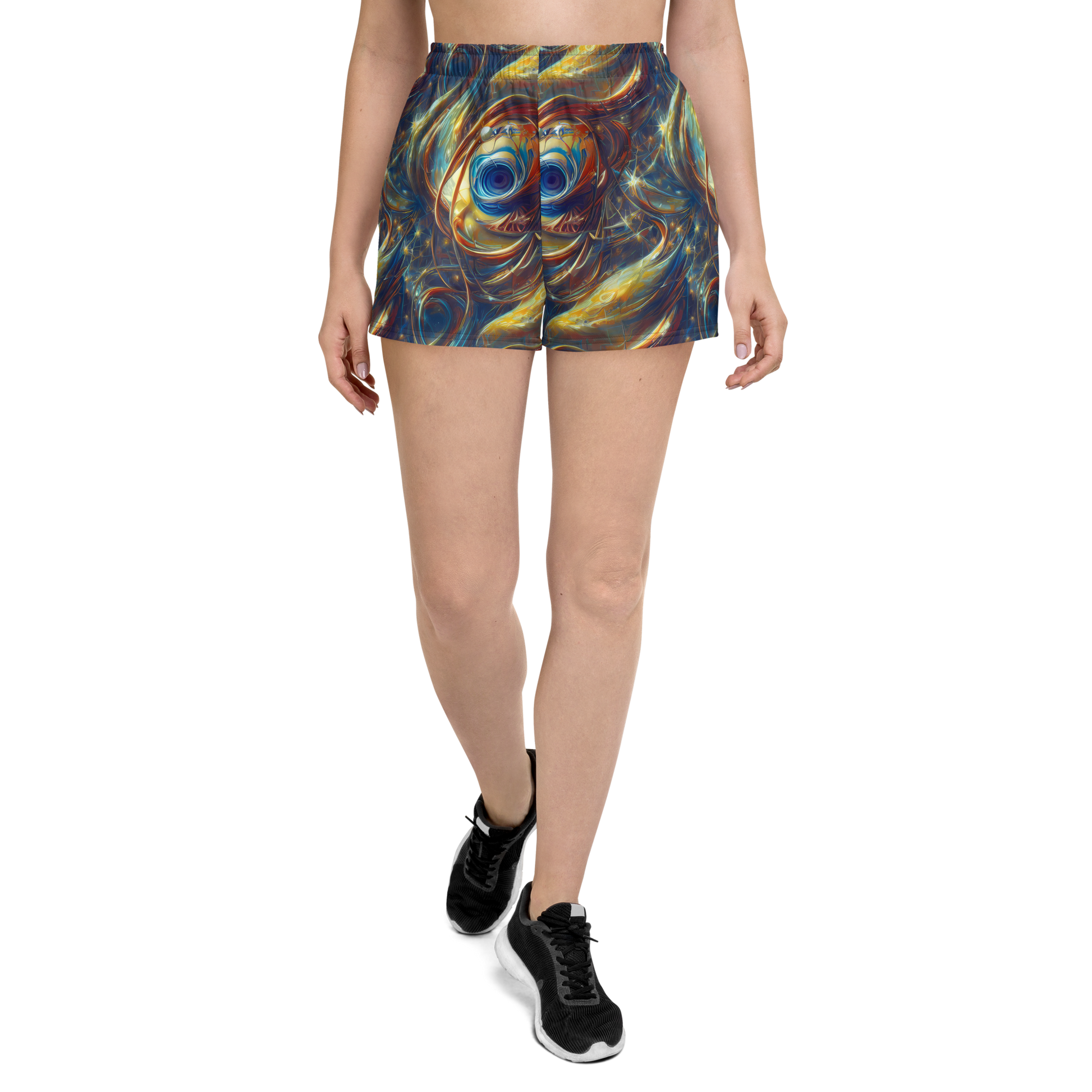 Step into a world of wonder and mysticism with our AI-designed athletic short shorts, featuring a mesmerizing pattern that swirls with deep cosmic blues, fiery oranges, and shimmering golds. Inspired by the vastness and mystery of deep space, these shorts are perfect for bold, imaginative personalities looking to make a statement at avant-garde events, music festivals, or art exhibitions. Crafted for both style and performance, they're ideal for the fall and winter seasons.
