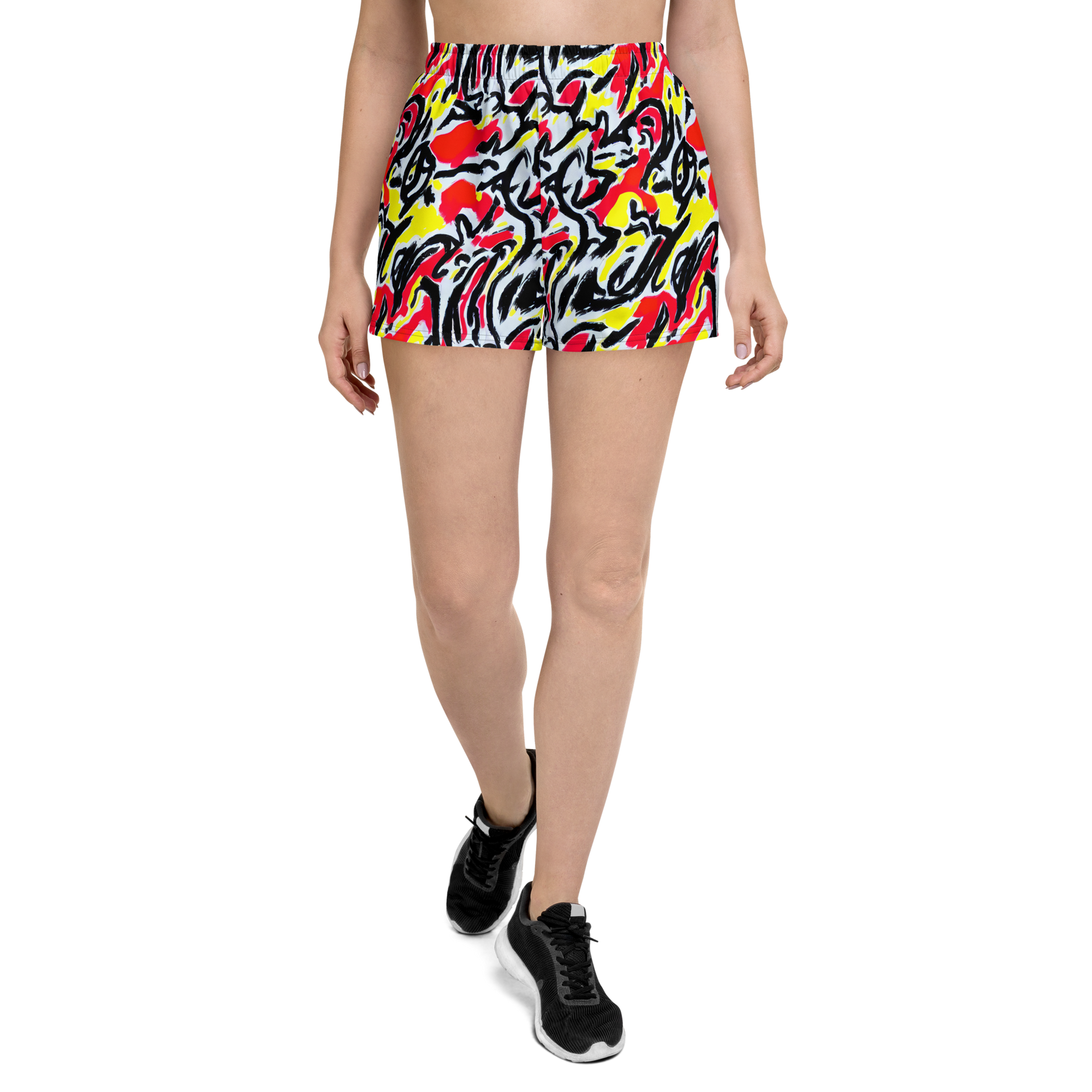 Step into a world of vibrant expression with our AI-designed athletic short shorts, featuring a dynamic pattern that evokes the intensity and motion of abstract art. Perfect for making a statement at any event, these shorts combine striking visuals with unmatched comfort and practicality.