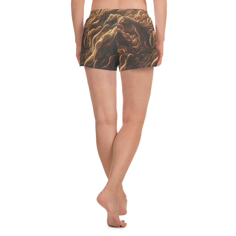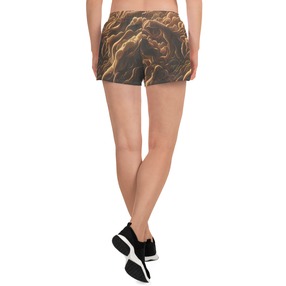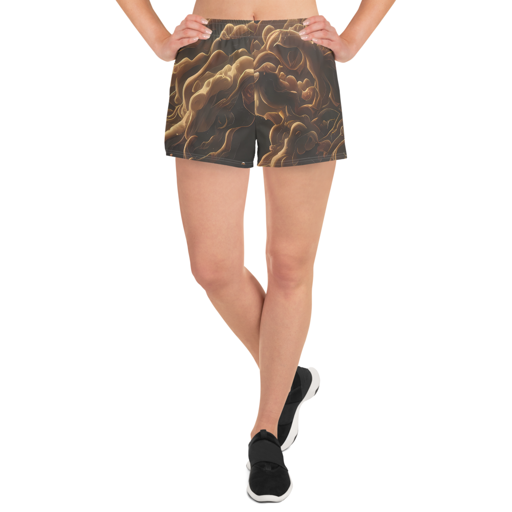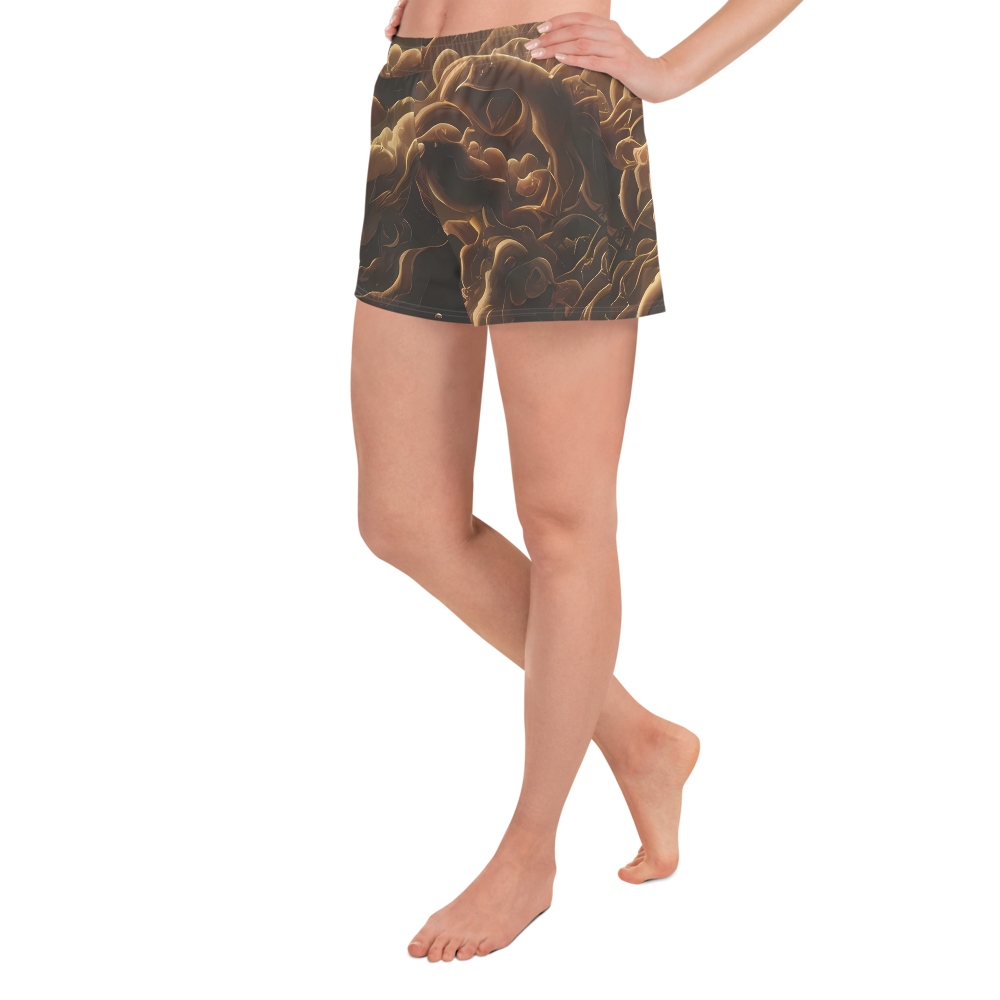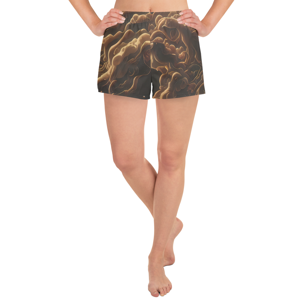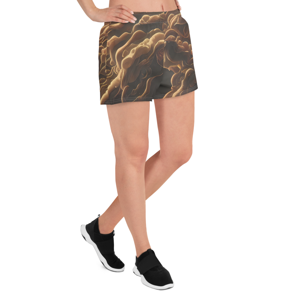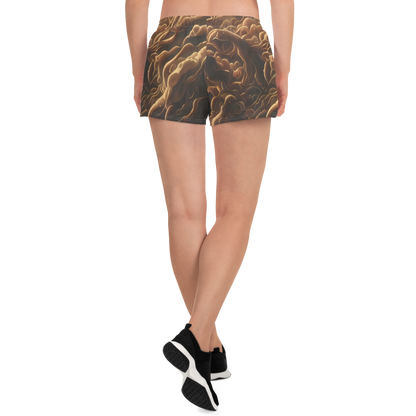Step into a world where fashion meets the cosmos with our "Ether Tangle" Women's Athletic Shorts. Adorned with an exquisite pattern that captures the essence of celestial wonder, these shorts are a masterpiece of artistry and athleticism. The swirling golden and amber hues set against a deep-space backdrop create a mesmerizing effect, reminiscent of the celestial paintings of Evelyn De Morgan, with a touch of Jeremy Geddes' weightlessness. Perfect for the sophisticated spirit and the artistically inclined, these shorts will envelop you in a dreamlike state, adding a touch of mystery to your workout wardrobe.