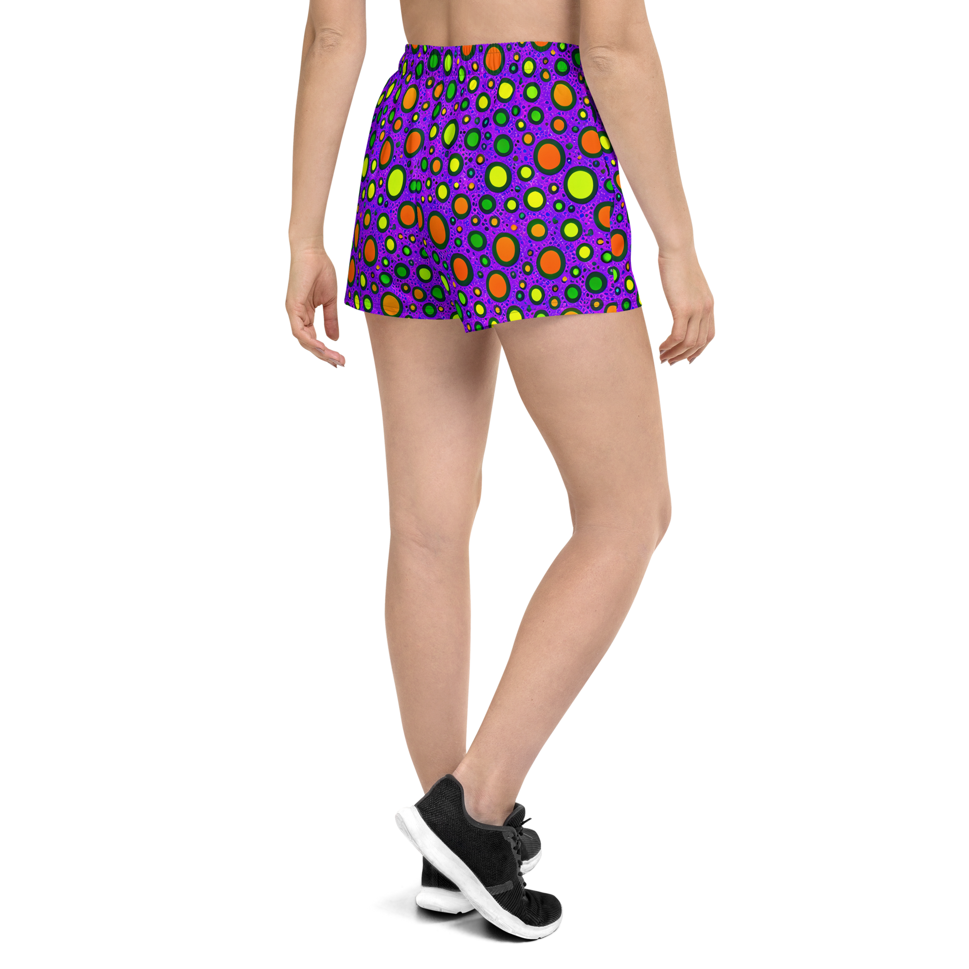 Step into summer with our "Luminous Bubbles" Women's Athletic Shorts, where vibrant colors meet playful design! Featuring a stunning array of vivid greens, oranges, and yellows against a deep, electric purple backdrop, these shorts are perfect for those who embrace a bold and adventurous style. Whether you’re at a summer festival or out for a run, these shorts will make a statement and keep you comfortable and stylish in every activity!