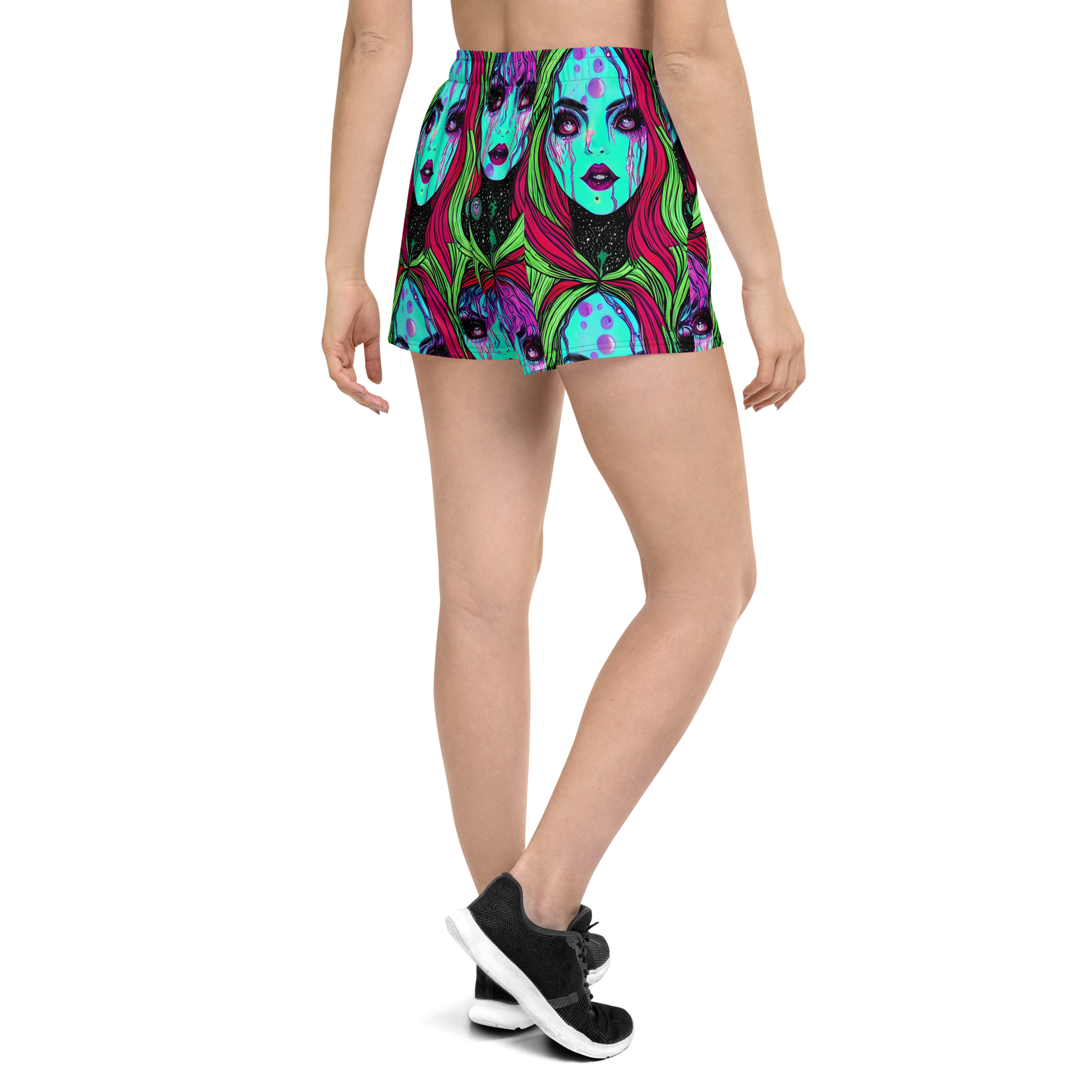 Step into a world of vibrant self-expression with our "Luminous Nightfall" Women's Athletic Shorts. This electrifying design, featuring a tapestry of vivid turquoise, magenta, and neon green intertwined with cosmic black and ethereal purple, transforms your athletic wear into a bold statement piece. Perfect for the fearless and imaginative, these shorts are crafted for both standout style and high-performance comfort, making them ideal for avant-garde events or dynamic urban nightlife.