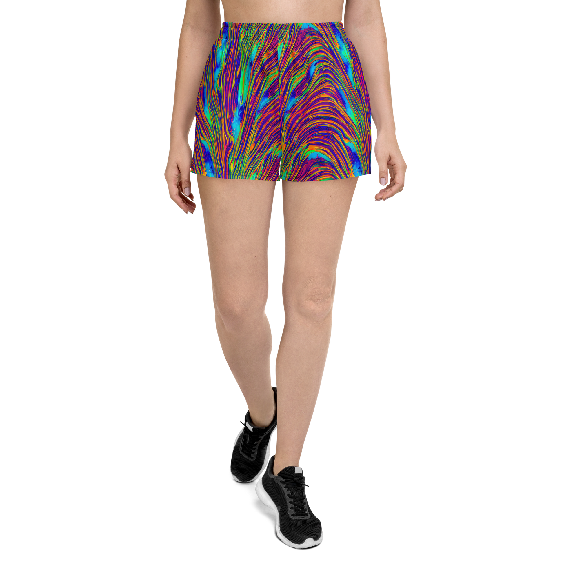 Step into a world of vibrant energy with our AI-designed athletic short shorts, featuring a mesmerizing pattern of electric blues, fiery oranges, vivid purples, and neon greens that evoke fluidity and movement. Perfect for bold personalities and artistic souls, these shorts are your go-to for music festivals, art exhibitions, or any event that celebrates creativity. Made for spring and summer, they add a splash of psychedelic energy to your wardrobe.