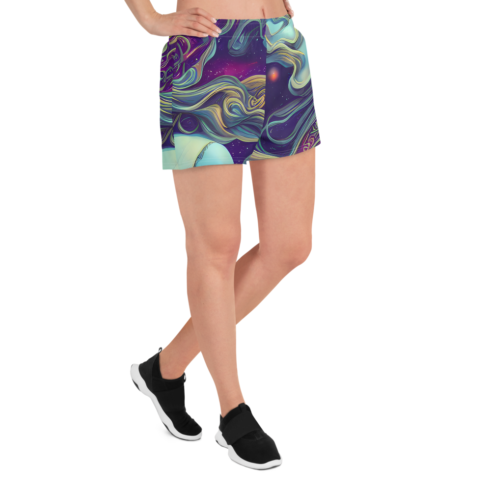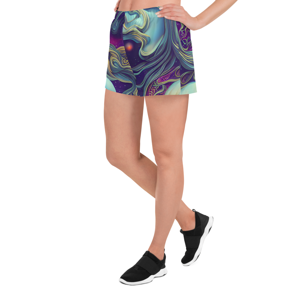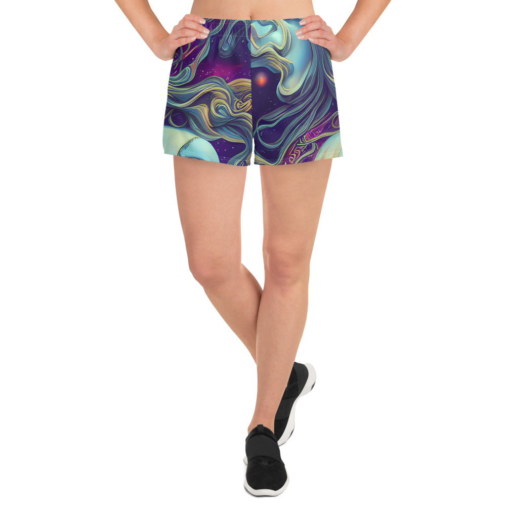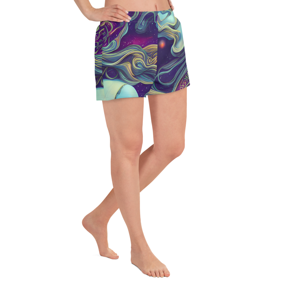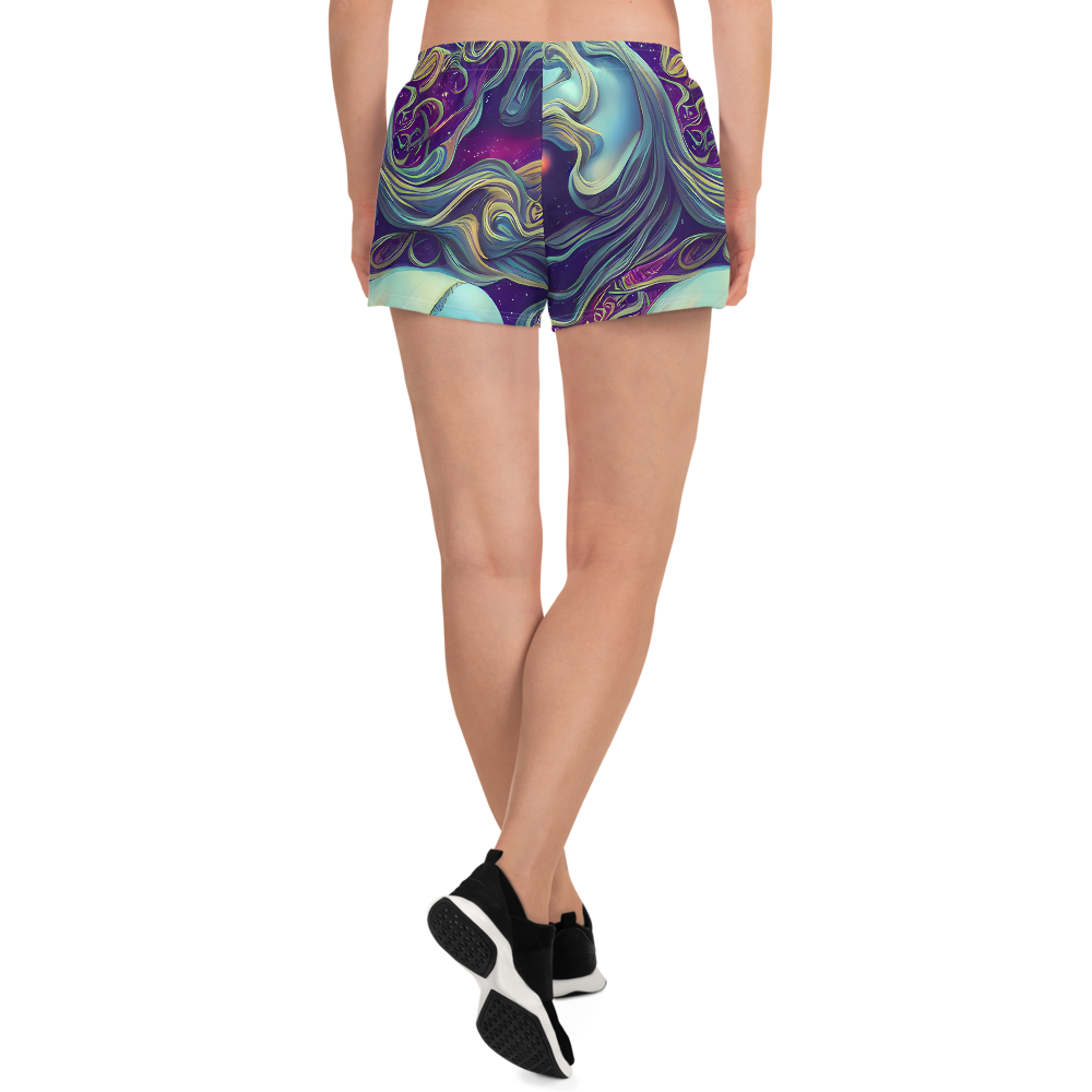 Step into a celestial dreamscape with our "Stellar Waves" Women’s Athletic Shorts, where fashion meets the cosmos. Draped in the enchanting hues of deep blue, purple, and gold, this pattern transports you to a starry night sky, with swirling celestial motifs and subtle faces inspired by Evelyn De Morgan's pre-Raphaelite art. Perfect for those who carry the night's mystique into their workouts or leisure, these shorts are a love letter to the romantic and otherworldly within you.
