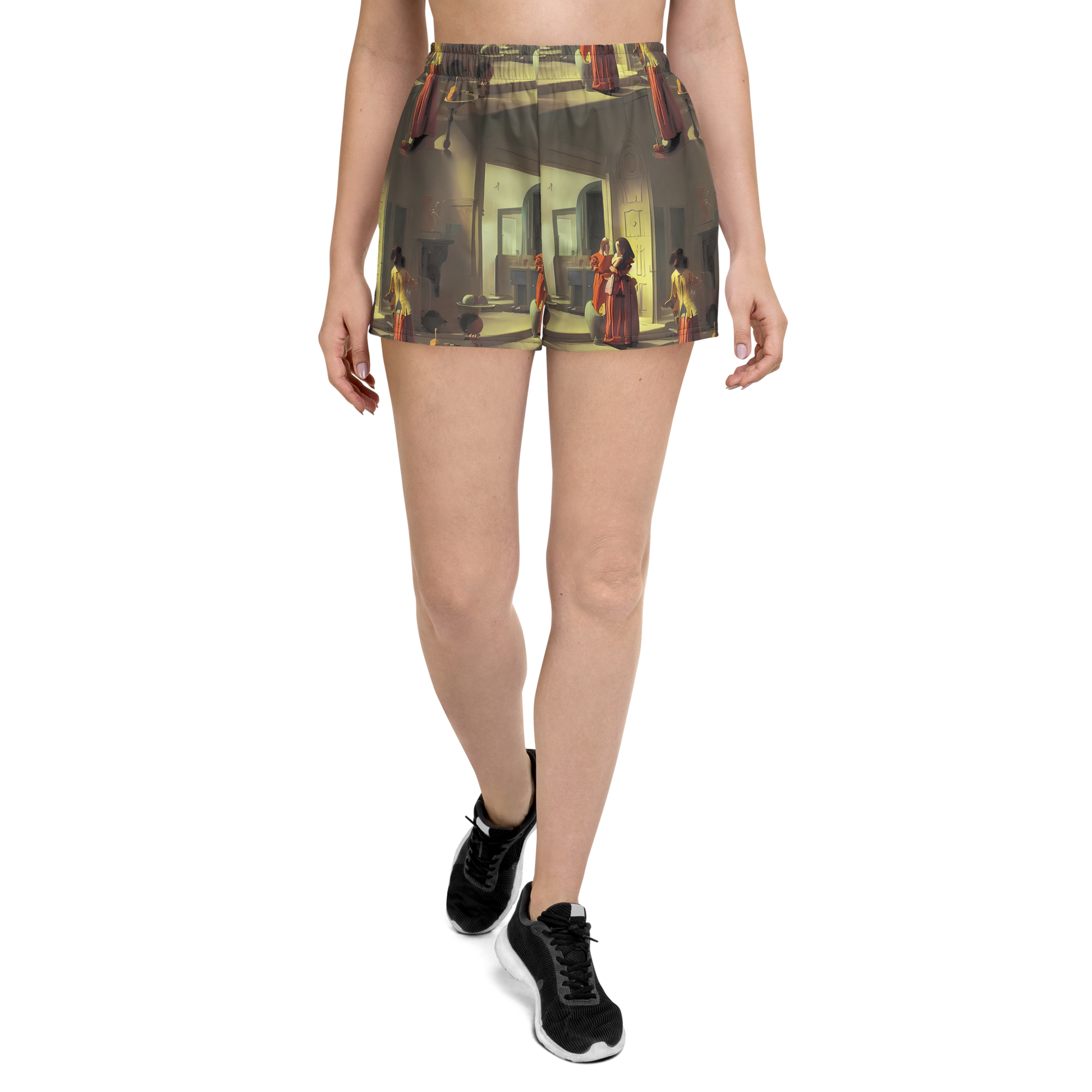 Step into a world of timeless mystery with our AI-designed athletic shorts, featuring a mesmerizing pattern of deep reds, muted yellows, and soft shadows. Inspired by classical architecture and surreal floating figures, these shorts evoke a sense of quiet contemplation, perfect for evening gatherings, art exhibitions, or fall and winter events. Crafted from 91% recycled polyester and 9% spandex, they offer unparalleled comfort and style for the reflective and imaginative personality.