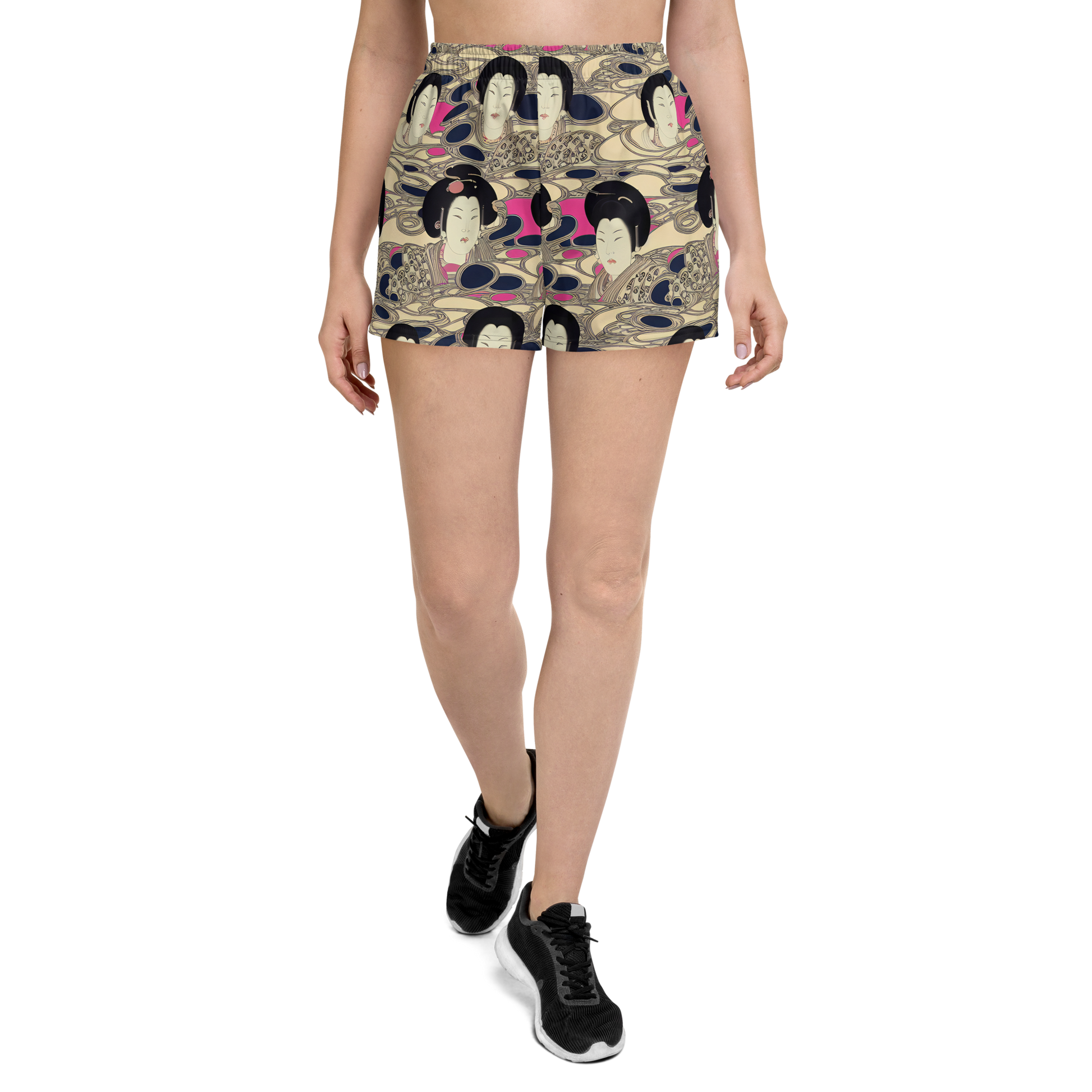 Step into a world of artistic expression with our "Timeless Reverie" Women's Athletic Shorts! This unique design merges traditional elegance with cosmic whimsy, featuring serene faces and swirling abstract waves in deep navy, soft cream, and vibrant pink. Perfect for those who embrace both heritage and the unknown, these shorts not only elevate your workout wardrobe but also make a bold statement wherever you go. Whether you're at the gym, running errands, or attending an avant-garde gathering, these shorts are your go-to for comfort and style.