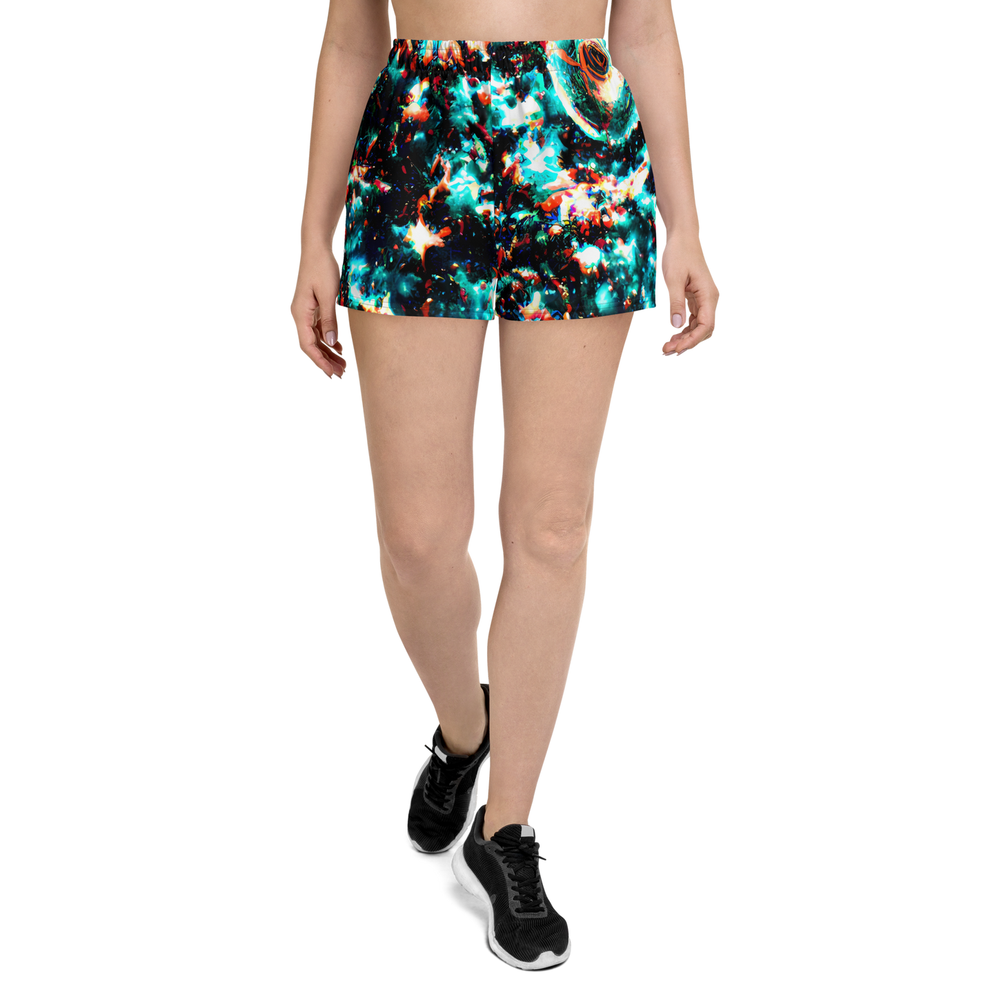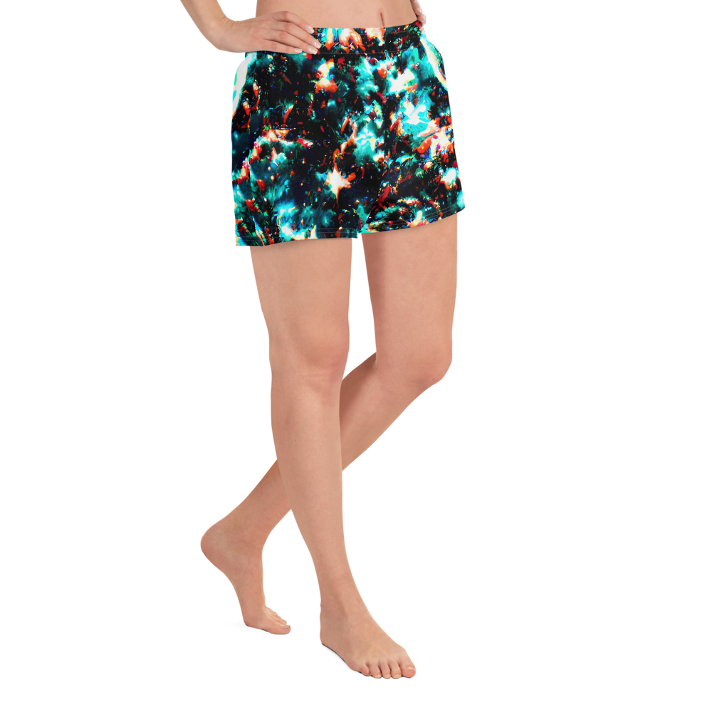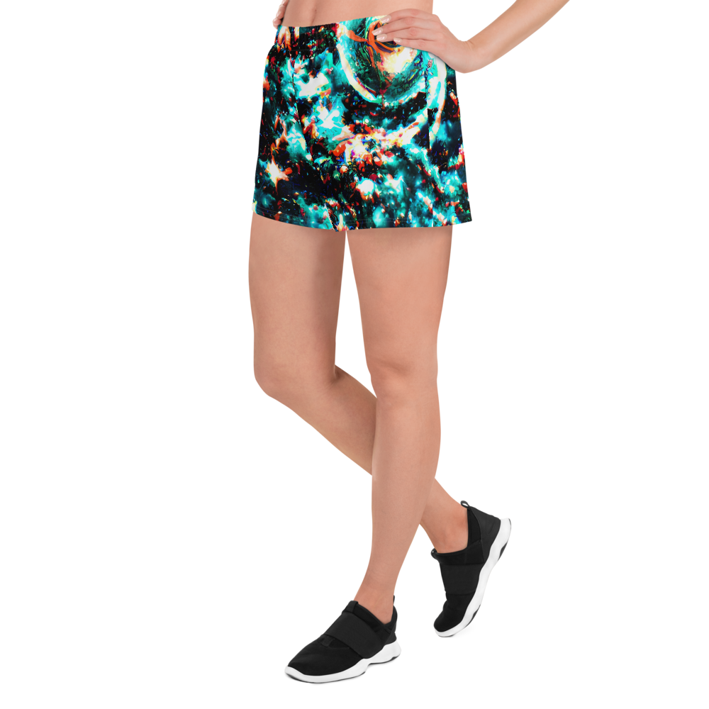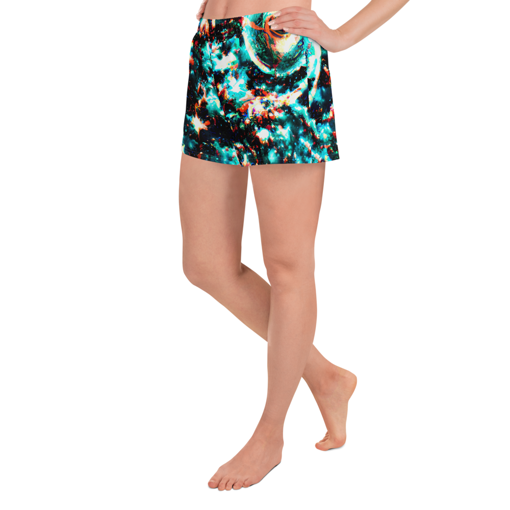 Step into a universe of style with our athletic short shorts, featuring a stunning design that captures the essence of a cosmic dance. Swirls of vibrant turquoise and fiery orange create a dynamic pattern that's perfect for those who dare to stand out. Whether you're dancing under the stars at a music festival or showcasing your unique flair at an art event, these shorts are your canvas for self-expression during the warmer months.