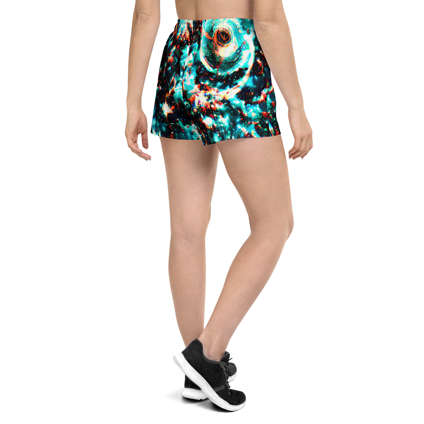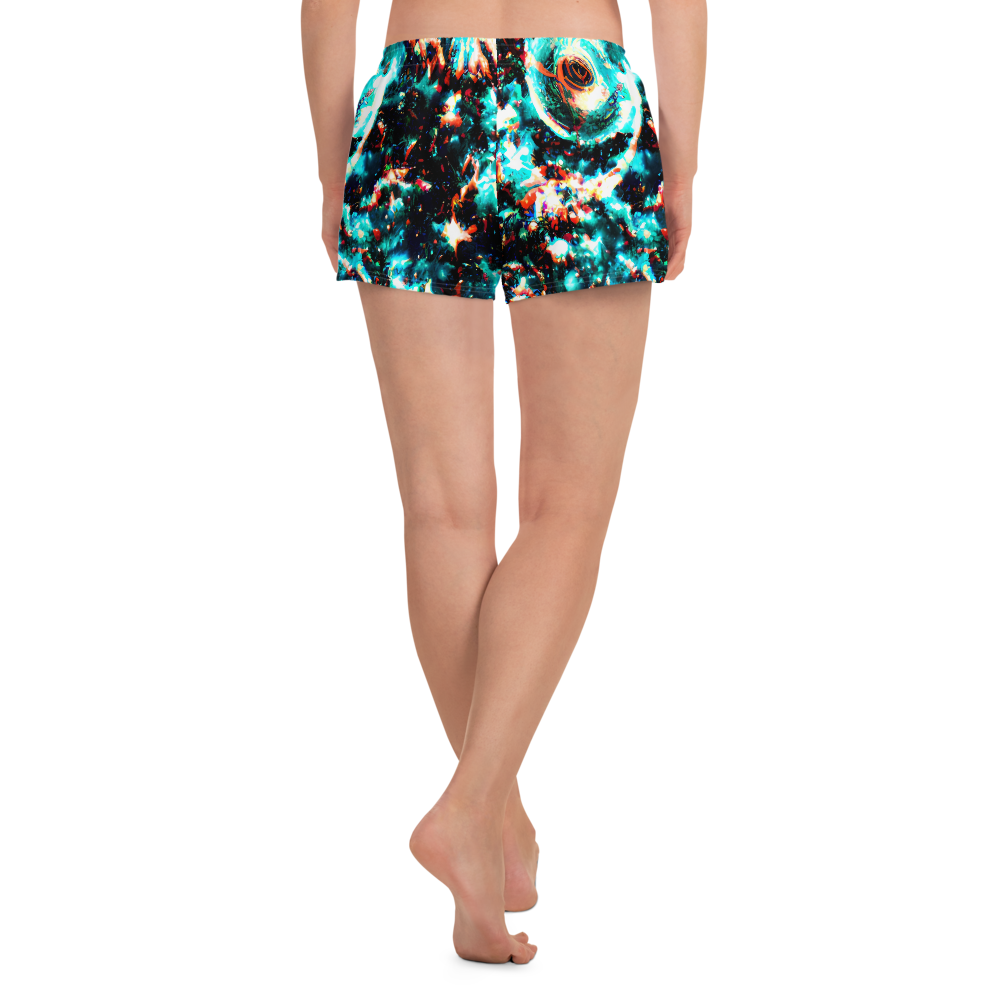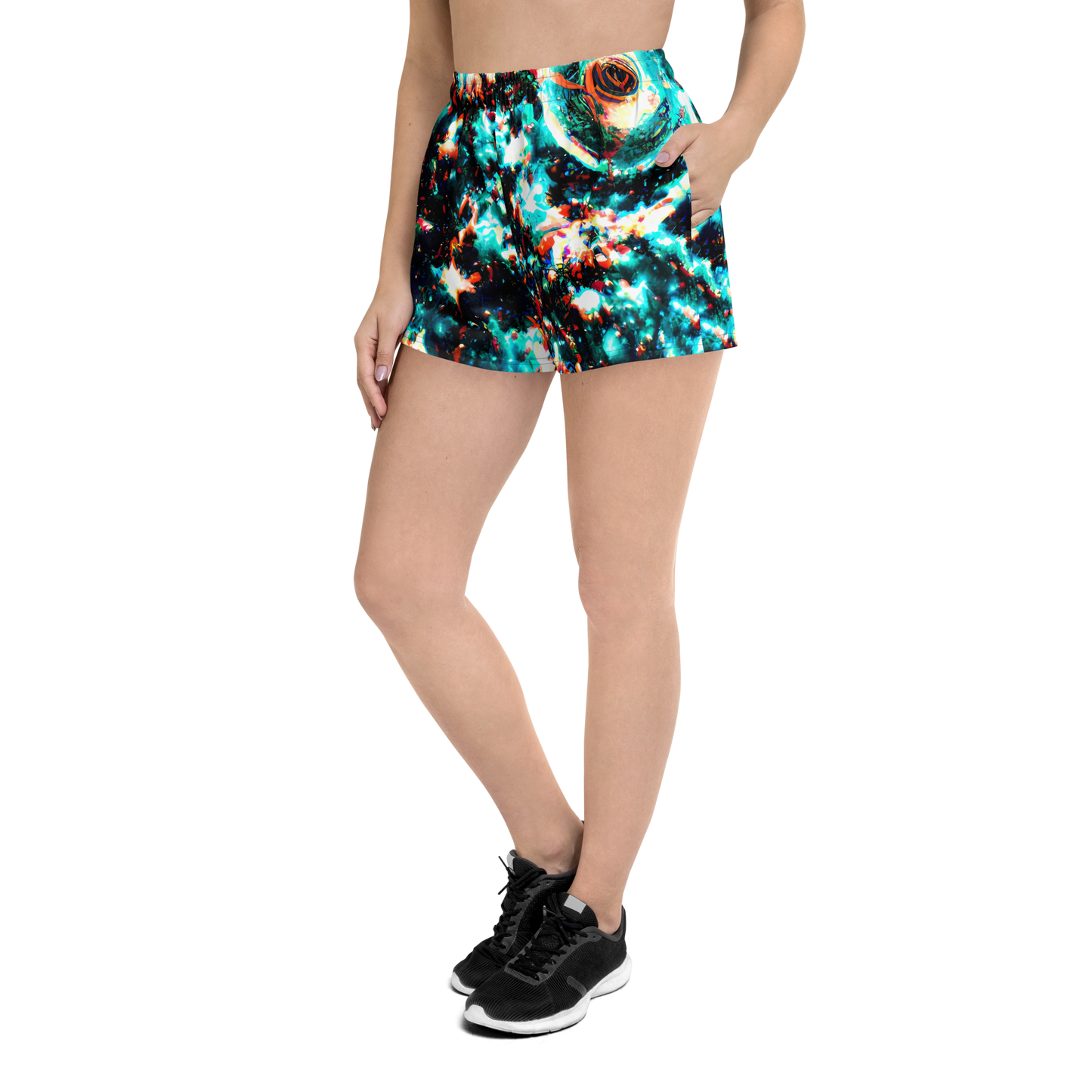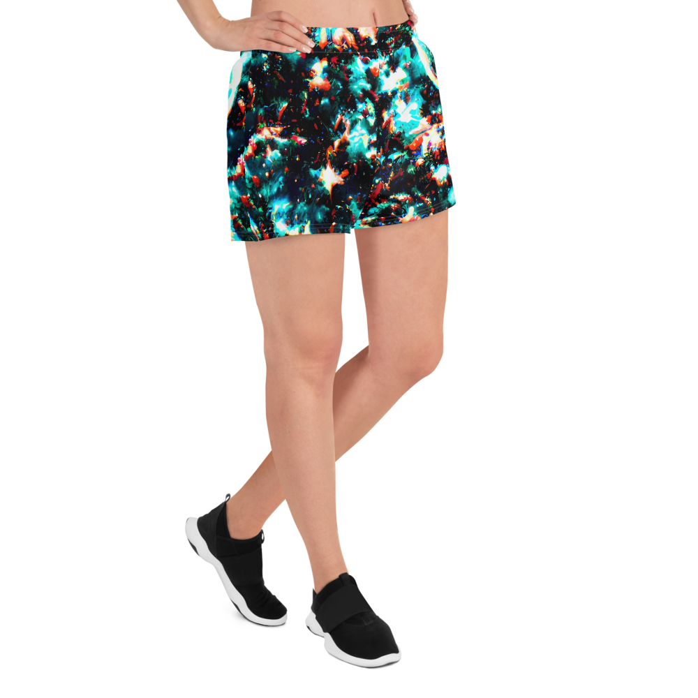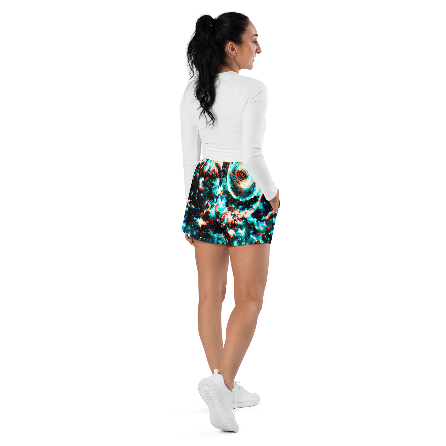 Step into a universe of style with our athletic short shorts, featuring a stunning design that captures the essence of a cosmic dance. Swirls of vibrant turquoise and fiery orange create a dynamic pattern that's perfect for those who dare to stand out. Whether you're dancing under the stars at a music festival or showcasing your unique flair at an art event, these shorts are your canvas for self-expression during the warmer months.