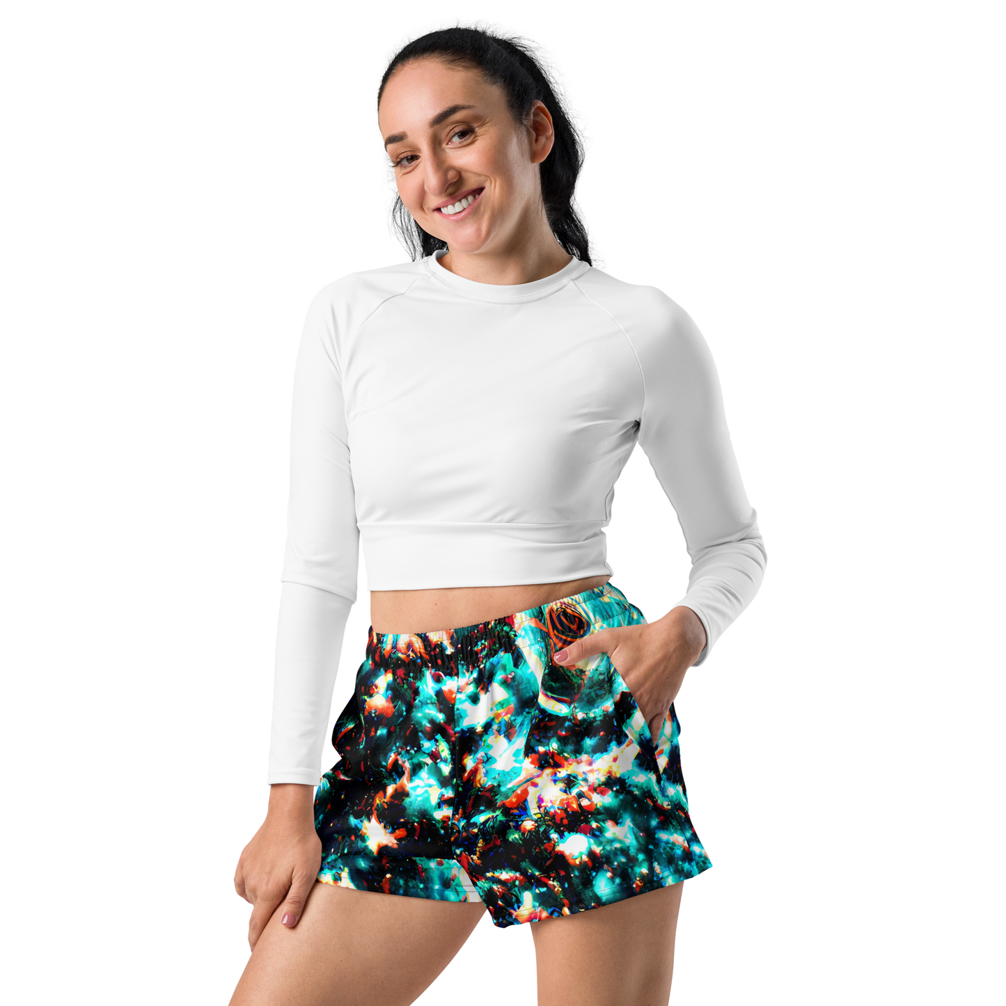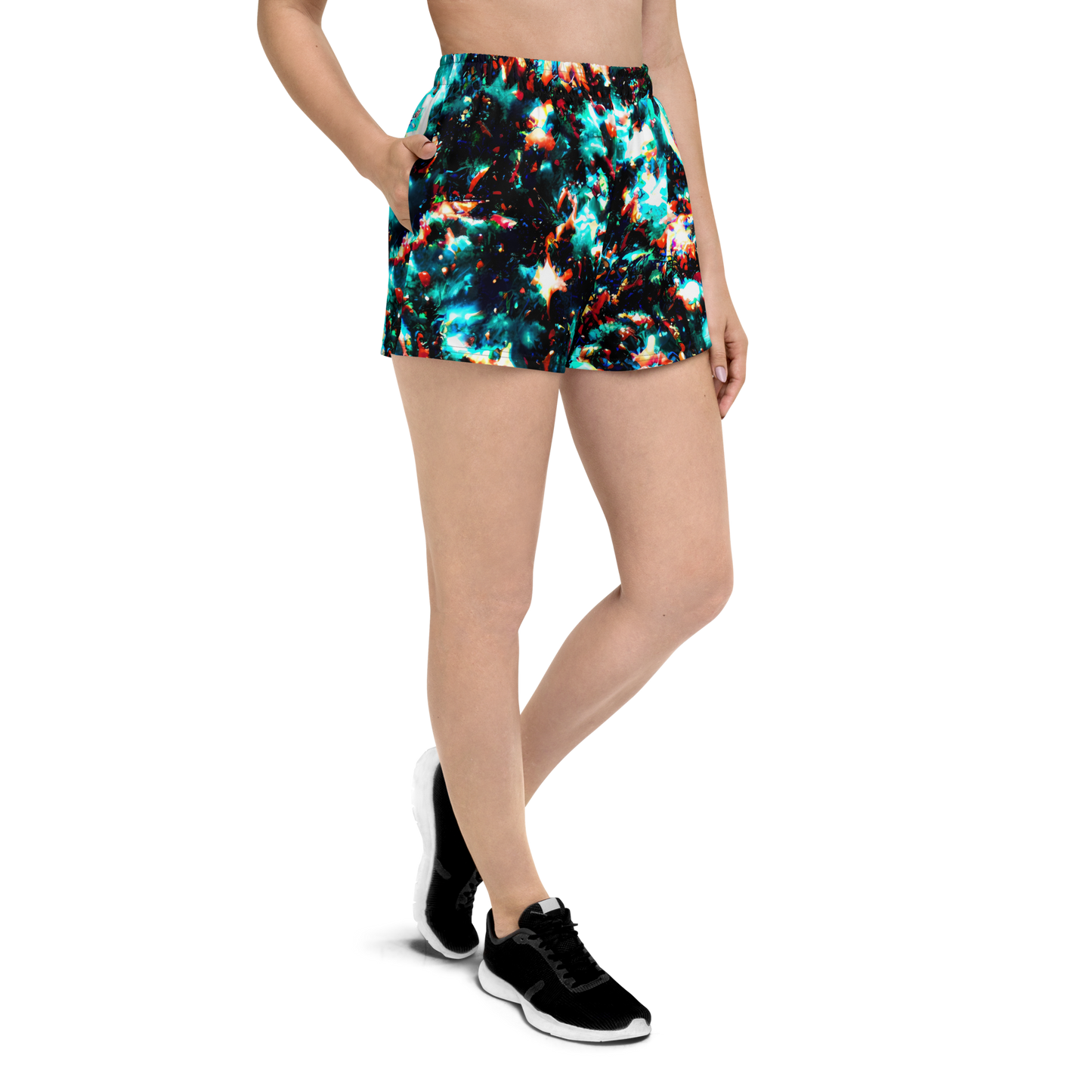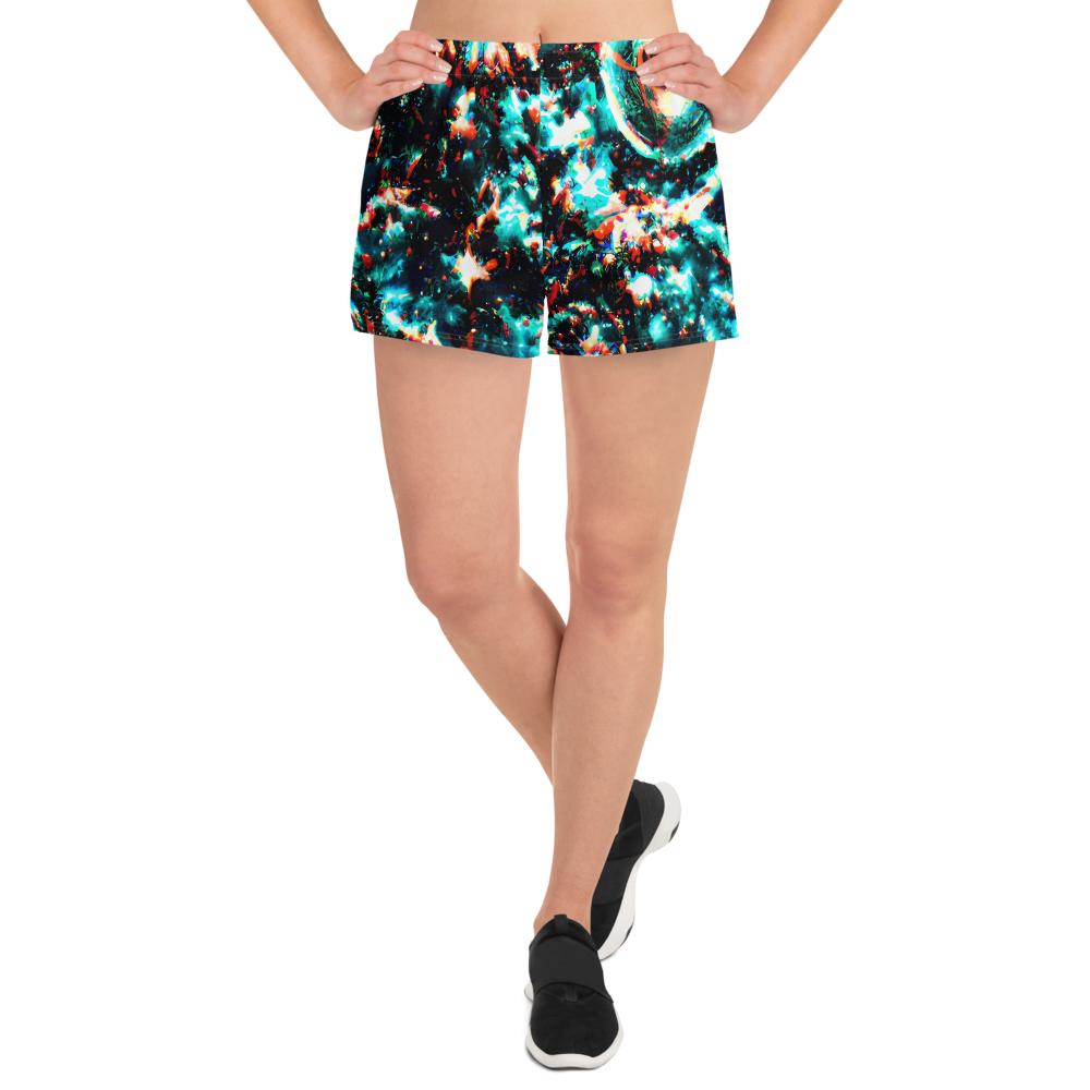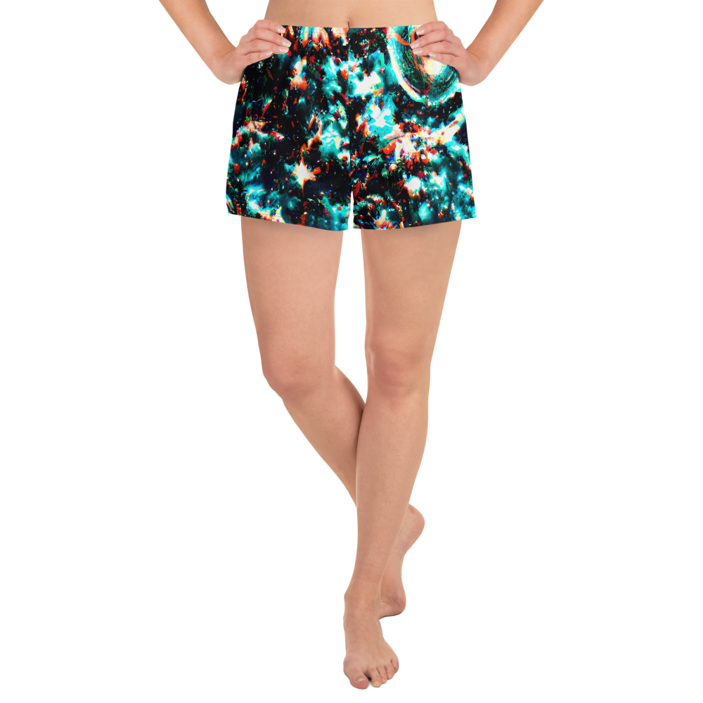 Step into a universe of style with our athletic short shorts, featuring a stunning design that captures the essence of a cosmic dance. Swirls of vibrant turquoise and fiery orange create a dynamic pattern that's perfect for those who dare to stand out. Whether you're dancing under the stars at a music festival or showcasing your unique flair at an art event, these shorts are your canvas for self-expression during the warmer months.
