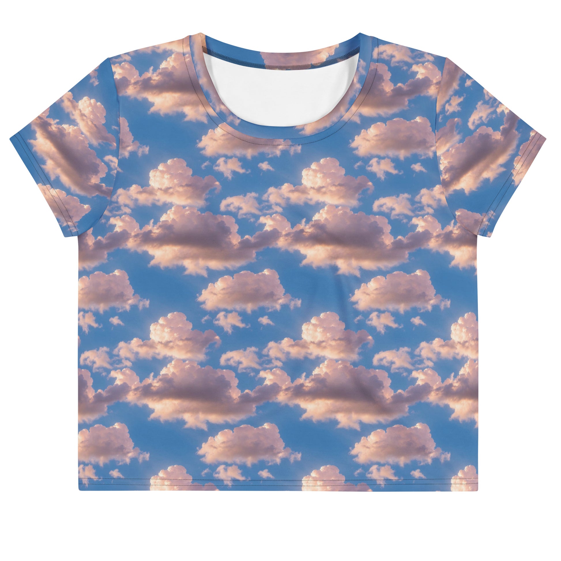 Elevate your wardrobe with our Women's Crop Tee featuring the enchanting "Cotton Candy Skies" pattern! This dreamy design, with its soft pink and peach clouds floating on a serene blue backdrop, captures the essence of whimsical elegance and tranquility. Perfect for spring and summer outings, this tee is a celebration of individuality and artistic flair, making it a must-have for the free-spirited fashionista.