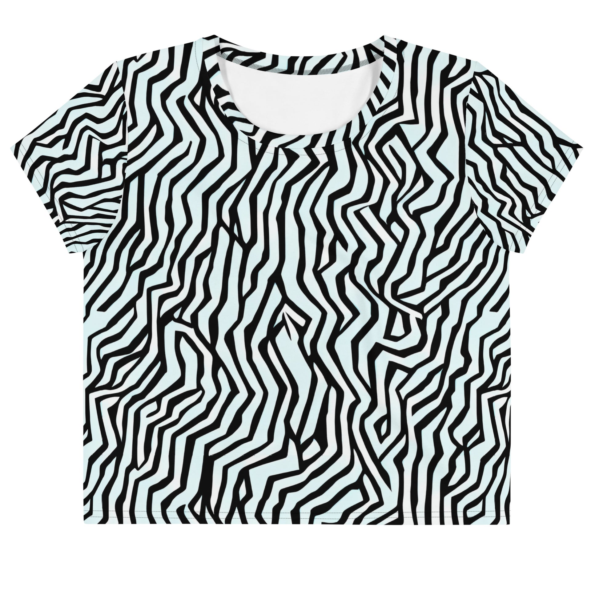 Ignite your wardrobe with our Women's Crop Tee featuring the mesmerizing "Echoing Stripes" pattern! This captivating design showcases a dynamic interplay of black and white zigzag lines, creating an optical illusion that exudes both futuristic flair and retro charm. Perfect for the bold and adventurous, this tee is your go-to piece for artistic gatherings and avant-garde events, ensuring you stand out in any crowd.