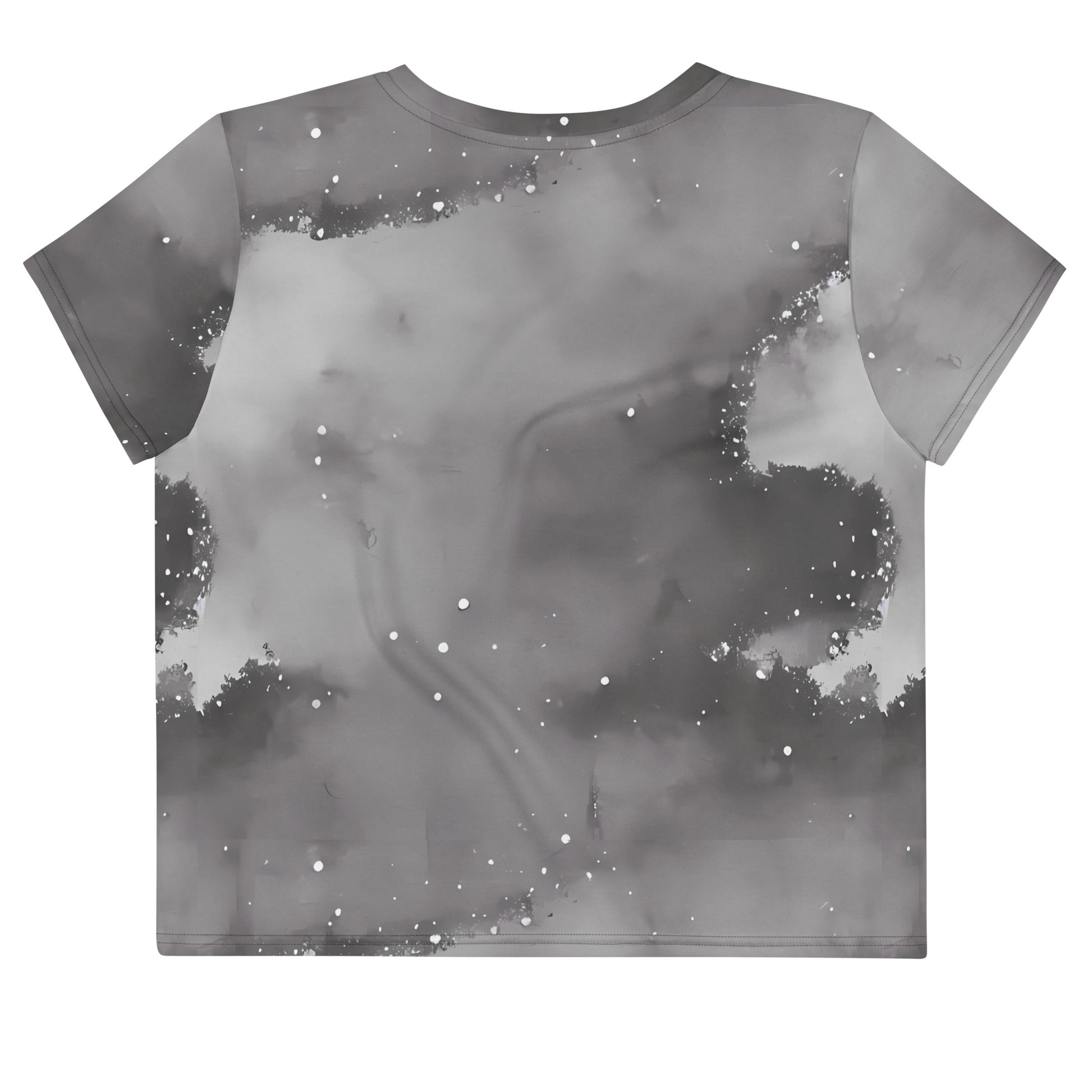 Elevate your wardrobe with our Women's Crop Tee featuring the enchanting "Monochrome Dreams" pattern. This ethereal design captures a misty cosmic landscape, where soft greys and deep blacks blend seamlessly with delicate white specks, reminiscent of distant stars. Perfect for the introspective and imaginative soul, this crop tee is not just a piece of clothing; it's an expression of your unique style and a statement of your individuality. Whether you're heading to an avant-garde evening event or a chic urban outing, this tee will envelop you in comfort and confidence.