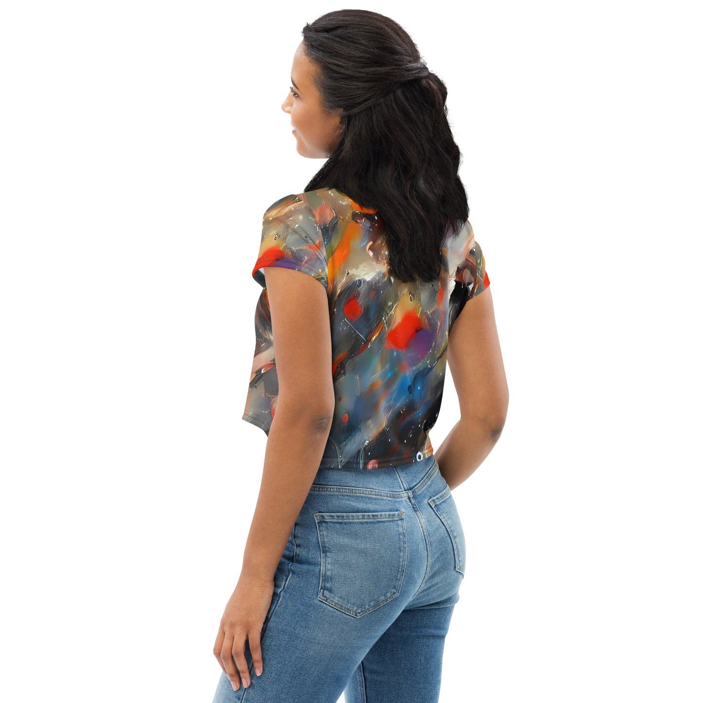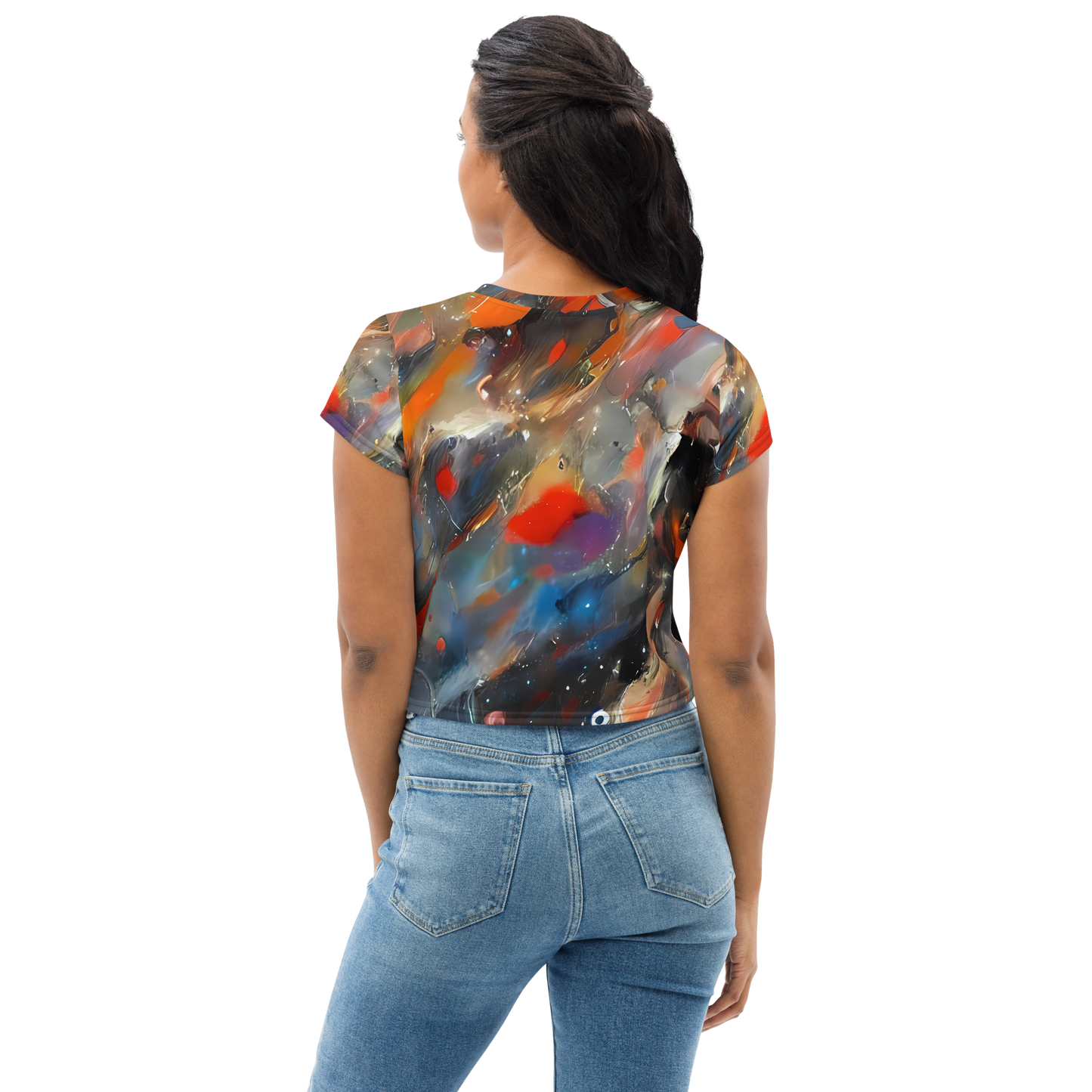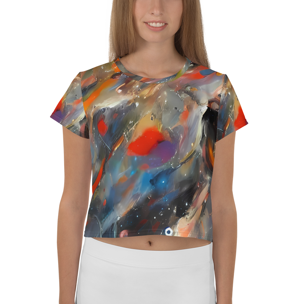 Infuse your look with the vibrant spirit of abstract art with our "Palette Rush" crop tee. Inspired by the fervent strokes of Cecily Brown and the fluid grace of Andre Kohn, this tee is a wearable masterpiece. Warm oranges, deep blues, and fiery reds swirl amidst calming neutrals, creating an energetic yet sophisticated piece that's perfect for both creative events and casual autumn gatherings. Designed for the confident and cultured, this crop tee is your canvas for self-expression.