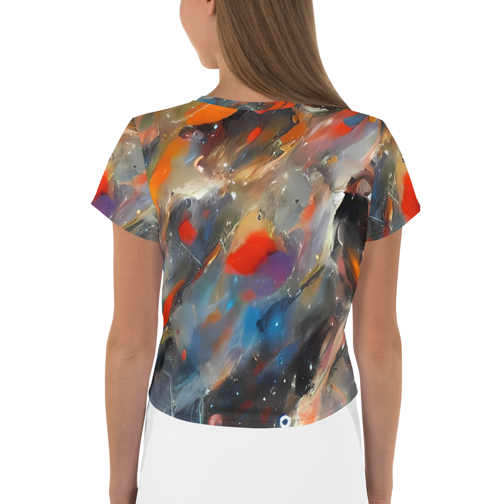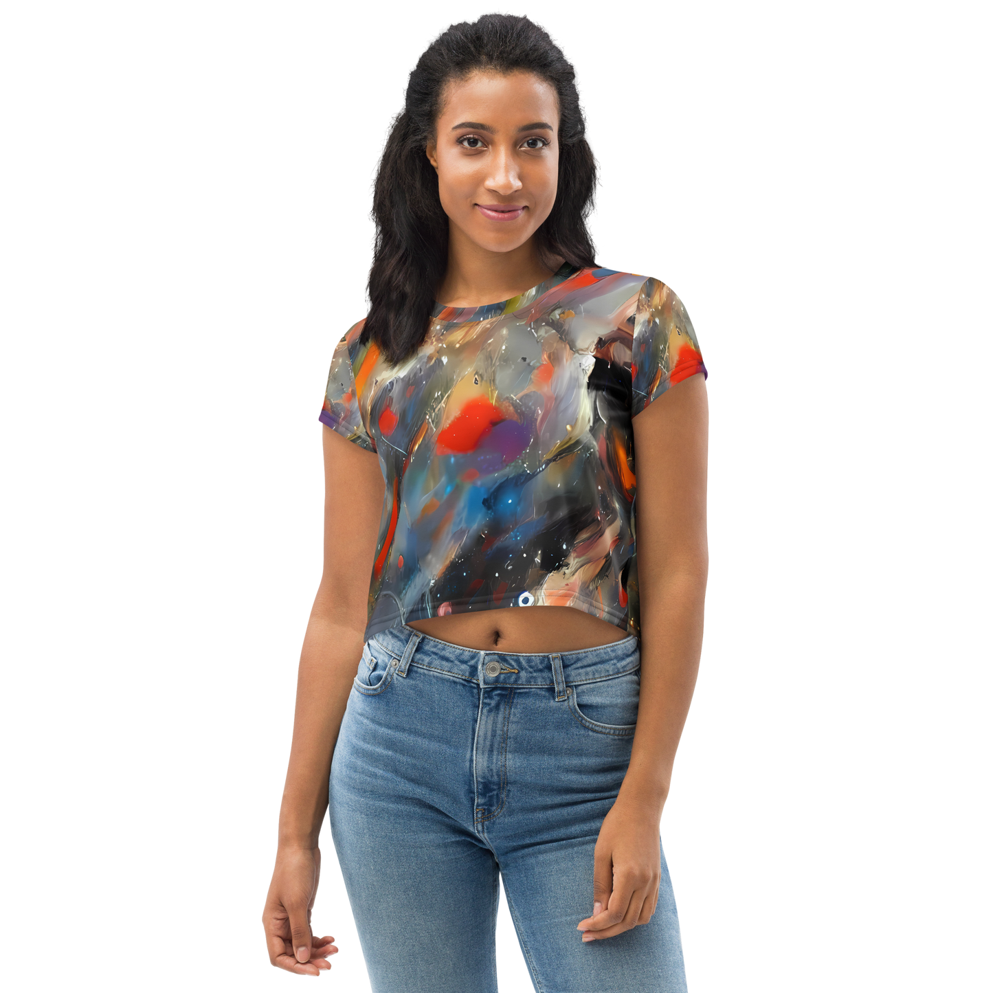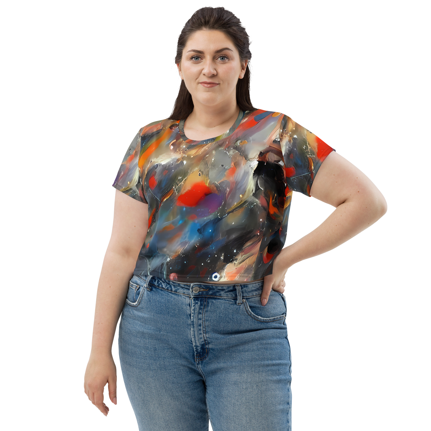 Infuse your look with the vibrant spirit of abstract art with our "Palette Rush" crop tee. Inspired by the fervent strokes of Cecily Brown and the fluid grace of Andre Kohn, this tee is a wearable masterpiece. Warm oranges, deep blues, and fiery reds swirl amidst calming neutrals, creating an energetic yet sophisticated piece that's perfect for both creative events and casual autumn gatherings. Designed for the confident and cultured, this crop tee is your canvas for self-expression.