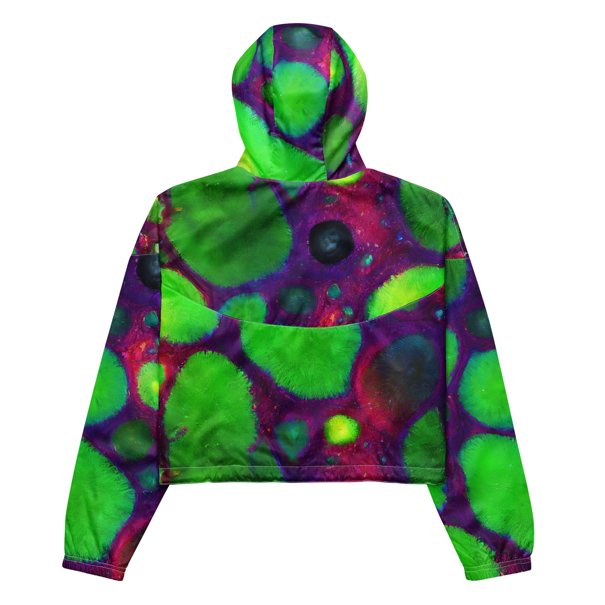 Unleash your inner adventurer with our AI-designed Women's Cropped Windbreaker, featuring the eye-catching "Acid Raindrops" pattern! This vibrant design bursts with dynamic lime greens and deep magentas, creating an artistic statement that captures the essence of nature's hidden beauty. Perfect for those who dare to stand out, this lightweight and waterproof windbreaker is your go-to companion for lively summer festivals and spontaneous outings. Embrace the perfect blend of style and functionality while showcasing your unique flair!
