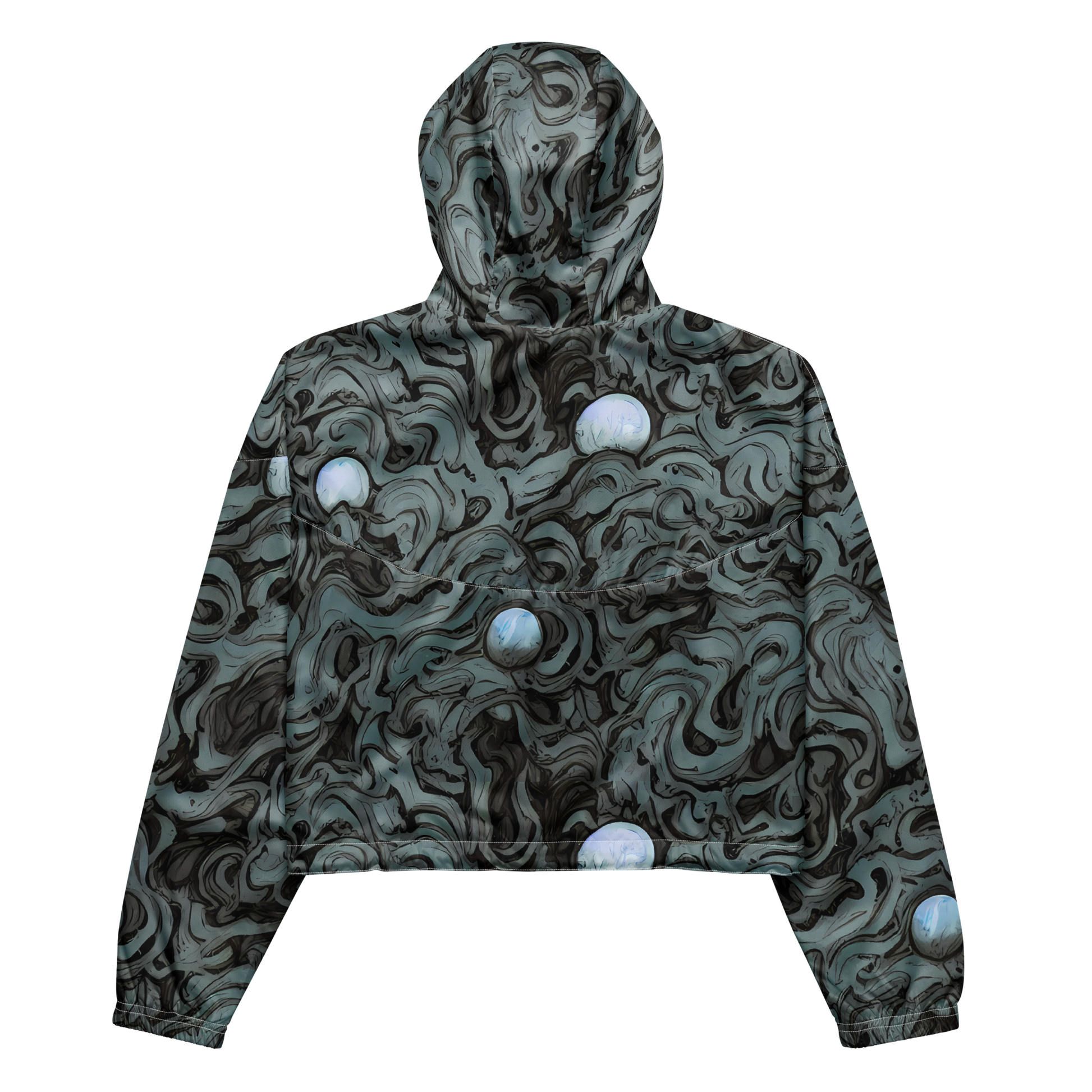 Unleash your bold spirit with our Caruso Swirl Women's Cropped Windbreaker! This striking piece features an eye-catching pattern of dark, moody swirls in deep brown and black, accented with hints of white, evoking the artistic essence of Santiago Caruso. Perfect for avant-garde events or everyday adventures, this windbreaker is your go-to for making a statement while staying stylishly protected from the elements.