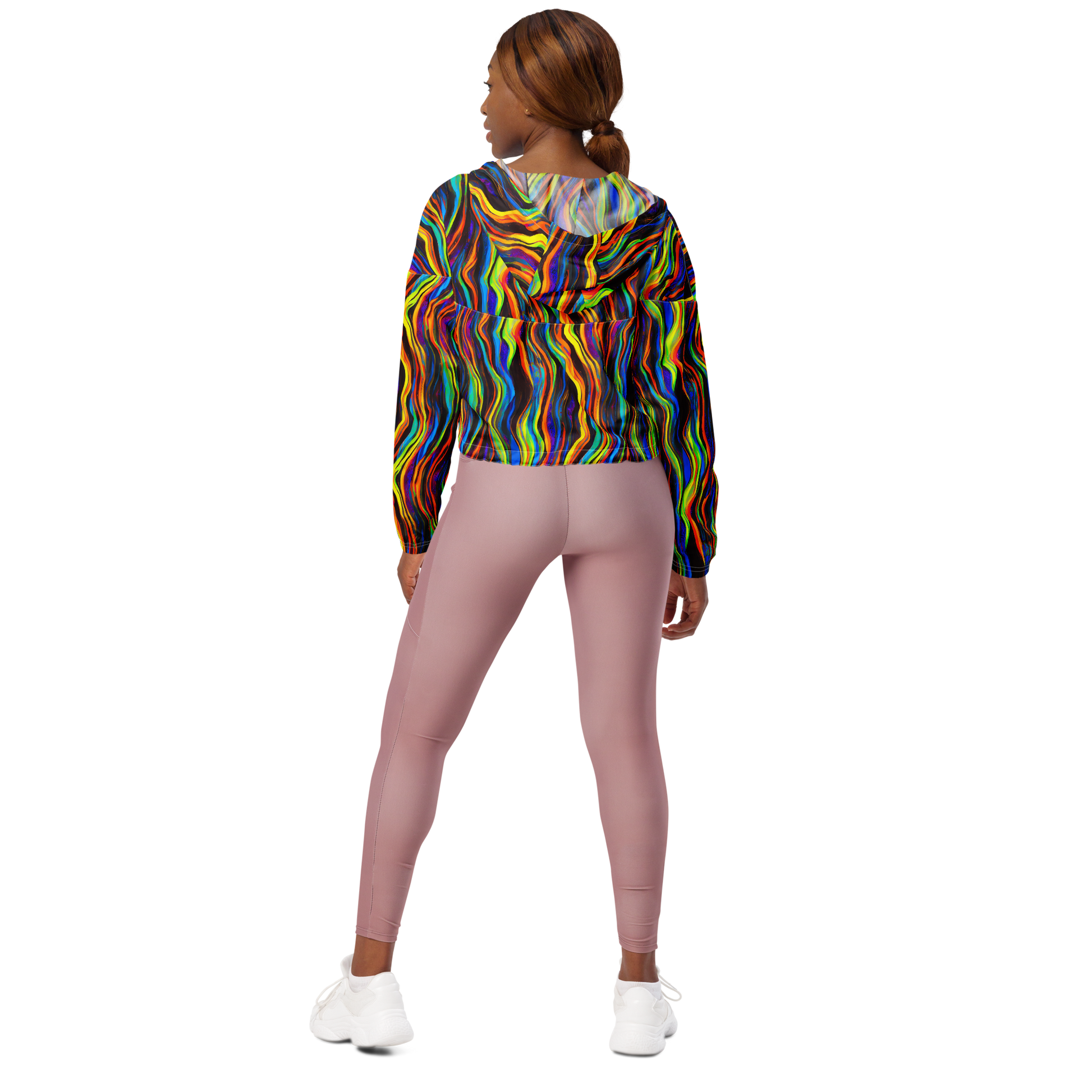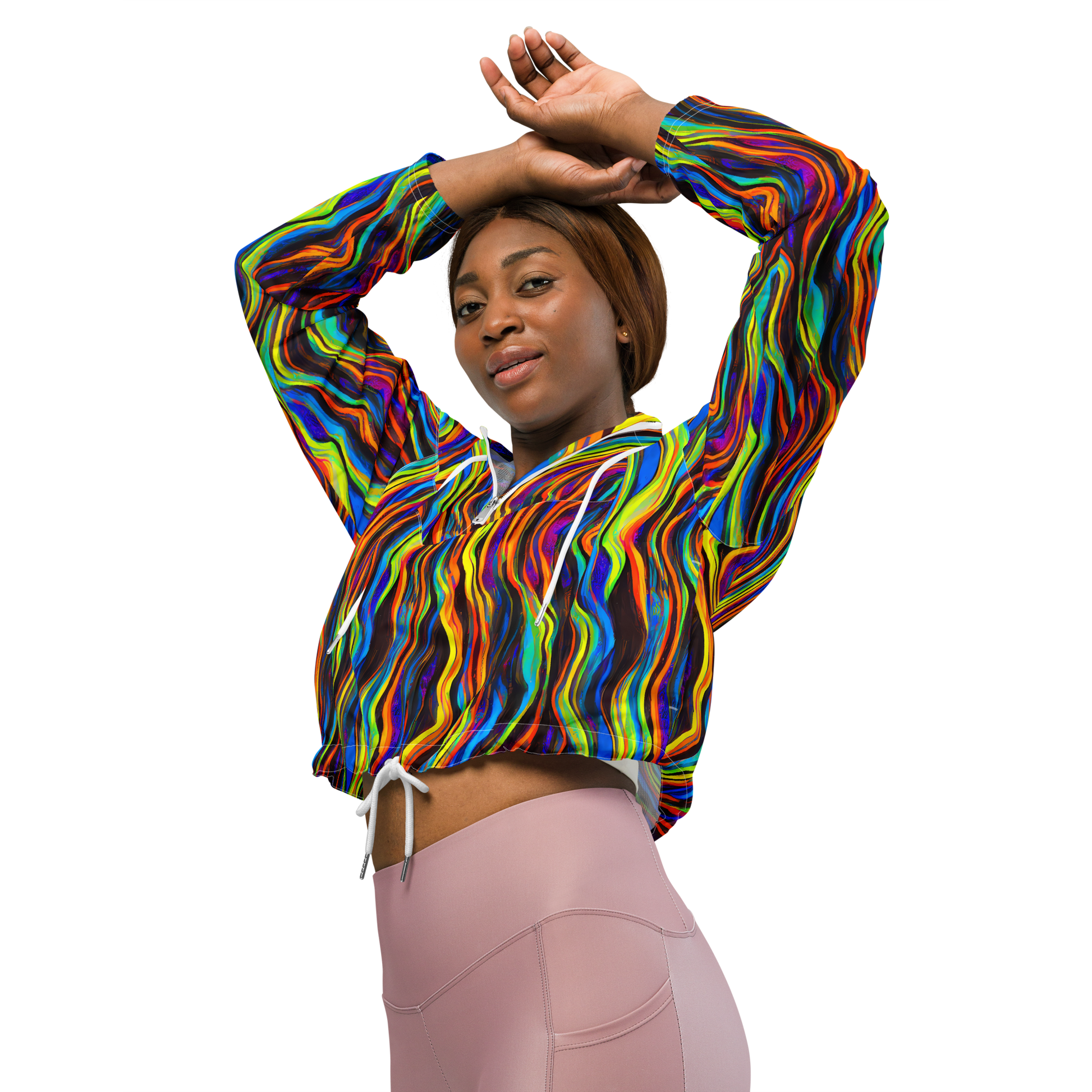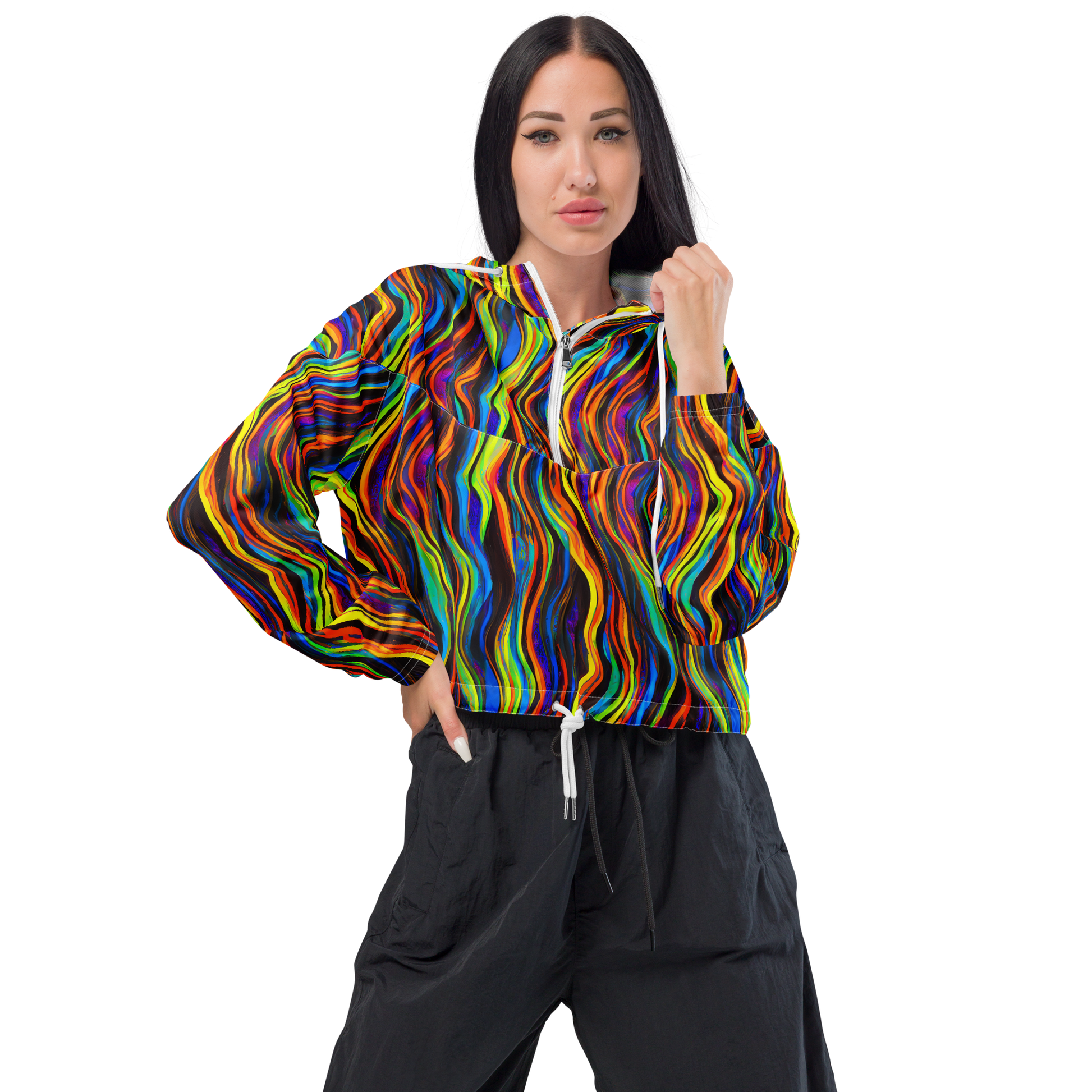 Step into a world of vibrant energy with our Women's Cropped Windbreaker, featuring a mesmerizing tapestry of swirling, electrifying hues set against a dark, cosmic backdrop. This AI-designed masterpiece is perfect for those who crave dynamic movement and psychedelic wonder in their wardrobe. Whether you're heading to a festival, summer gathering, or avant-garde evening event, this windbreaker is your ultimate all-weather ally.