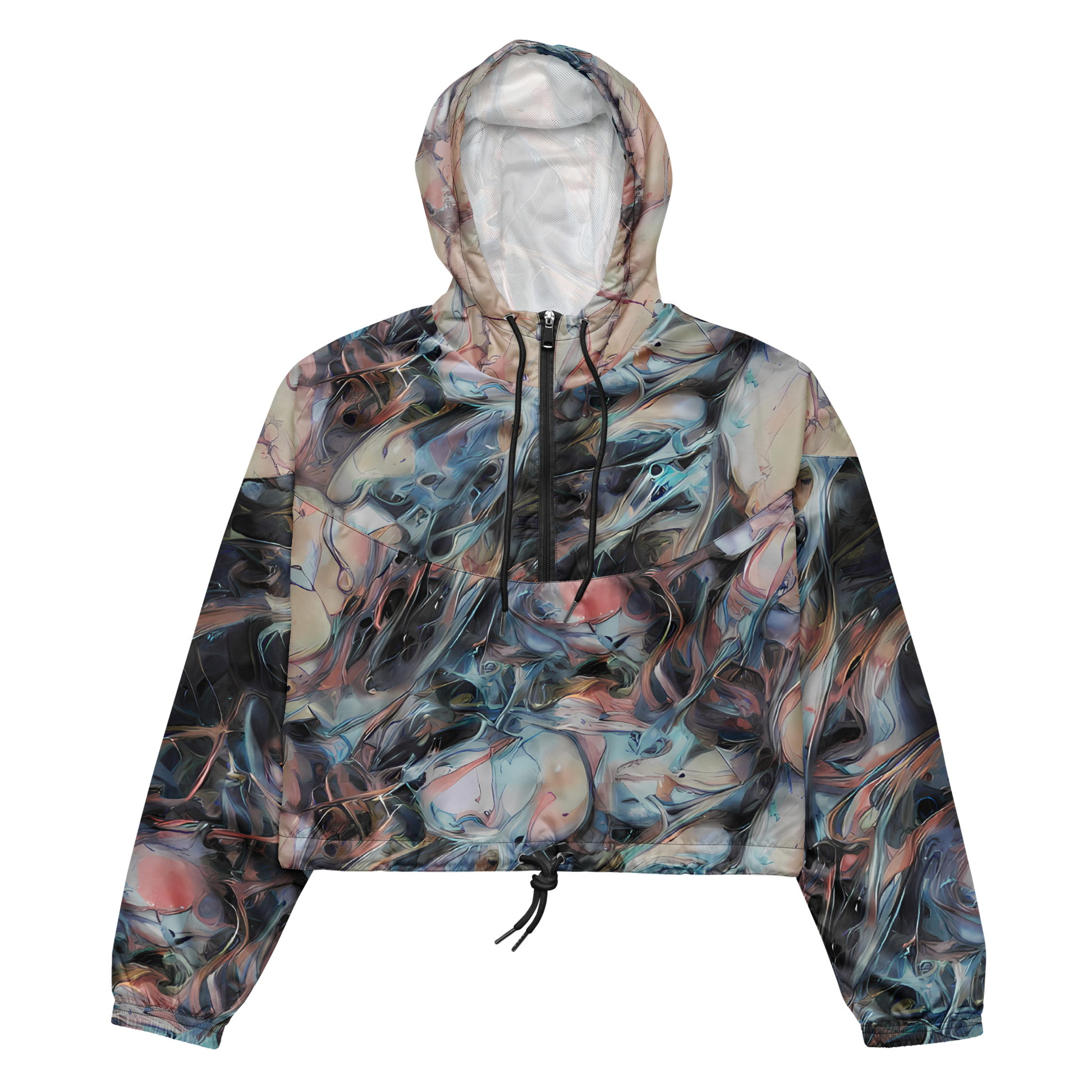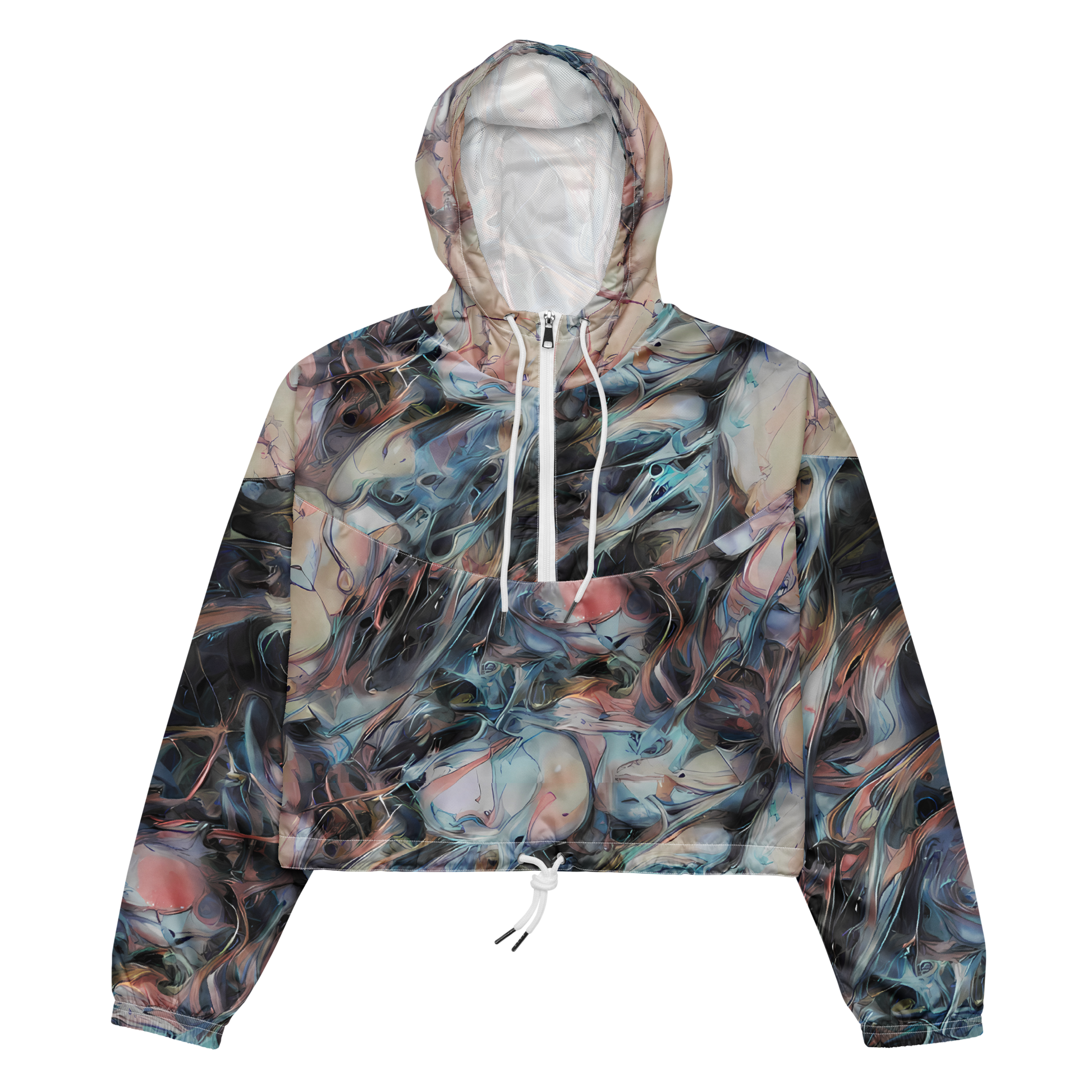 Unleash your inner artist with our Women's Cropped Windbreaker featuring the captivating "Daydream Cascade" pattern. This exclusive design envelops you in a swirl of pastel pinks, blues, and creams, evoking a sense of ethereal movement and dreamlike tranquility. Perfect for springtime gatherings or art gallery events, this windbreaker is a statement of whimsical elegance and creative exploration. Lightweight, waterproof, and packed with features, it’s your all-weather ally ready to elevate any adventure.