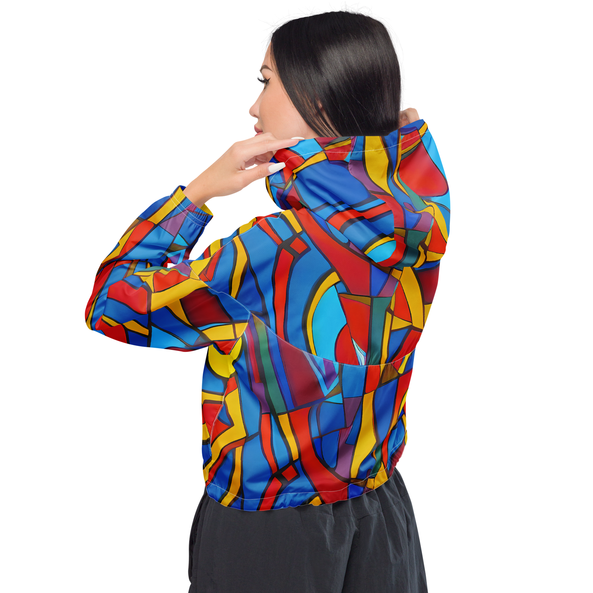 Unleash your inner artist with our Women's Cropped Windbreaker, featuring a vibrant tapestry of bold primary colors intersected by erratic black lines. This eye-catching design evokes a playful sophistication, perfect for making a statement at creative events or modern art gallery openings. Lightweight, waterproof, and tailored for a perfect fit, this windbreaker is your ultimate all-weather ally.