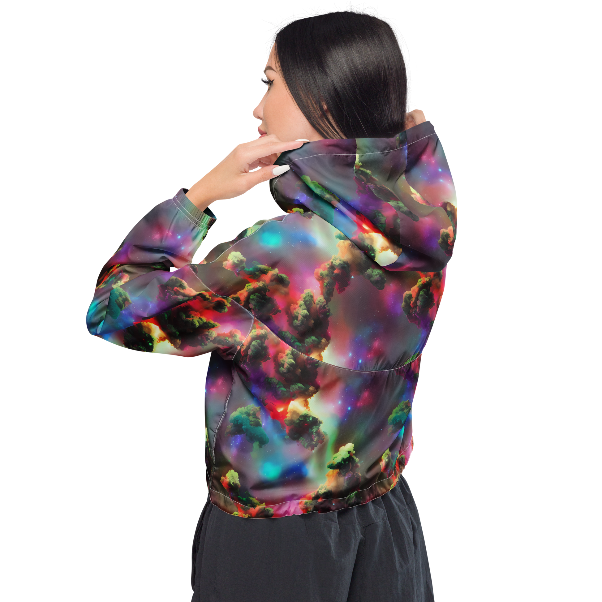 Women's Cropped Windbreaker - Nebula Dreams