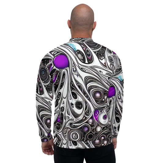 Unleash the cosmic elegance of our "Neo-Noir Waves" Women's Cropped Windbreaker, where high fashion meets high function. Draped in a mesmerizing pattern of high-contrast black and white lines and accented with spheres of purple, blue, and silver, this jacket is a tribute to the avant-garde. Its glossy textures and fluid shapes embody the sophistication of Artgerm and the drama of Helmut Newton, making it the ultimate statement piece for any evening event or artistic gathering. Be bold, be contemporary, be unforgettably noir with this exclusive design.