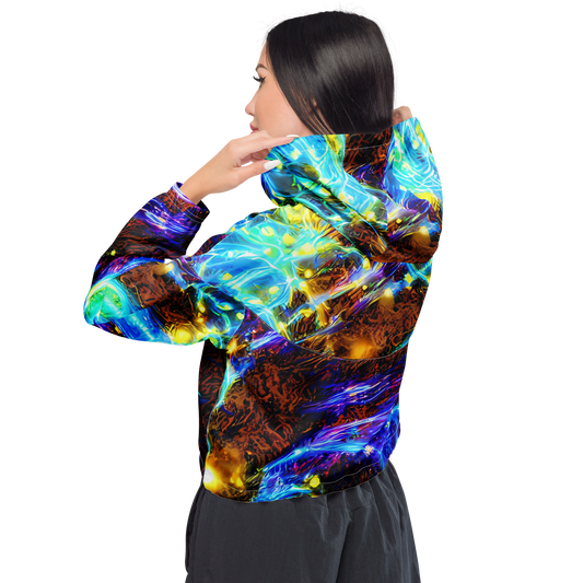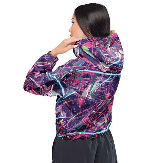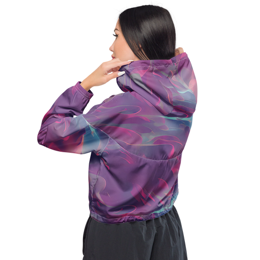 Women's Cropped Windbreaker - Neo-Noir Waves