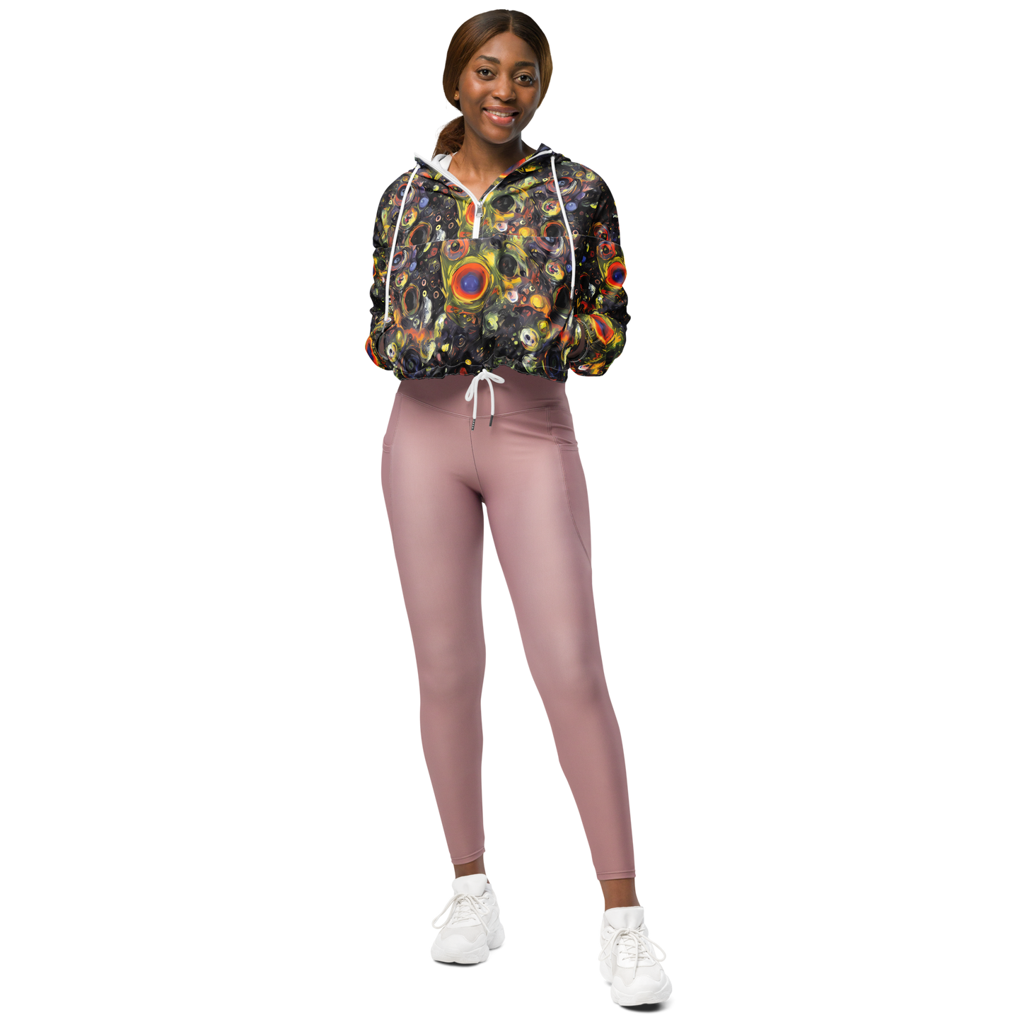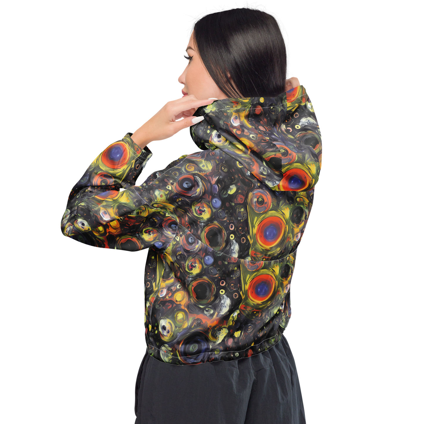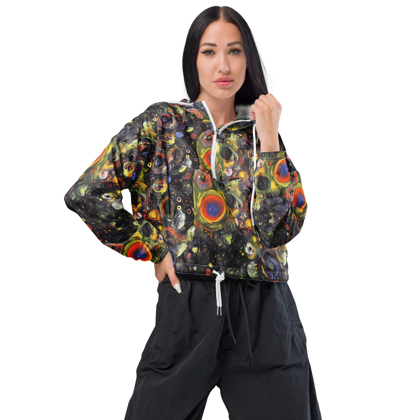 Ignite your wardrobe with the cosmic allure of our latest Women's Cropped Windbreaker, featuring a breathtaking pattern that's a whirlwind of astral beauty. Swirls of fiery orange, deep blue, and vibrant red dance across a dark, space-inspired canvas, creating a wearable piece of art that's bound to turn heads. Perfect for the fearless fashionista, this windbreaker is your ticket to standing out at any occasion, especially during the autumnal season when its colors reflect the earth's own palette.