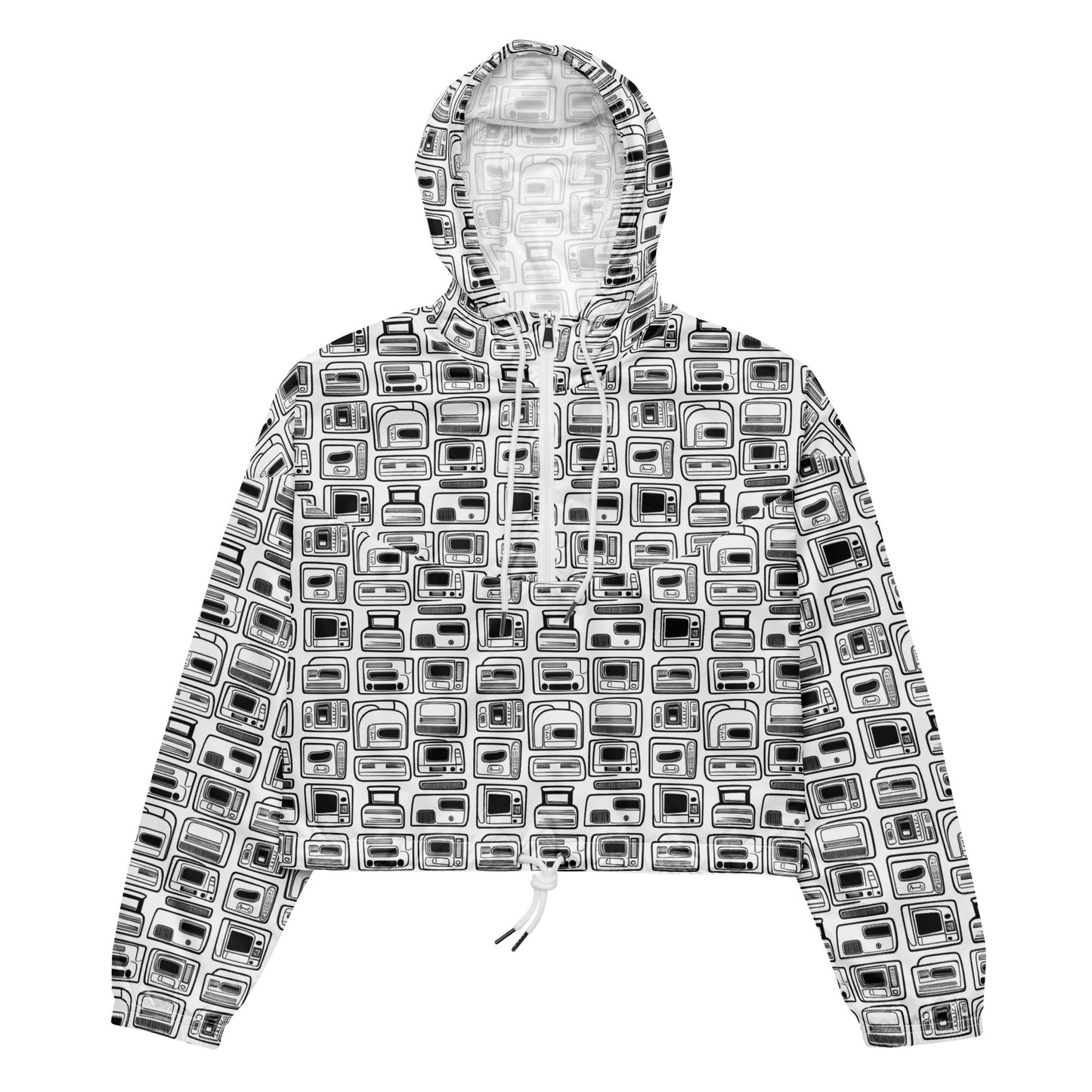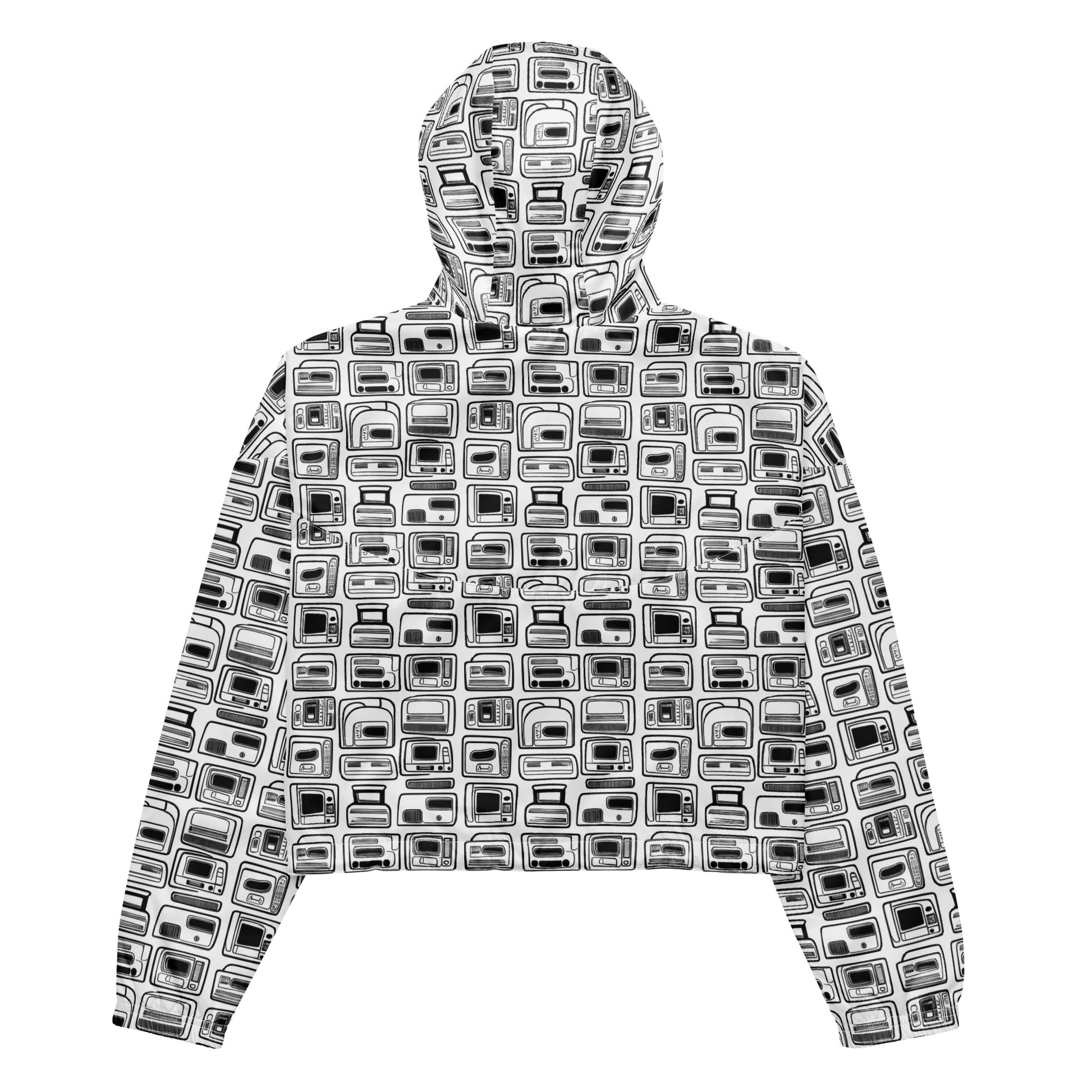 Unleash your adventurous spirit with our AI-designed Women's Cropped Windbreaker, featuring the eye-catching "Techno Echo" pattern! This playful monochrome design showcases whimsical, abstract renditions of retro microwaves and vacuum cleaners, blending nostalgia with a futuristic flair. Perfect for tech-inspired events or casual outings, this windbreaker is not just a statement piece—it's your all-weather ally, ready to elevate any outfit with a dash of humor and style.