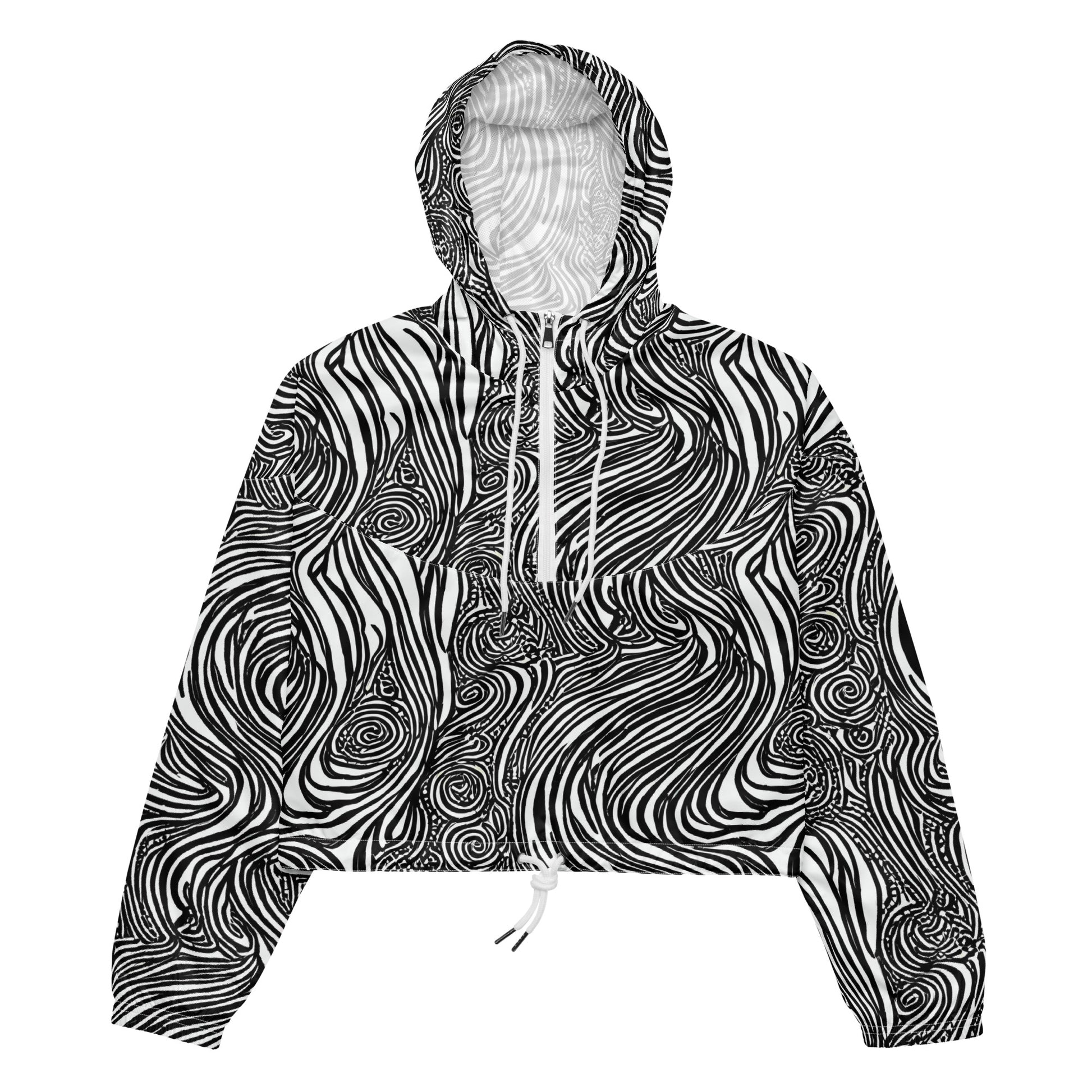 Unleash your adventurous spirit with our "Tidal Tangle" Women's Cropped Windbreaker! This eye-catching piece features a mesmerizing monochrome pattern of swirling black and white that captures the fluidity of ocean currents and the allure of the cosmos. Designed for those who dare to stand out, this windbreaker is your perfect companion for avant-garde gatherings, art exhibitions, or electrifying music festivals. Lightweight, waterproof, and packed with functional features, it’s the ultimate blend of style and practicality. Make a bold statement while staying cozy and chic, no matter the weather!