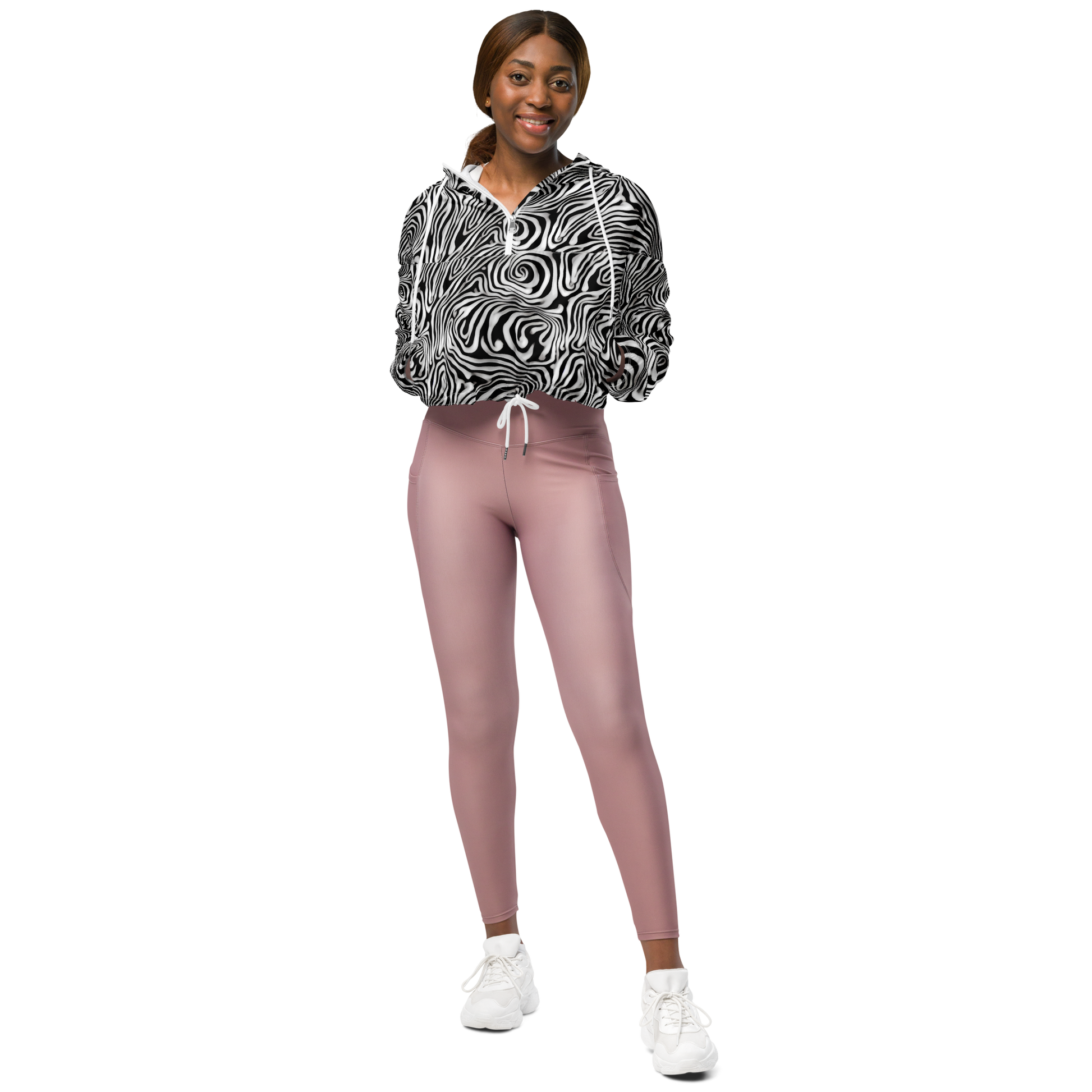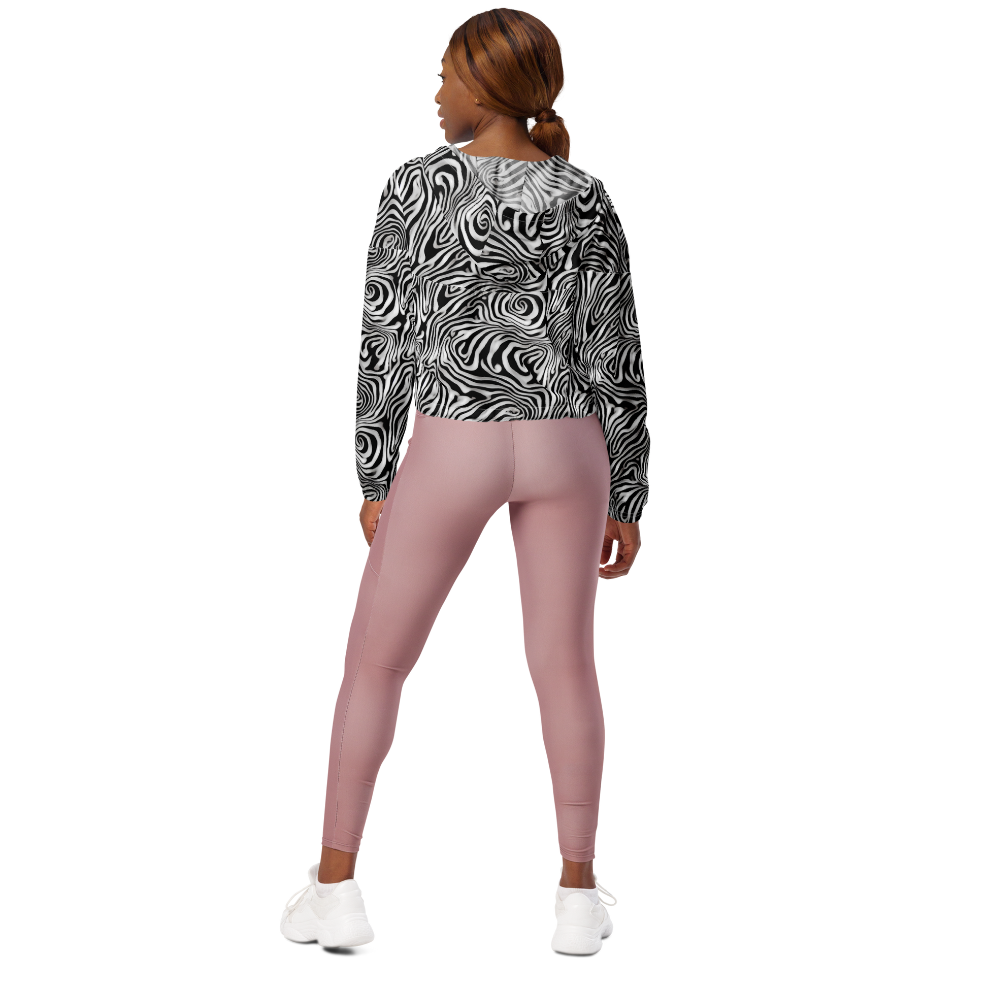Step into a realm of surreal sophistication with our AI-designed Women's Cropped Windbreaker, featuring a mesmerizing pattern of black and white swirls that evoke fluid motion and surreal depth. Perfect for artistic gatherings, music festivals, or trendy urban outings, this lightweight, waterproof jacket is your all-weather ally, blending bold style with practical features like side-slit pockets, breathable mesh, and adjustable drawcords. Elevate your adventure game and make a one-of-a-kind statement this spring and autumn!