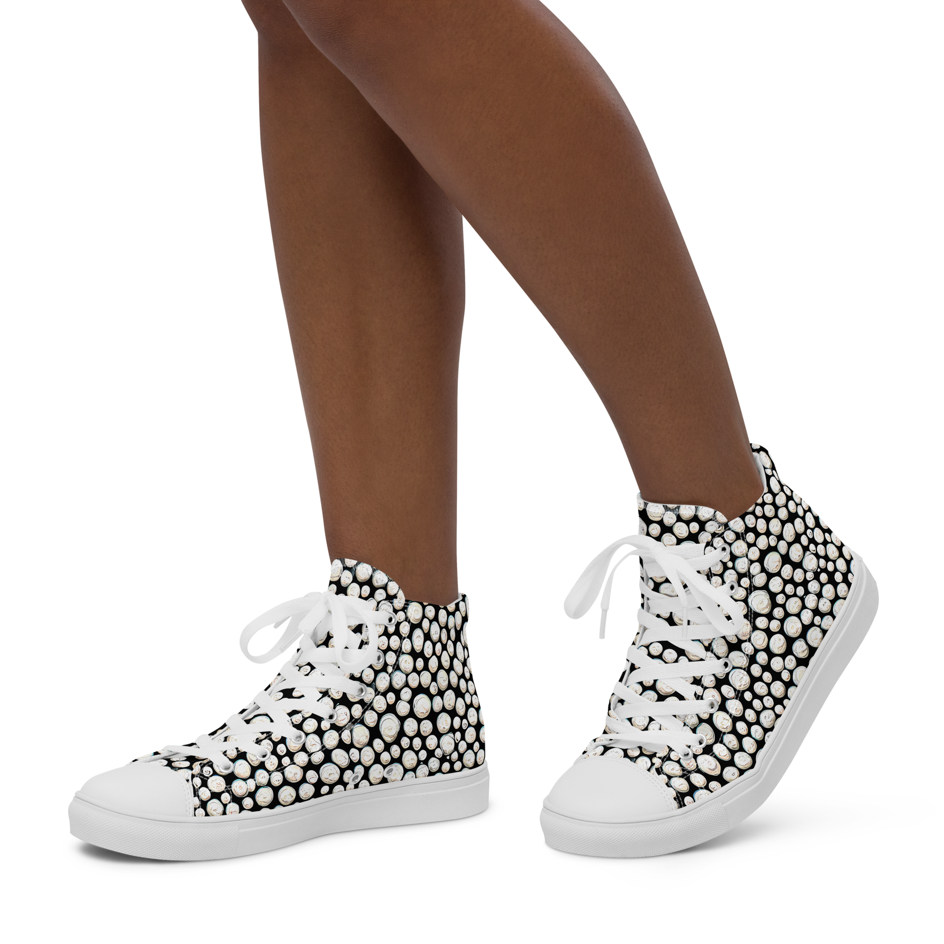 Experience the cosmos at your feet with our Women's High Top Canvas Shoes, featuring a mesmerizing array of iridescent, interconnected orbs against a deep black background. This avant-garde design captures the essence of cosmic wonder and abstract surrealism, perfect for those who dare to be bold and creative. Ideal for making a statement at art exhibitions, music festivals, or any event where you want to stand out, these shoes are a blend of style, durability, and comfort.
