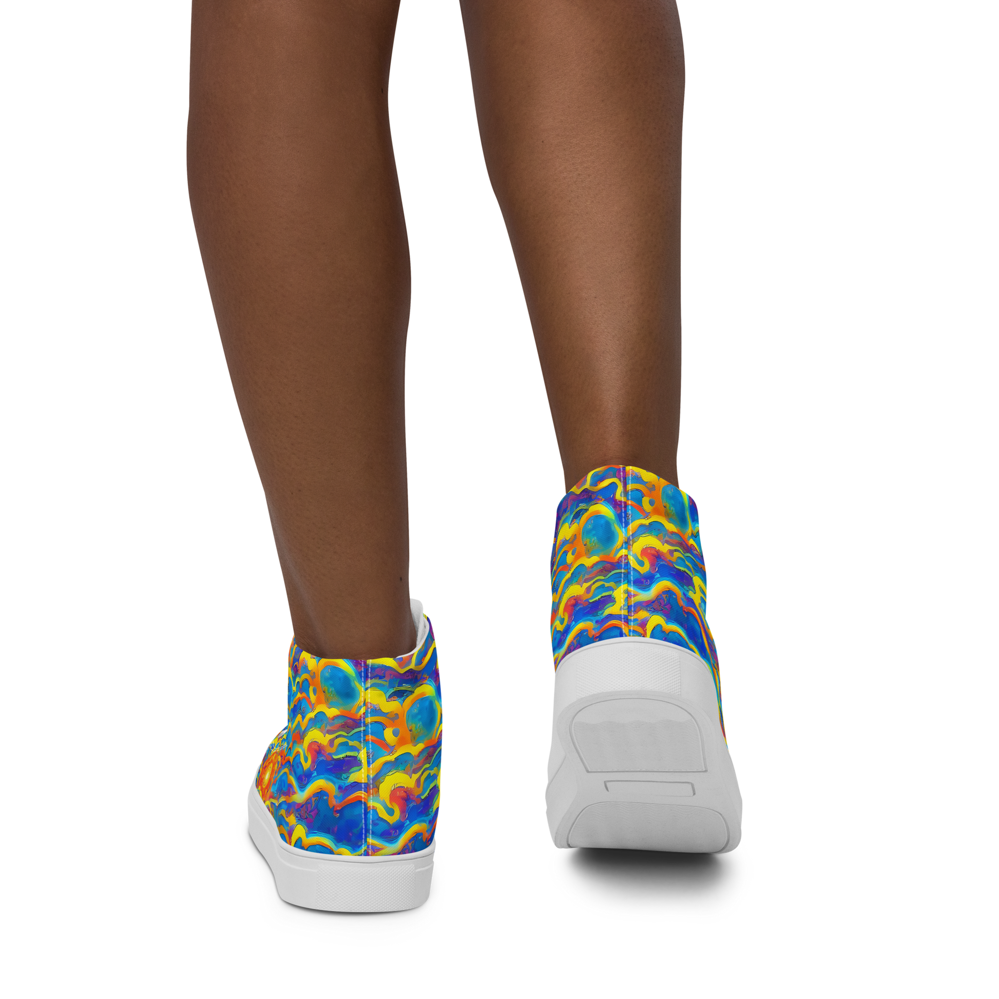 Unleash your inner artist with our Women's High Top Canvas Shoes, adorned with a vibrant, flowing tapestry of electric blues, sunny yellows, and fiery oranges. This dynamic design evokes the energy of a celestial dance, perfect for making a bold statement at festivals, summer events, or any occasion where you want to stand out. Embrace the fusion of impressionistic style and psychedelic flair, and step into a world where comfort meets high fashion.