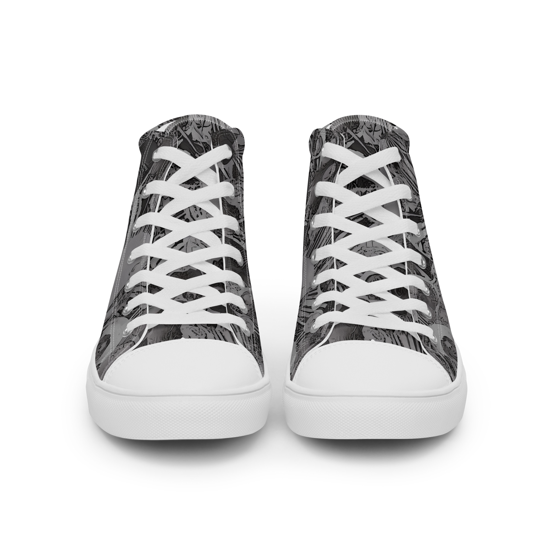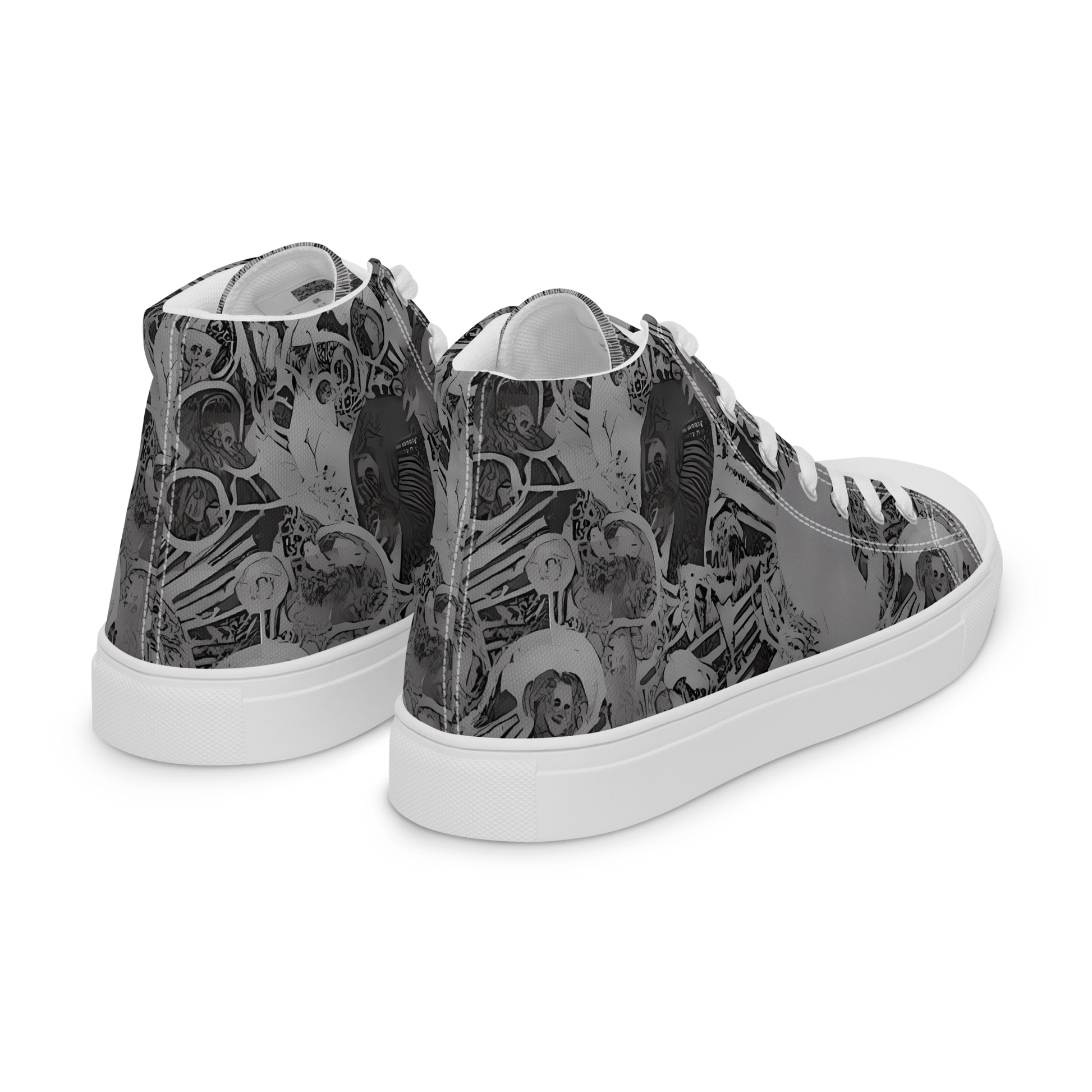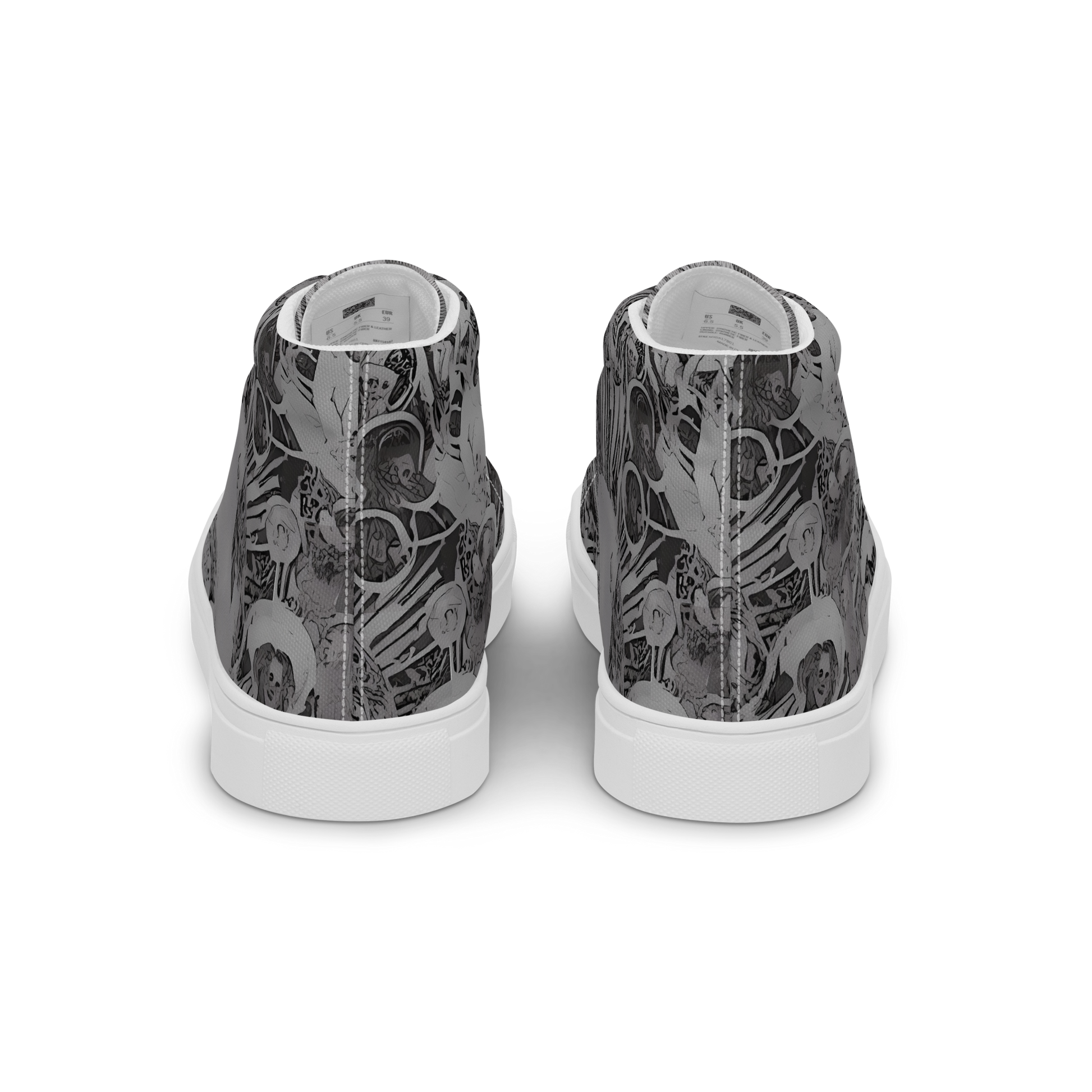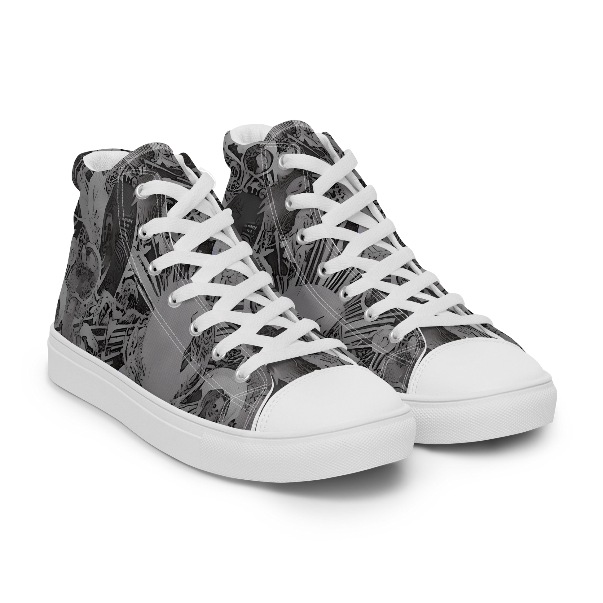 Step into the mystery of the night with our "Dusk Enigma" Women's High Top Canvas Shoes! This stunning design features an intricate tapestry of grayscale tones and abstract shapes that evoke a sense of introspection and allure. Perfect for those who embrace their unique style, these shoes are not just footwear; they're a statement piece for your avant-garde wardrobe. Whether you're heading to an art gallery opening or an evening out, let your shoes reflect your enigmatic personality.